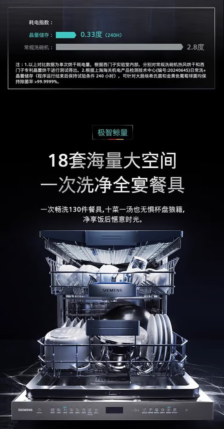 SIEMENS iTurbo Smart Washing Cube 18 sets of large-capacity crystal bud drying built-in dishwasher for home use 240-hour antibacterial storage SJ45ZC24MC Home Internet