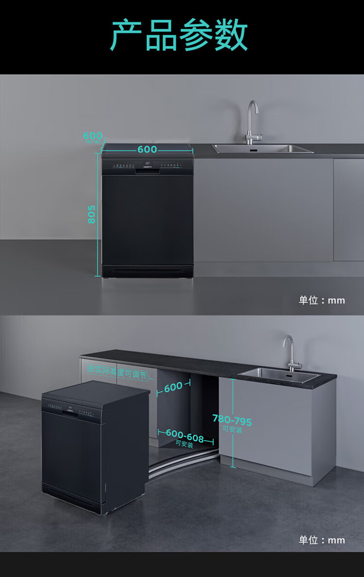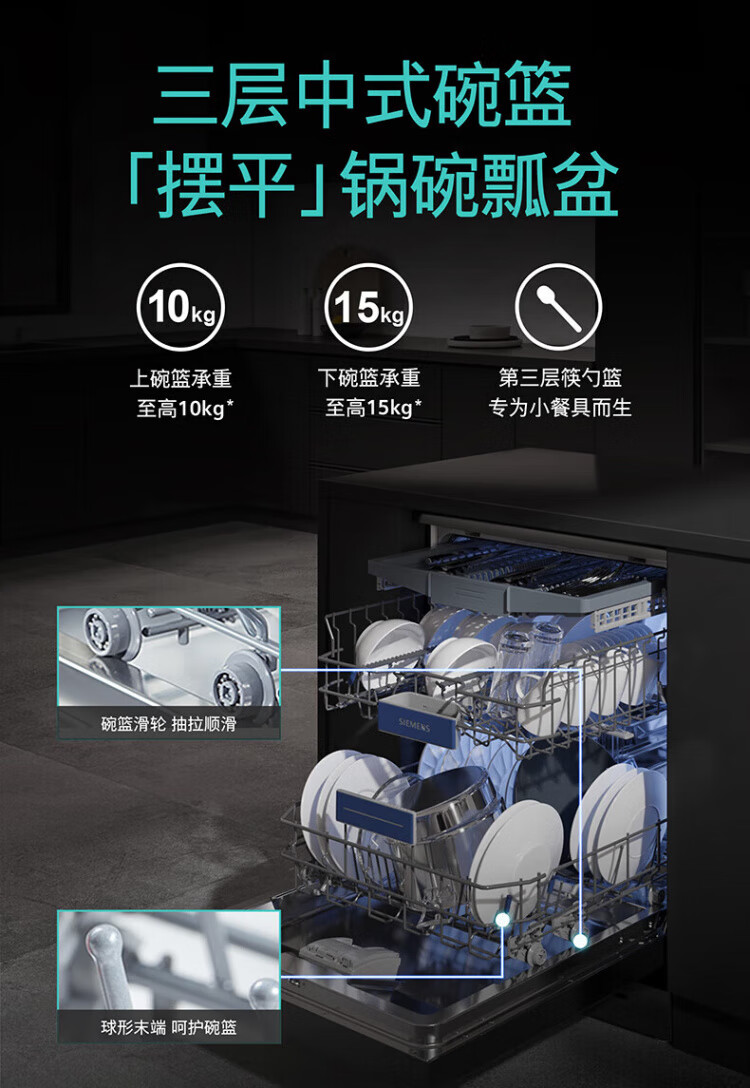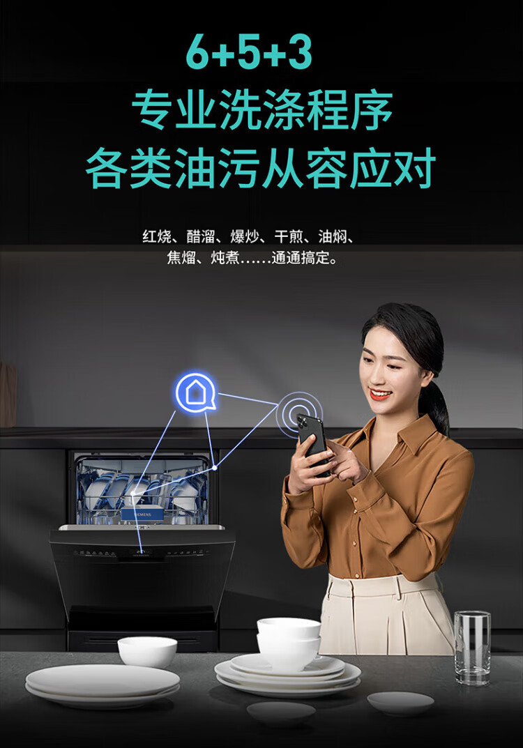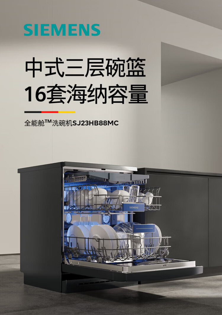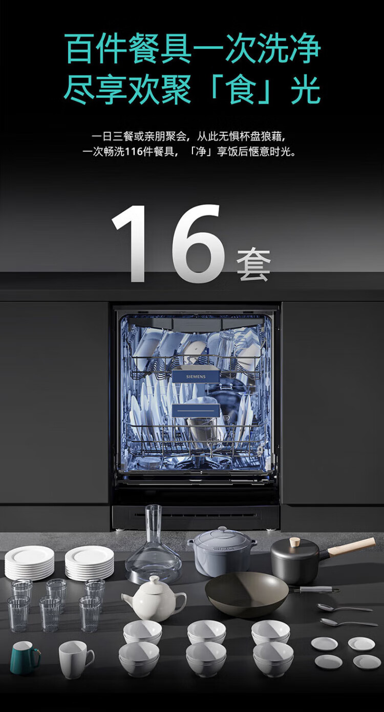 SIEMENS dishwasher household fully automatic independent built-in dual-purpose 16 sets large-capacity all-purpose cabin intelligent sterilization, disinfection and drying integrated 96 hours storage SJ23HB88MC home interconnection
