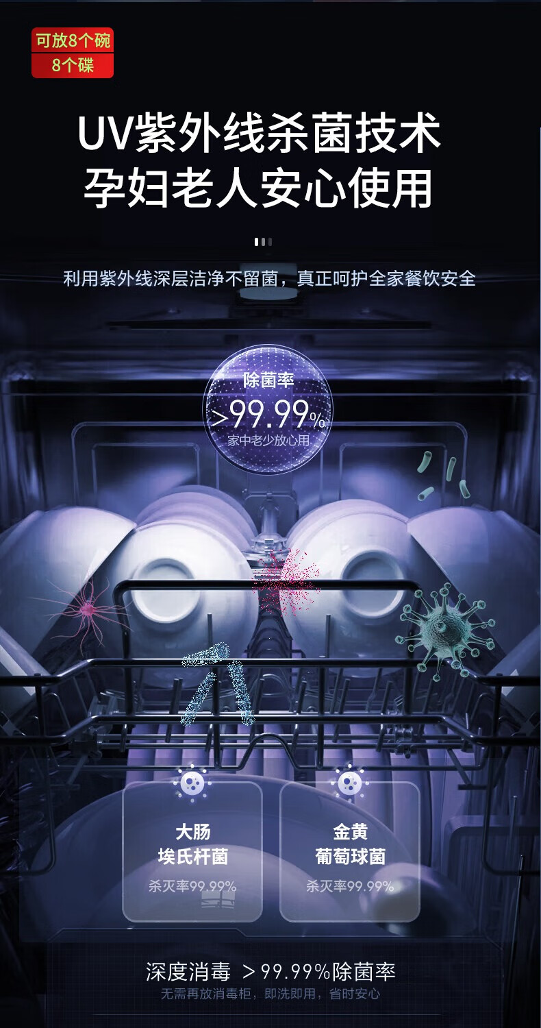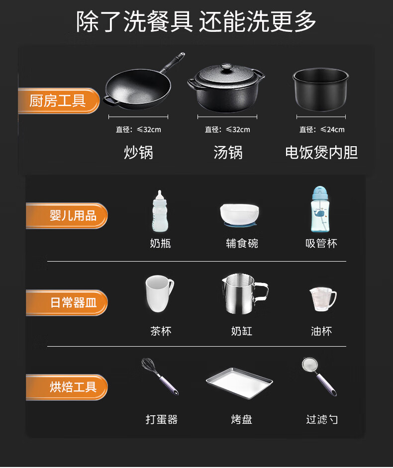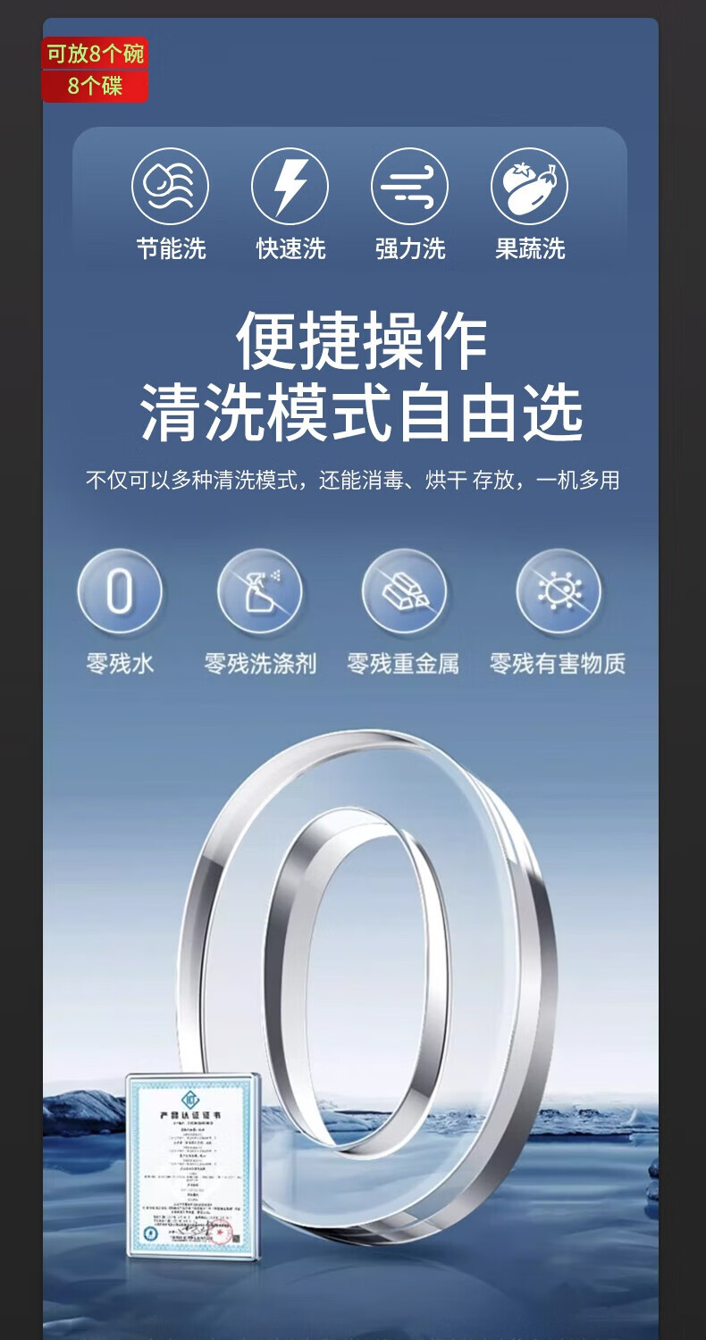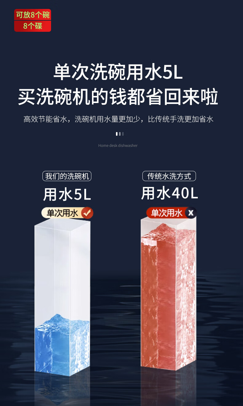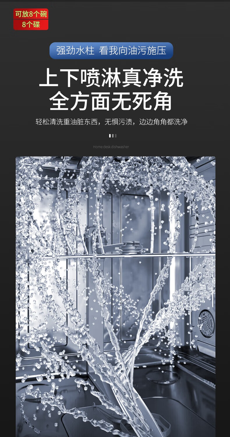 Little Sun 8-person dishwasher, large capacity, household desktop, smart, small, fully automatic drying, multi-function, installation-free, bench-mounted dual-purpose, dual-mode model - tap water/self-absorbing water, length, width and height 43*39*46 cm