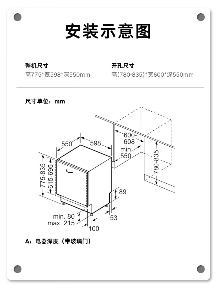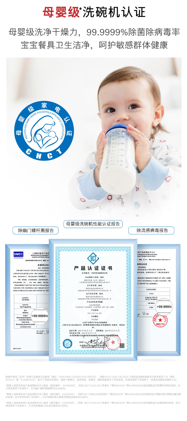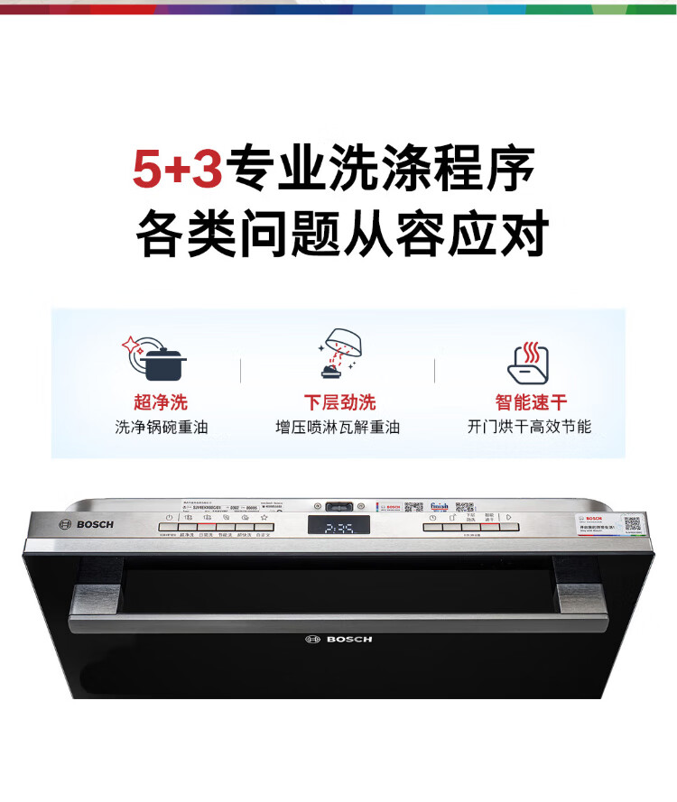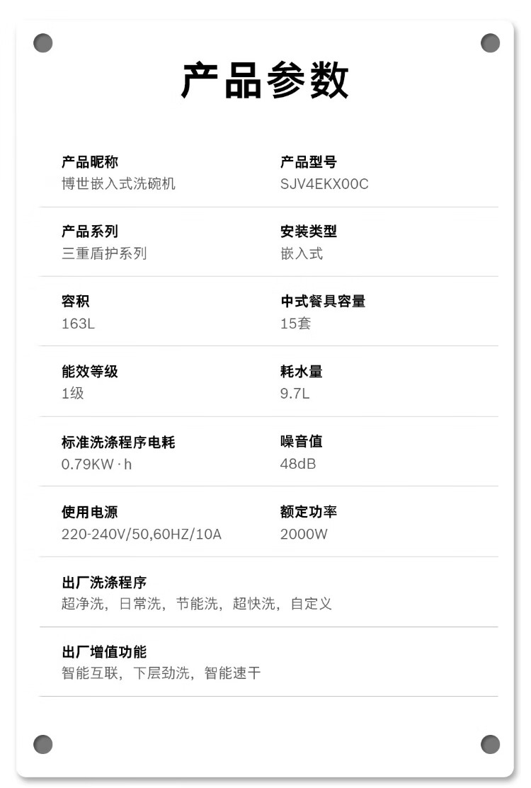 Bosch (BOSCH) built-in dishwasher 15 sets of large-capacity household smart door opening quick drying 72 high temperature and high pressure maternal and infant grade home appliance certification Jingyu Intelligent Interconnect SJV4EKX00C needs to be equipped with a separate door panel