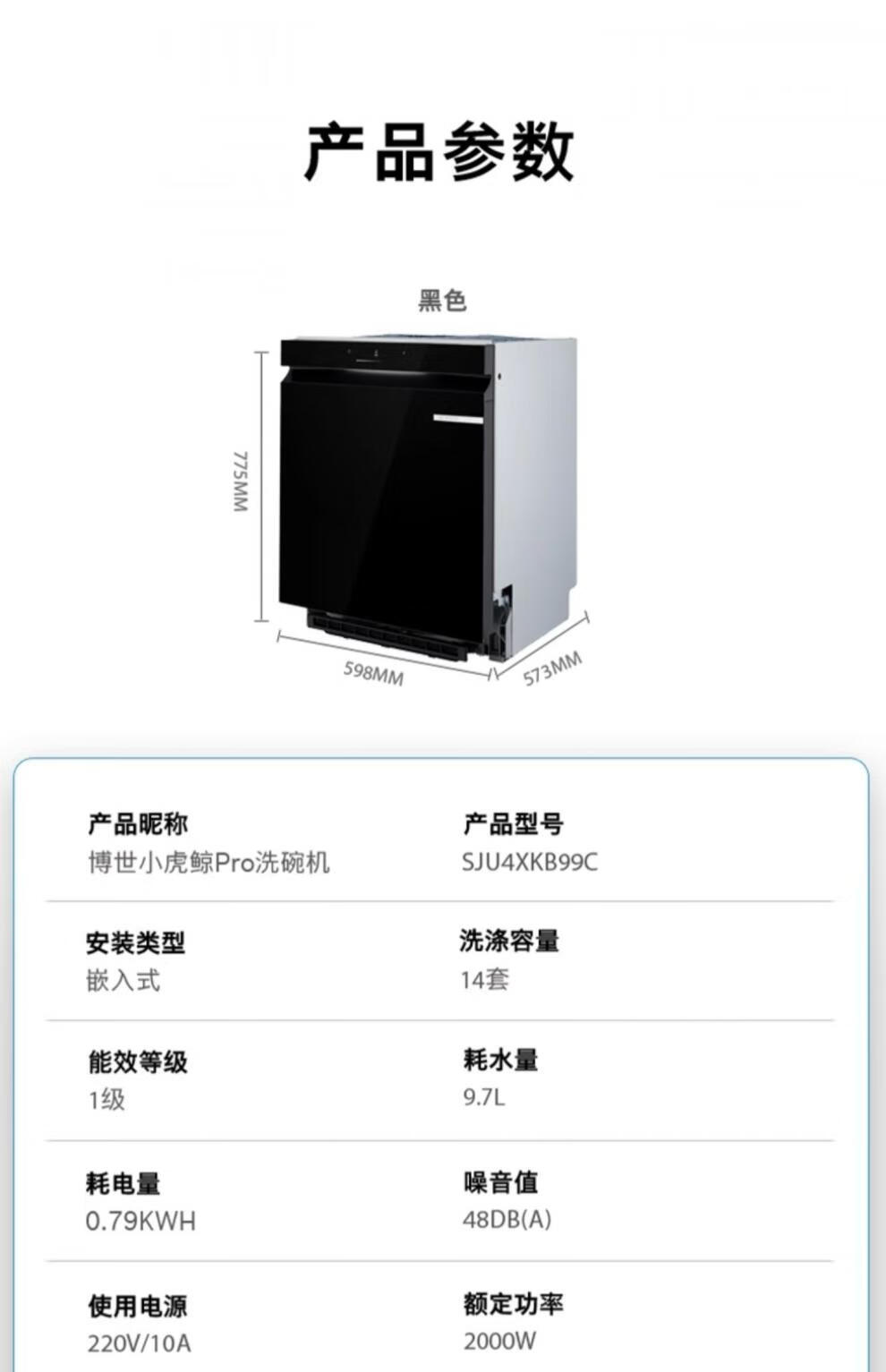 Bosch (BOSCH) Bosch Little Orca PRO embedded panel controlled disinfection dishwasher B99C SJU4XKB99C 14 sets black