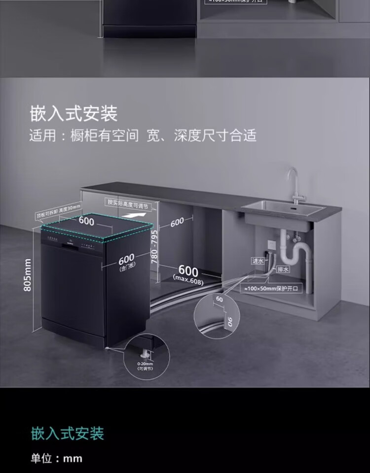 SIEMENS 12 sets of independent built-in dishwashers for home use fully automatic intelligent washing and drying B08 SJ23HB08KC 12 sets black