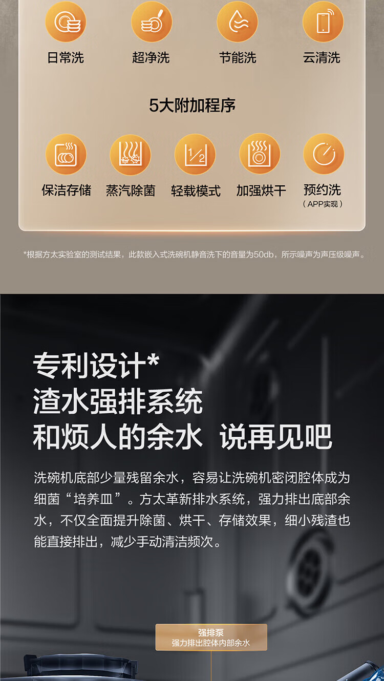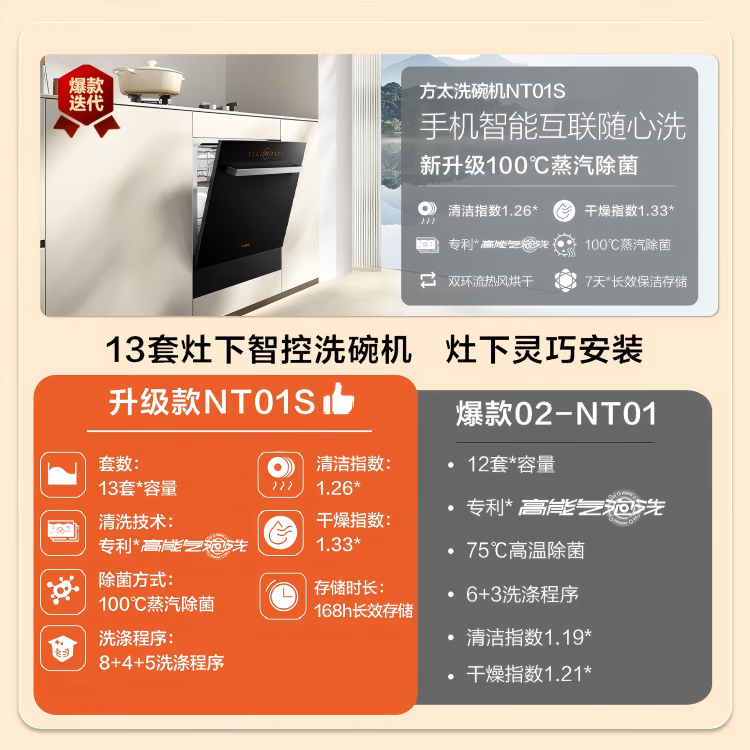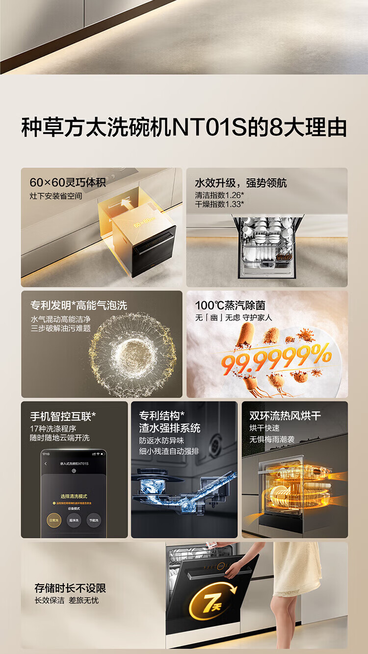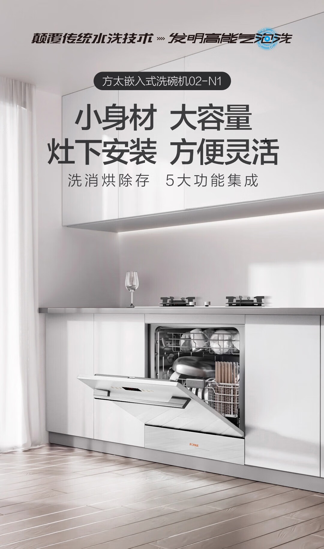 Fotile Home Appliances Dishwasher NT01S 14 sets of large-capacity embedded integrated large-capacity household stove with steam sterilization and high-energy bubble washing NT01S upgraded version 14 sets