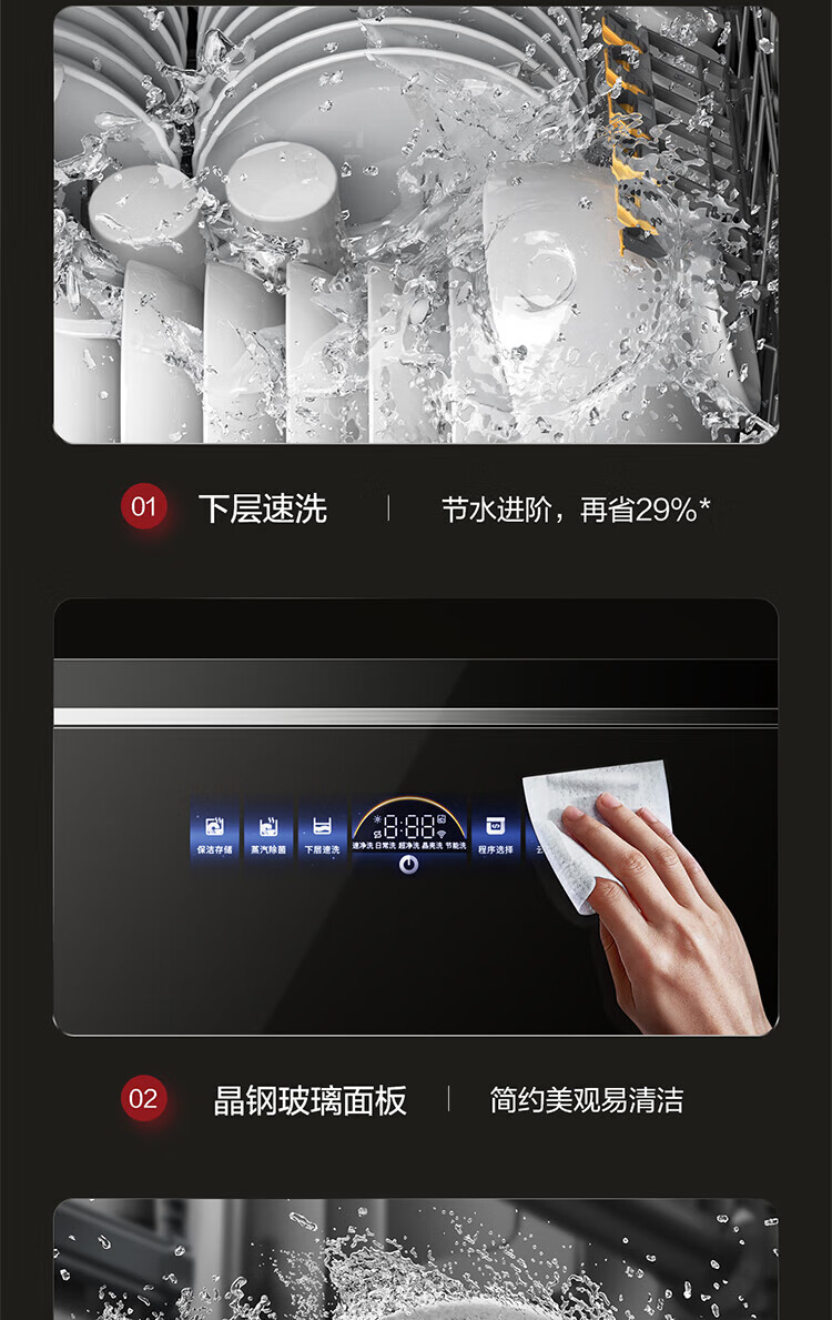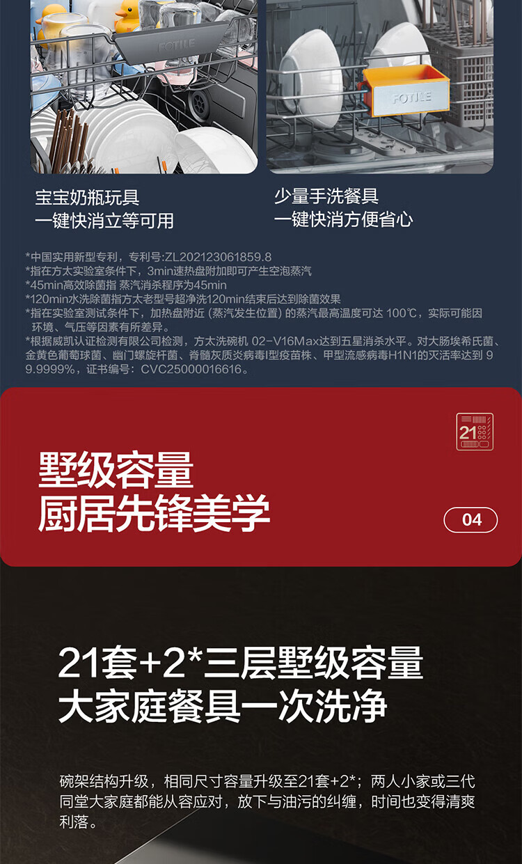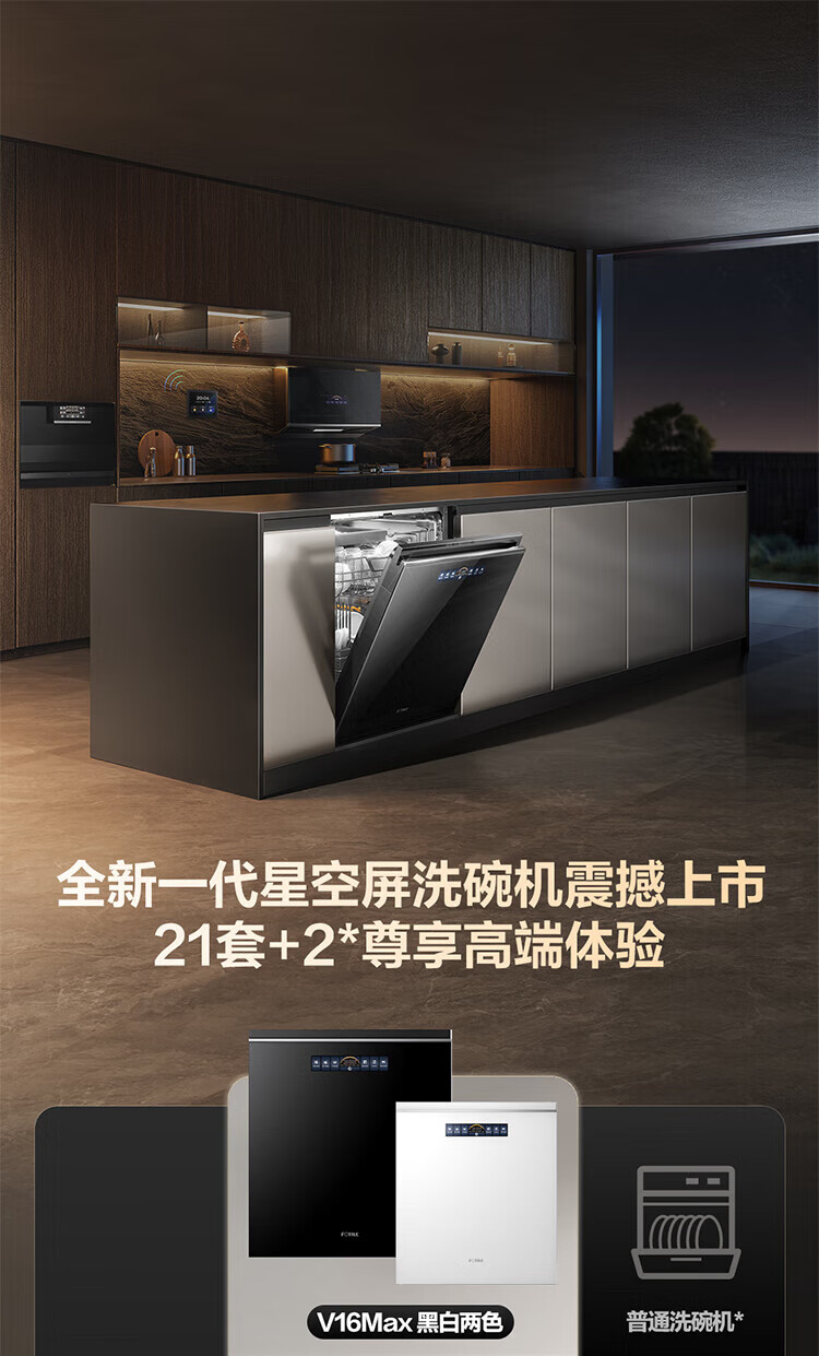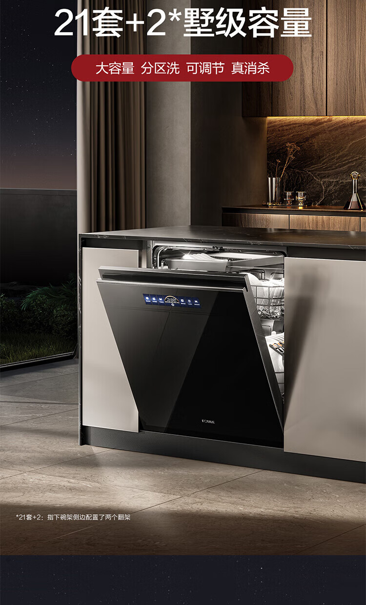 FOTILE dishwasher 02-V16Max 21 sets of large-capacity built-in household 3-story villa-level capacity high-energy bubble washing independent steam sterilization 21 sets of built-in dishwasher 02-V16Max (black)