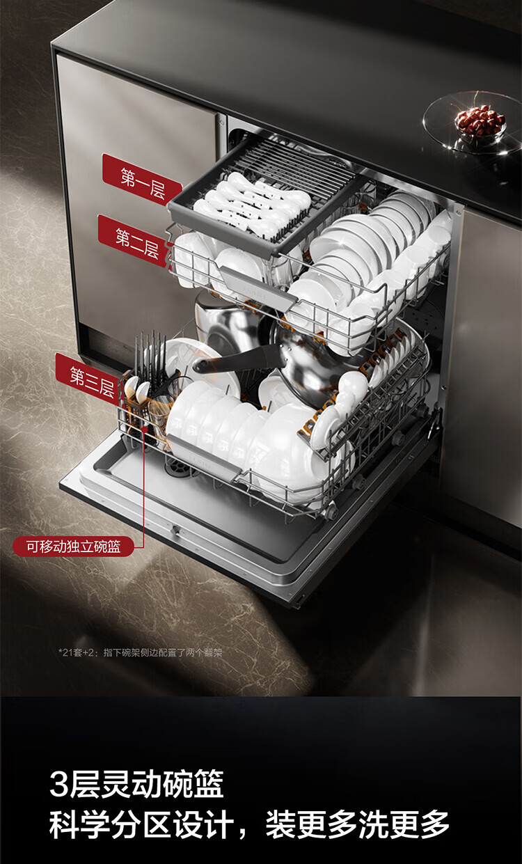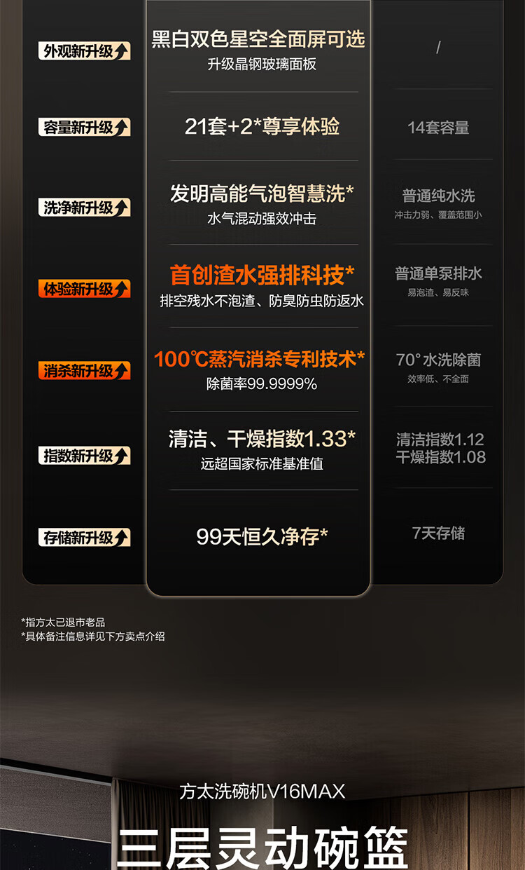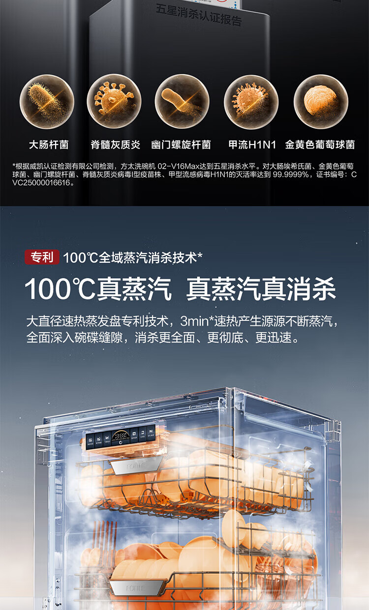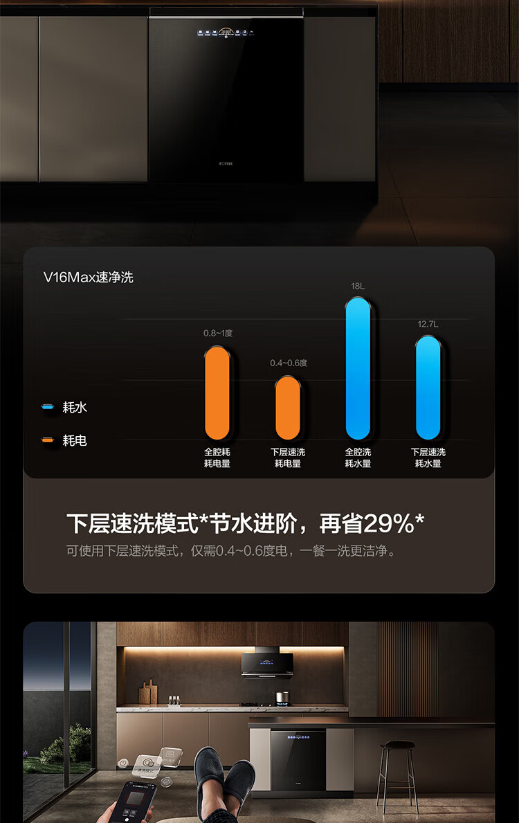 FOTILE dishwasher 02-V16Max 21 sets of large-capacity built-in household 3-story villa-level capacity high-energy bubble washing independent steam sterilization 21 sets of built-in dishwasher 02-V16Max (black)