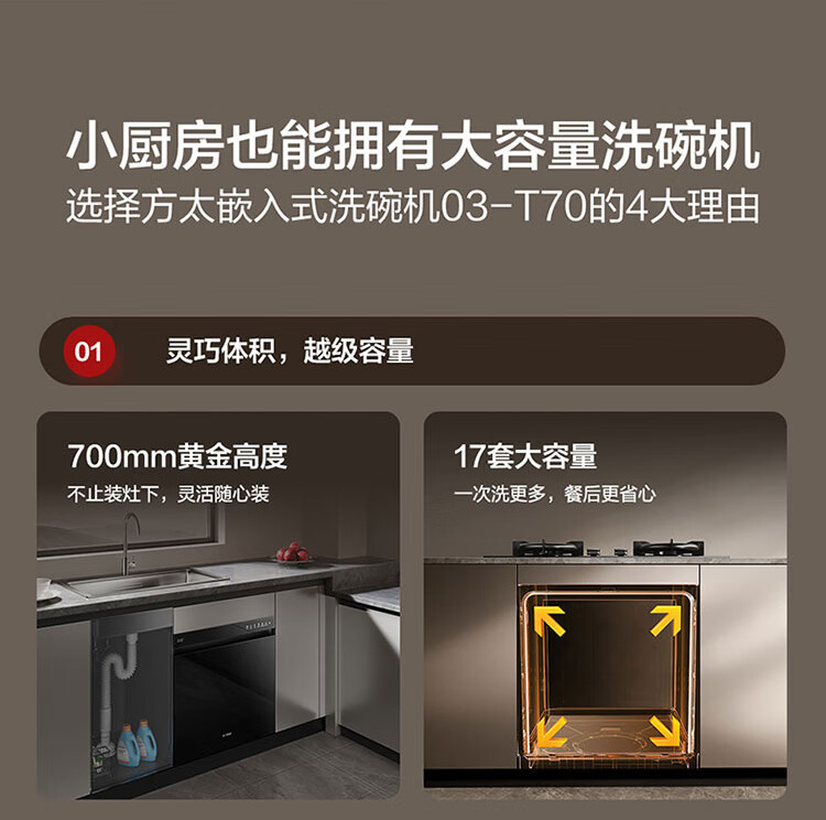 FOTILE dishwasher T70 17 sets of large-capacity household built-in flexible installation under the stove independent steam sterilization first-level water efficiency 17 sets of intelligent control built-in dishwasher T70 under the stove