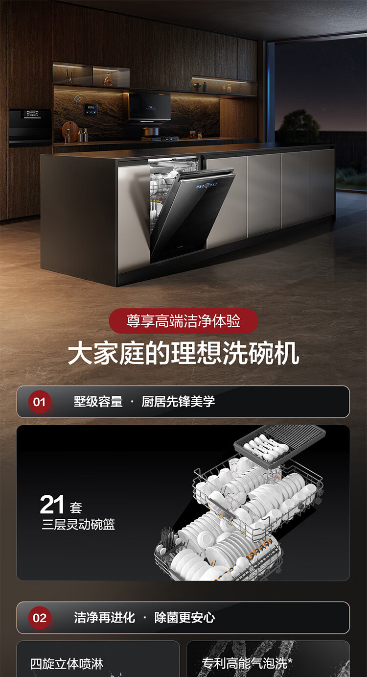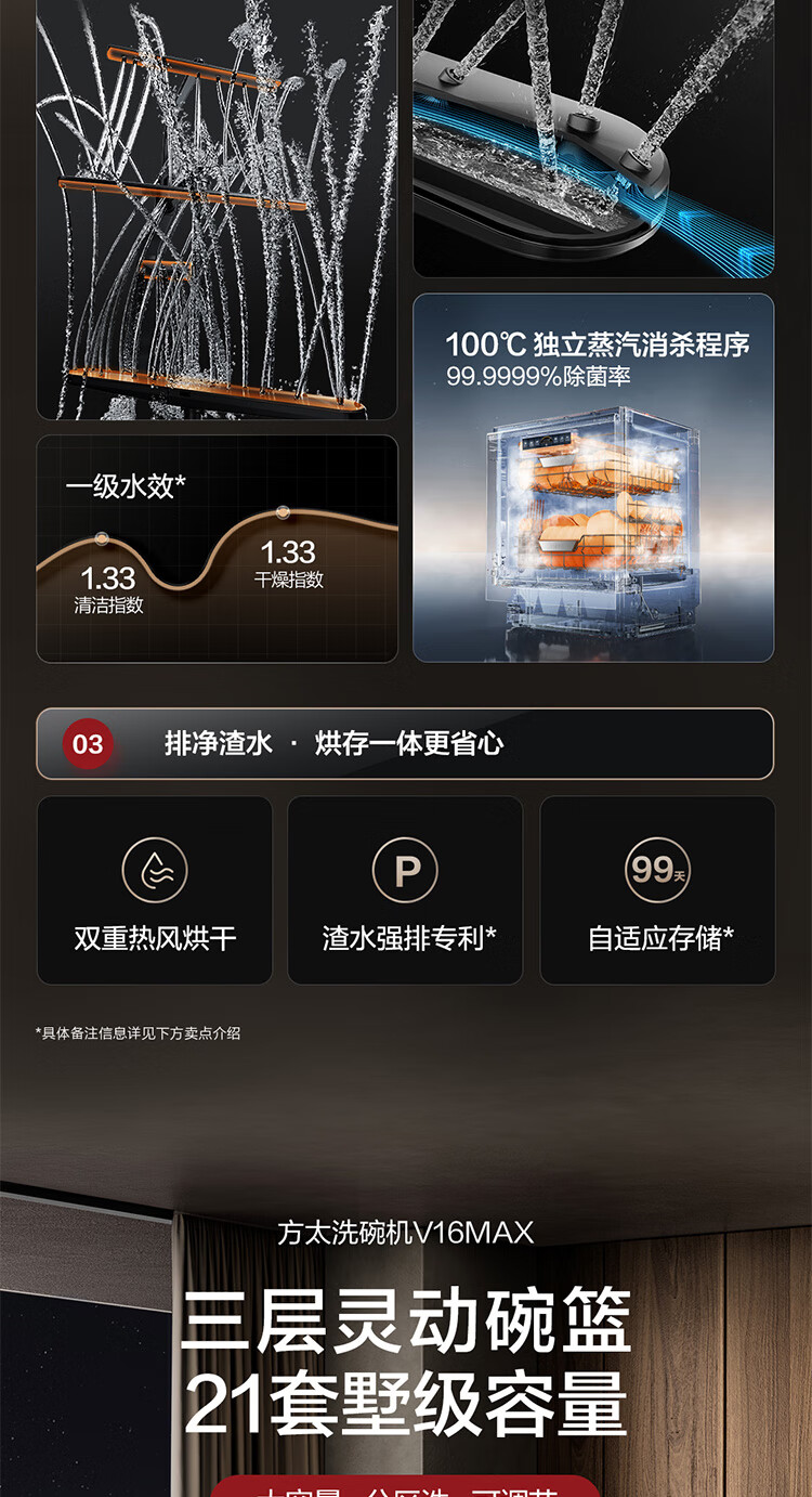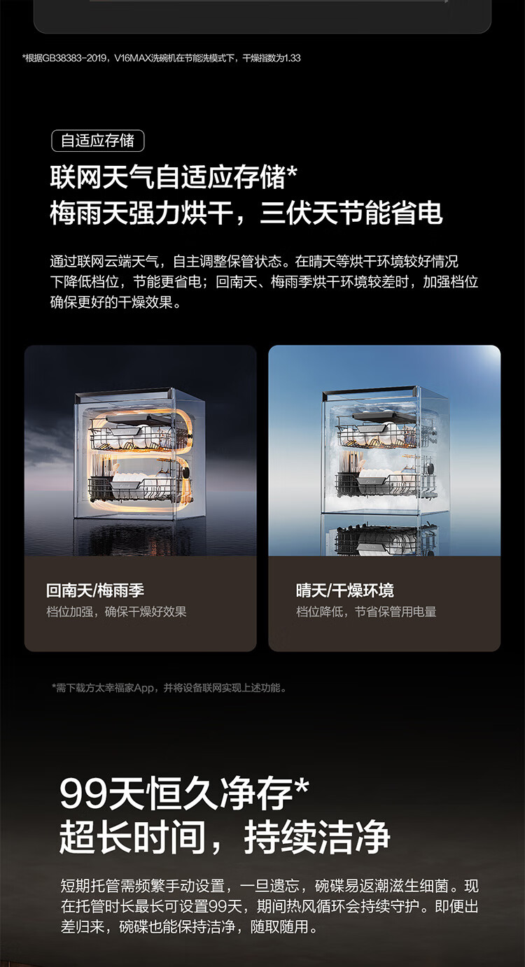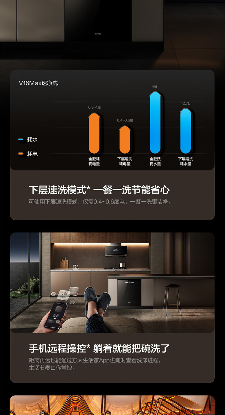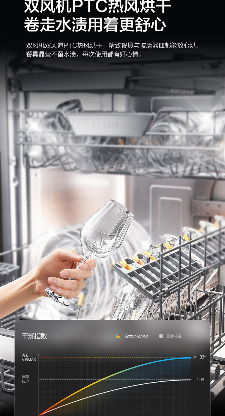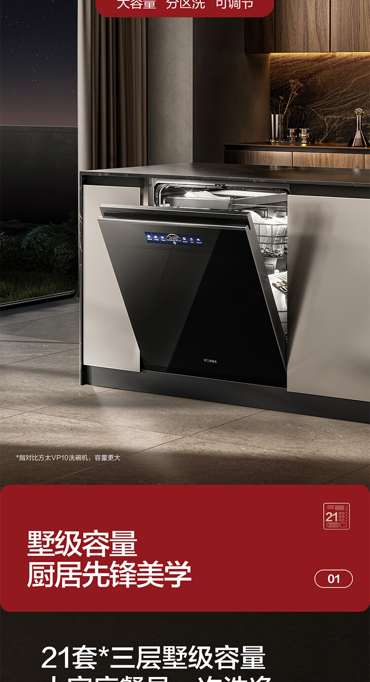 FOTILE V series dishwasher 02-V16Max 21 sets large capacity built-in household 3-story villa-level capacity high-energy bubble washing independent steam sterilization black 02-V16Max