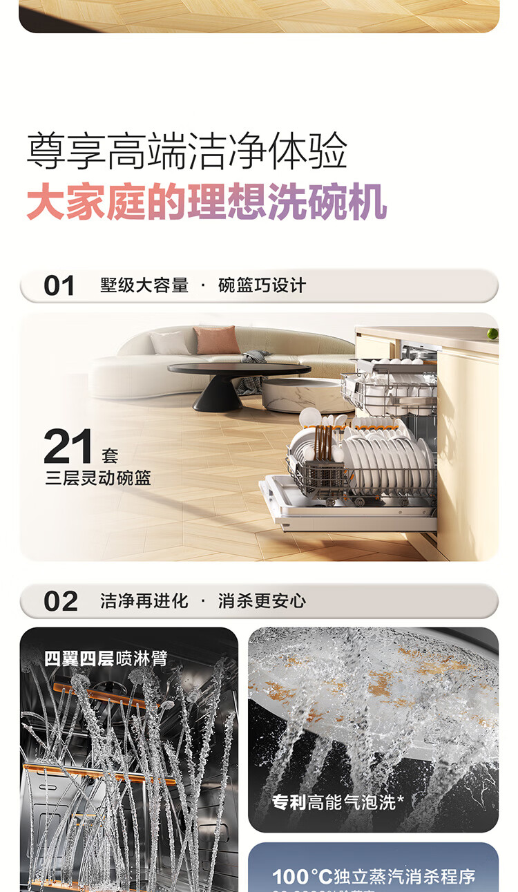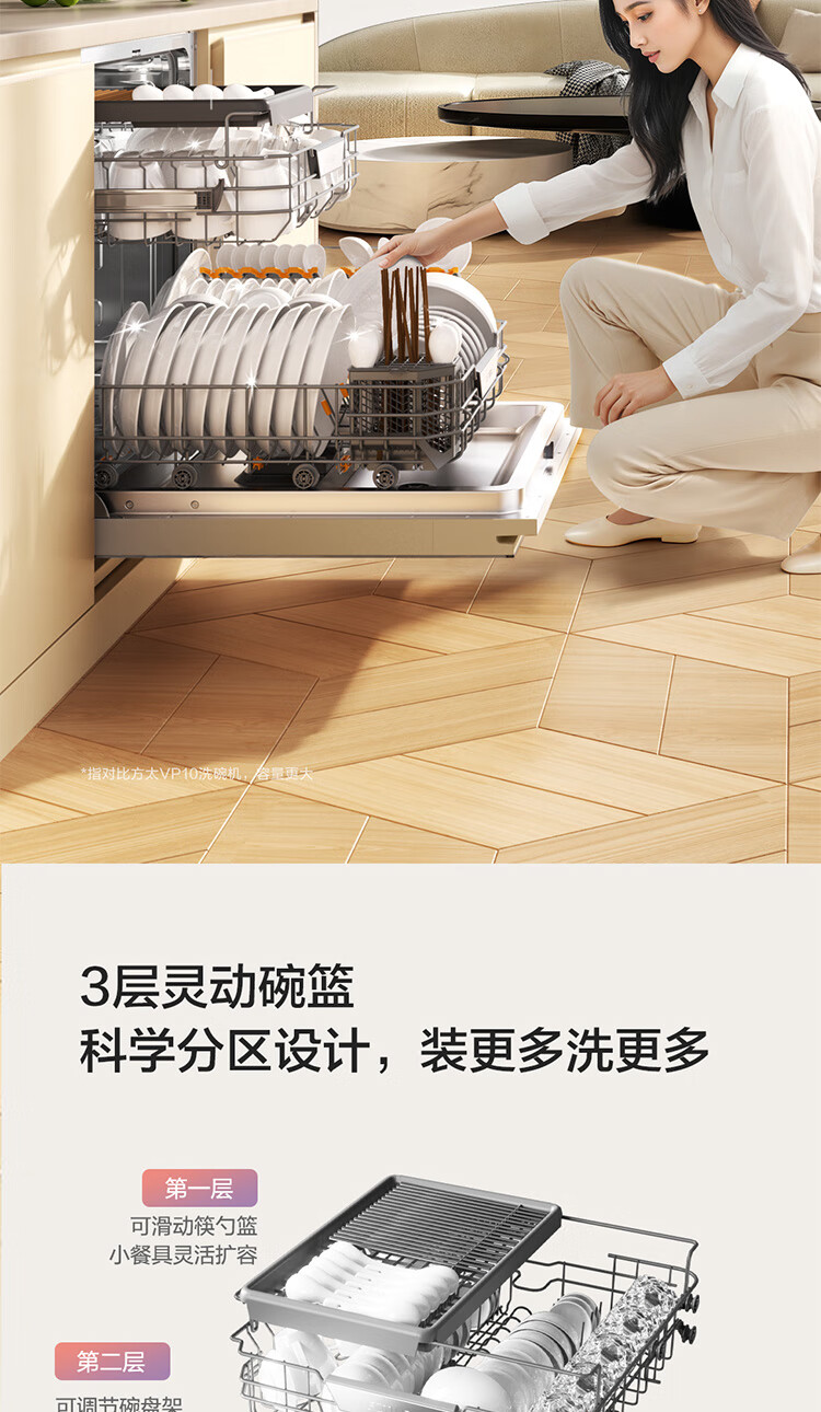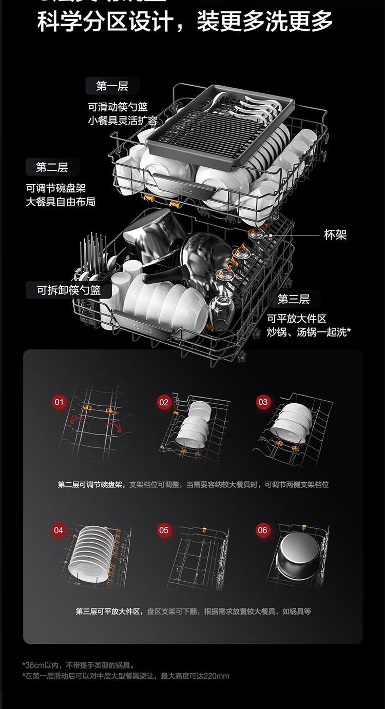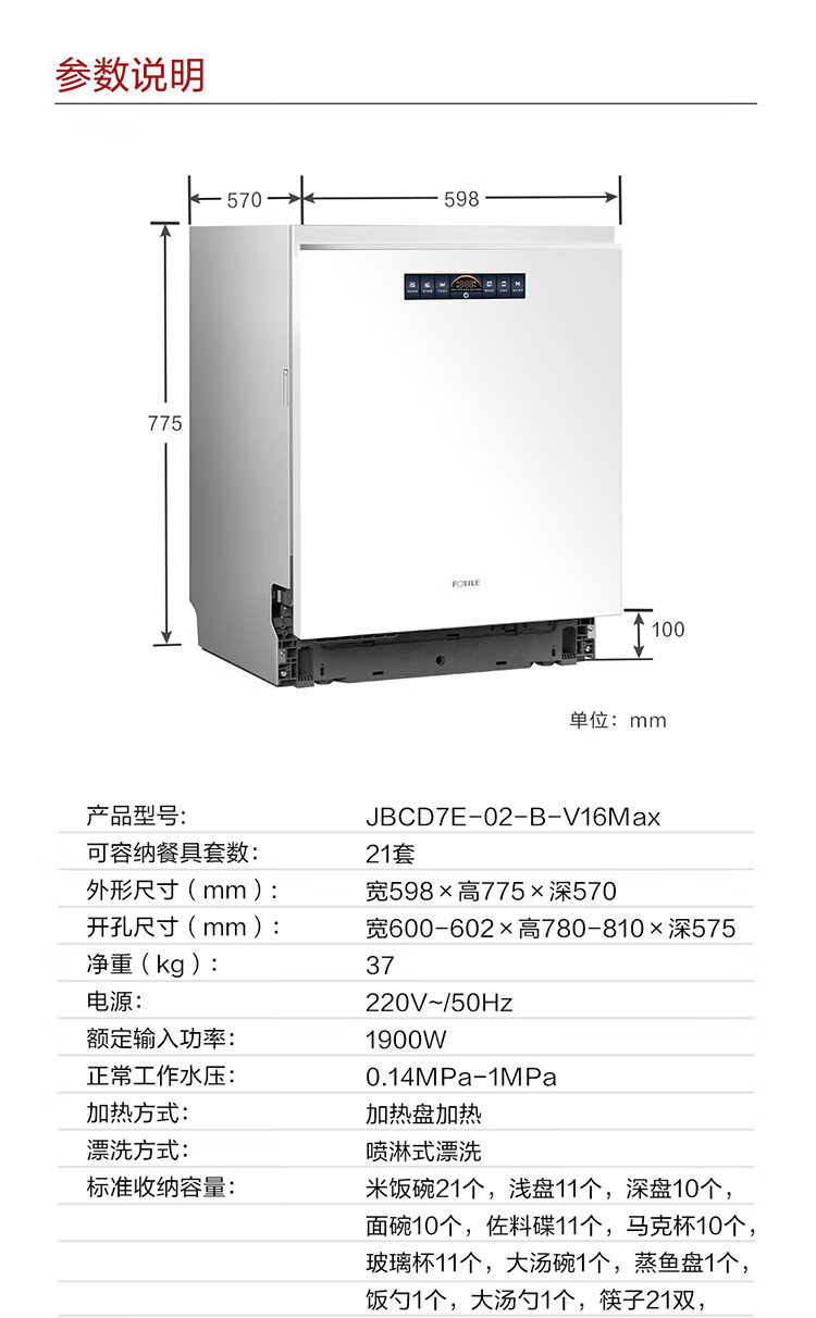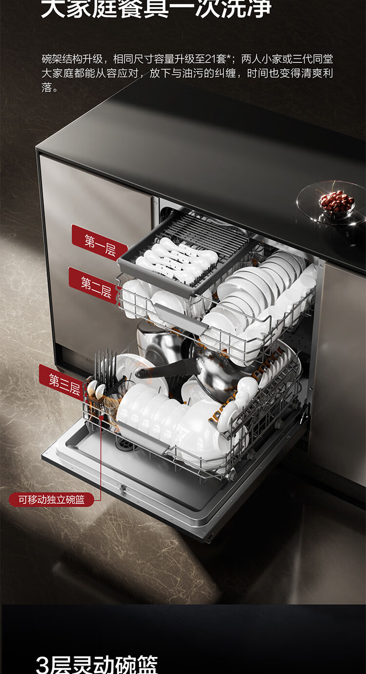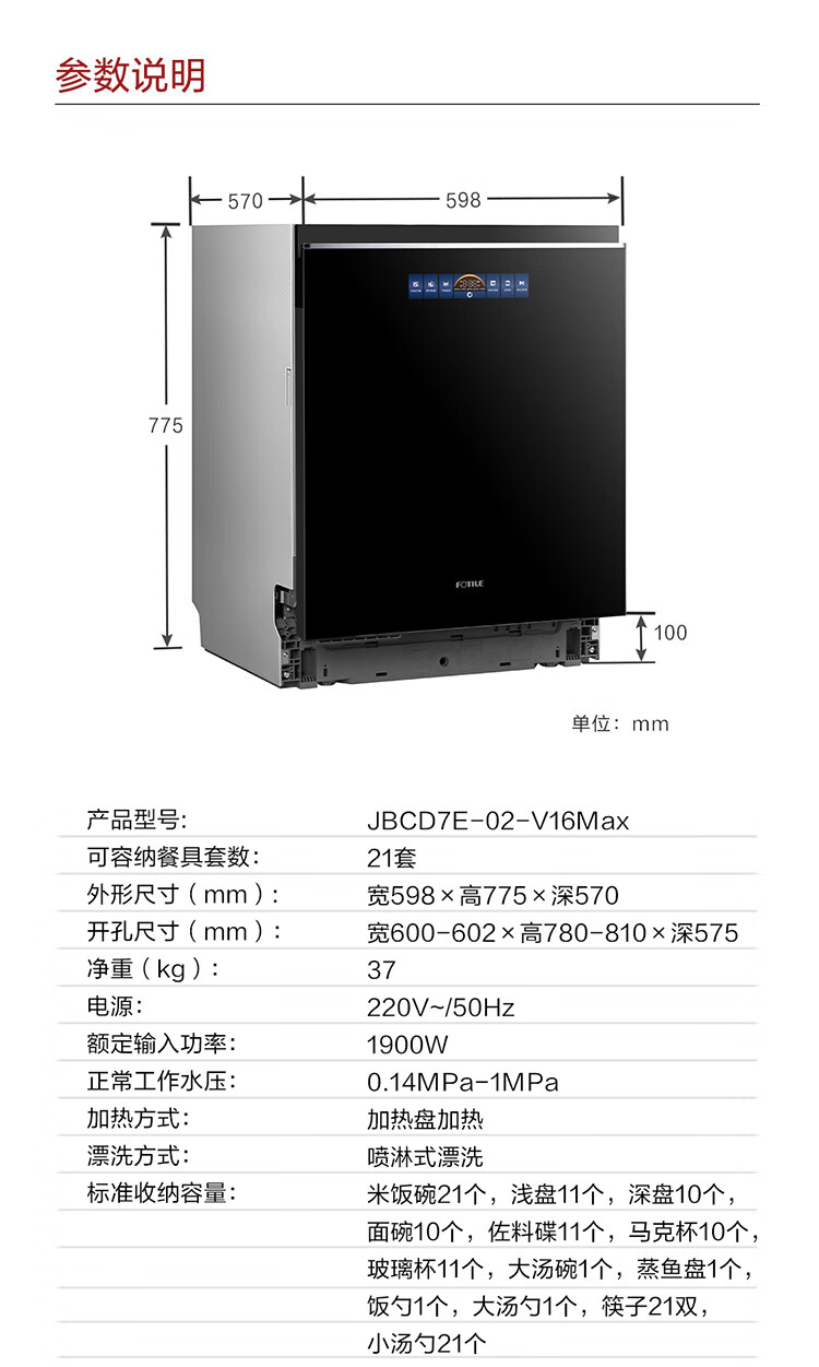 FOTILE V series dishwasher 02-V16Max 21 sets large capacity built-in household 3-story villa-level capacity high-energy bubble washing independent steam sterilization black 02-V16Max