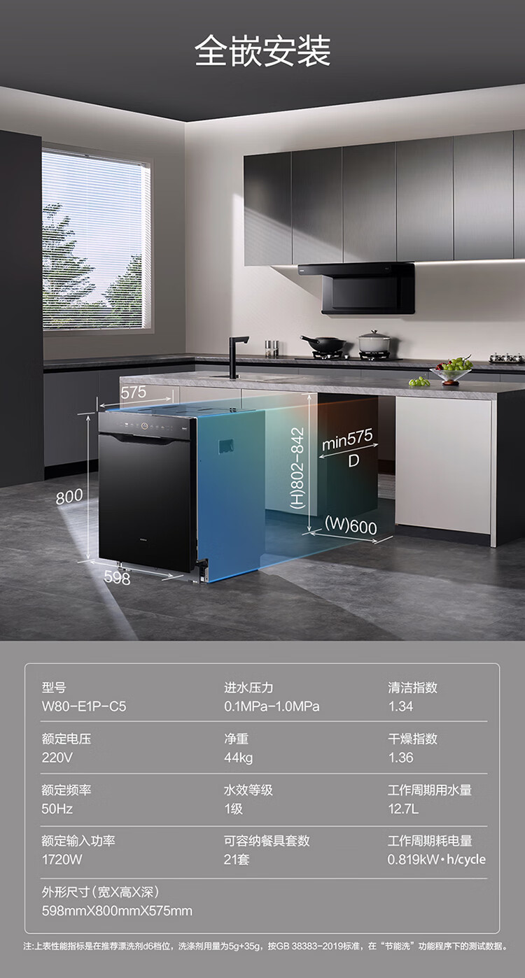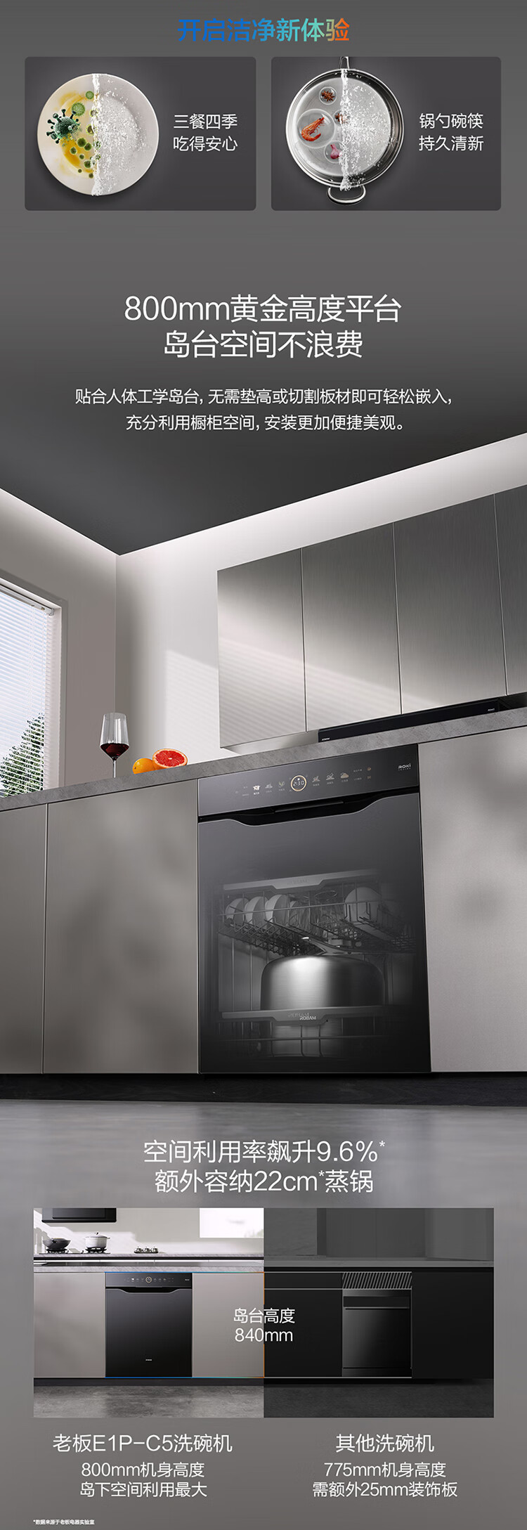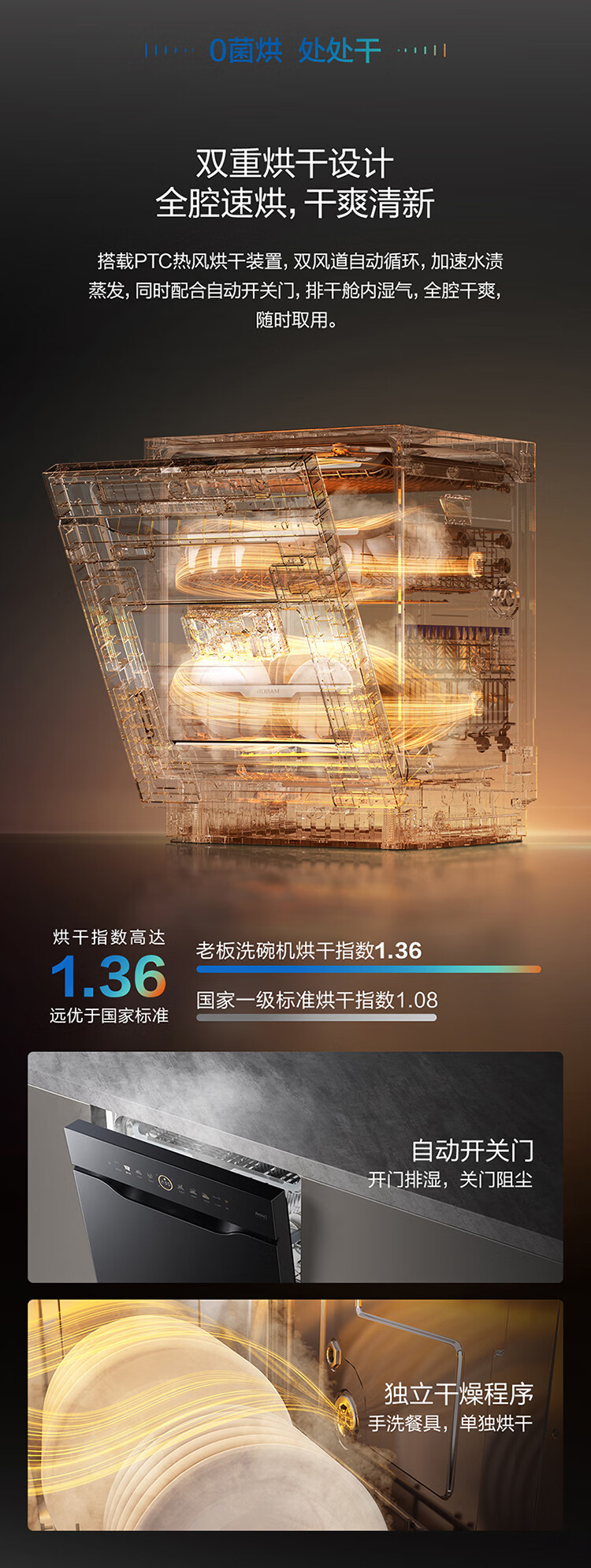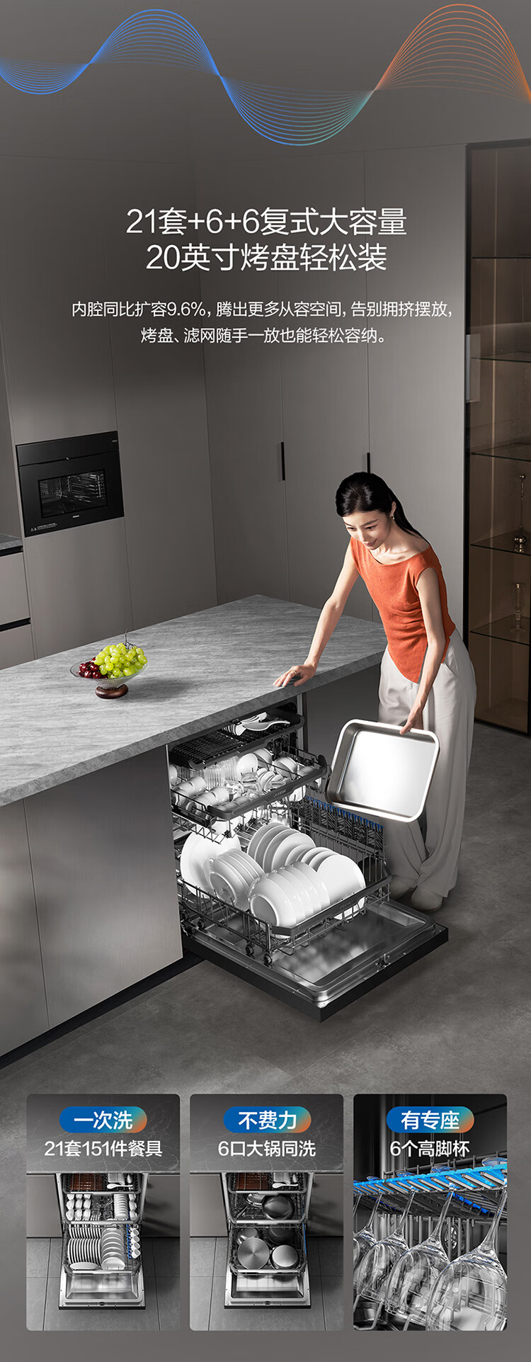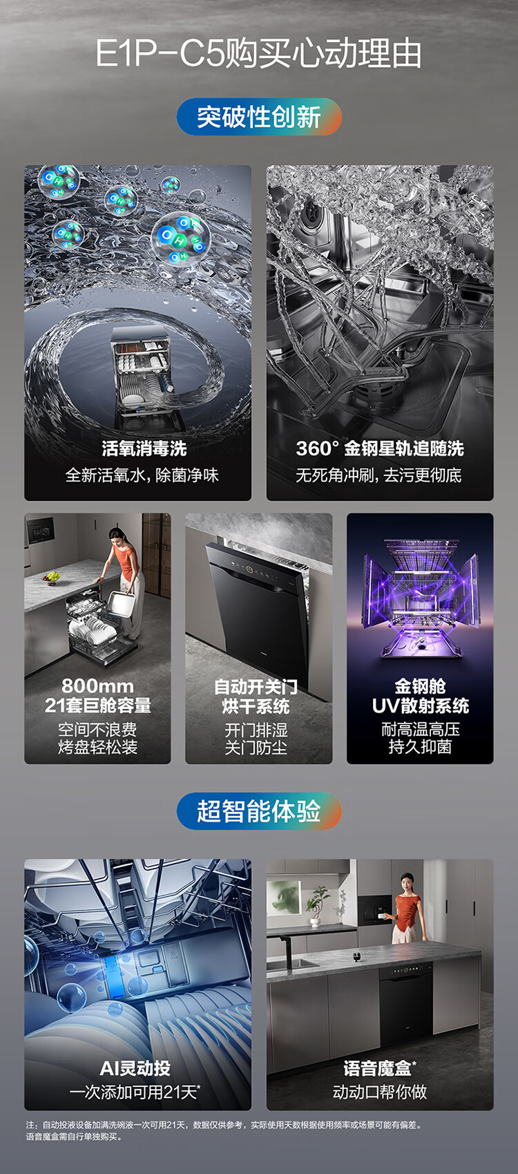 Robam's first active oxygen disinfection washer 21 sets + 6 + 6 embedded automatic opening and closing doors stainless steel star track following washing independent UV disinfection and drying 0 bacteria dishwasher E1P-C5 E1P-C5