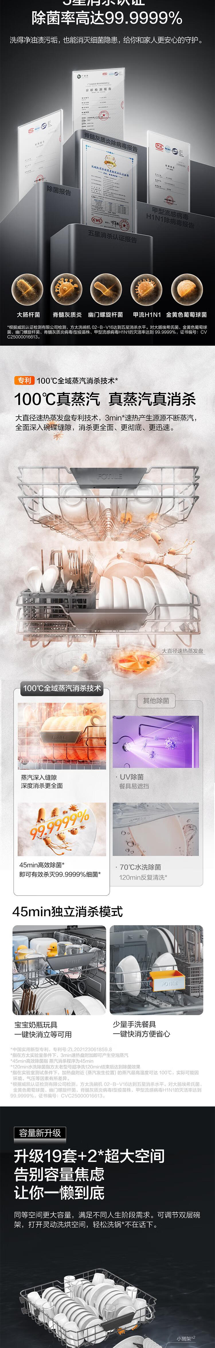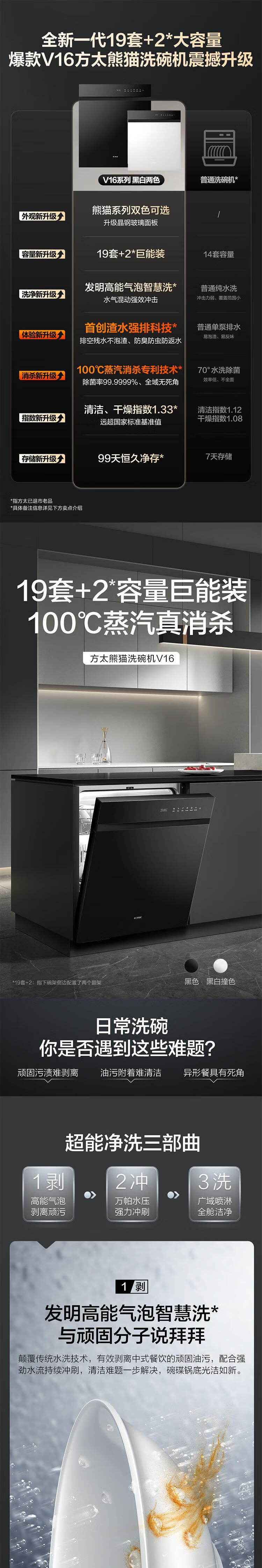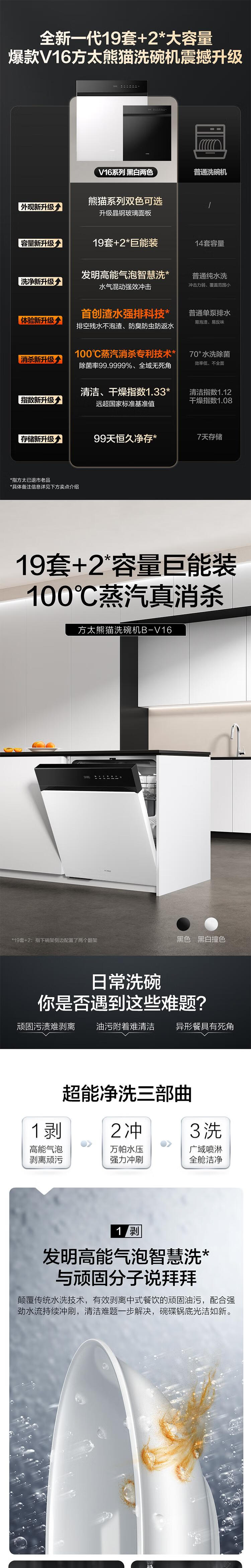 FOTILE's major new product built-in household dishwasher Panda series newly upgraded 19 sets of large capacity independent steam sterilization 02-V16 19 sets of black V16 main new product