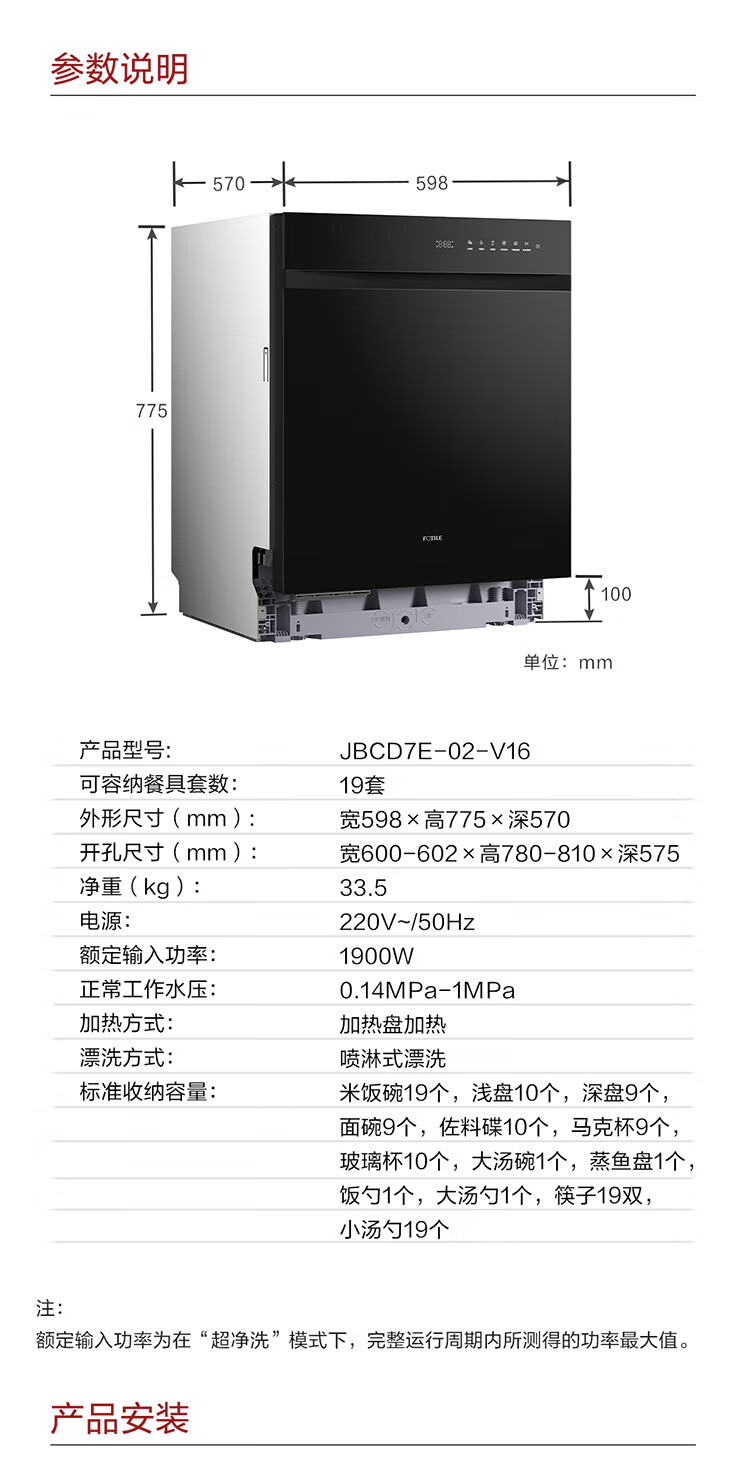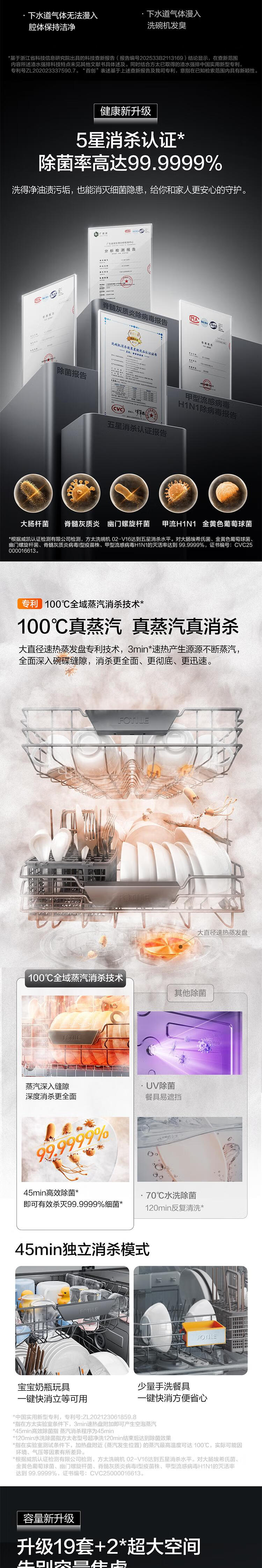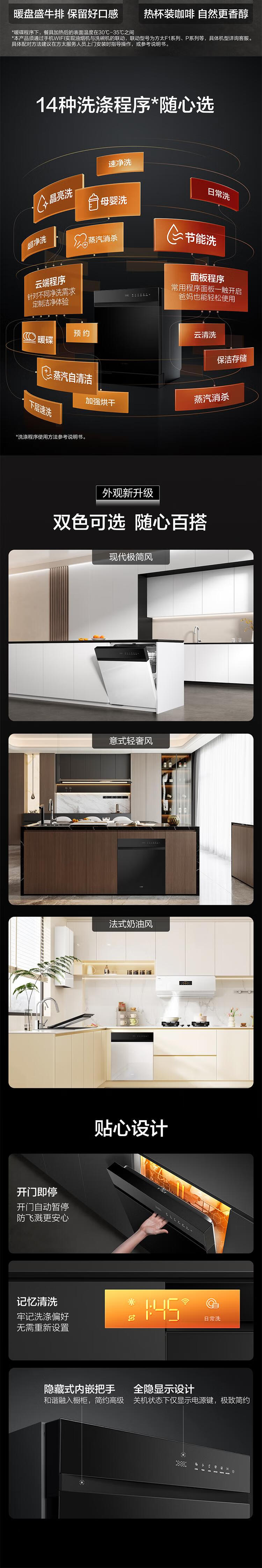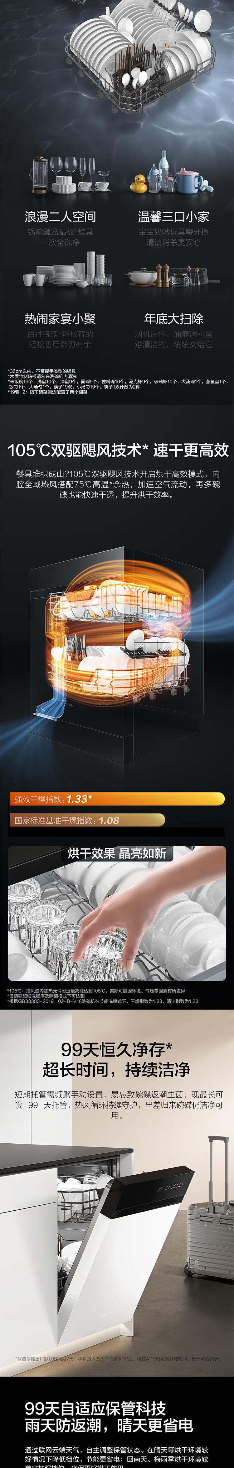 FOTILE's major new product built-in household dishwasher Panda series newly upgraded 19 sets of large capacity independent steam sterilization 02-V16 19 sets of black V16 main new product