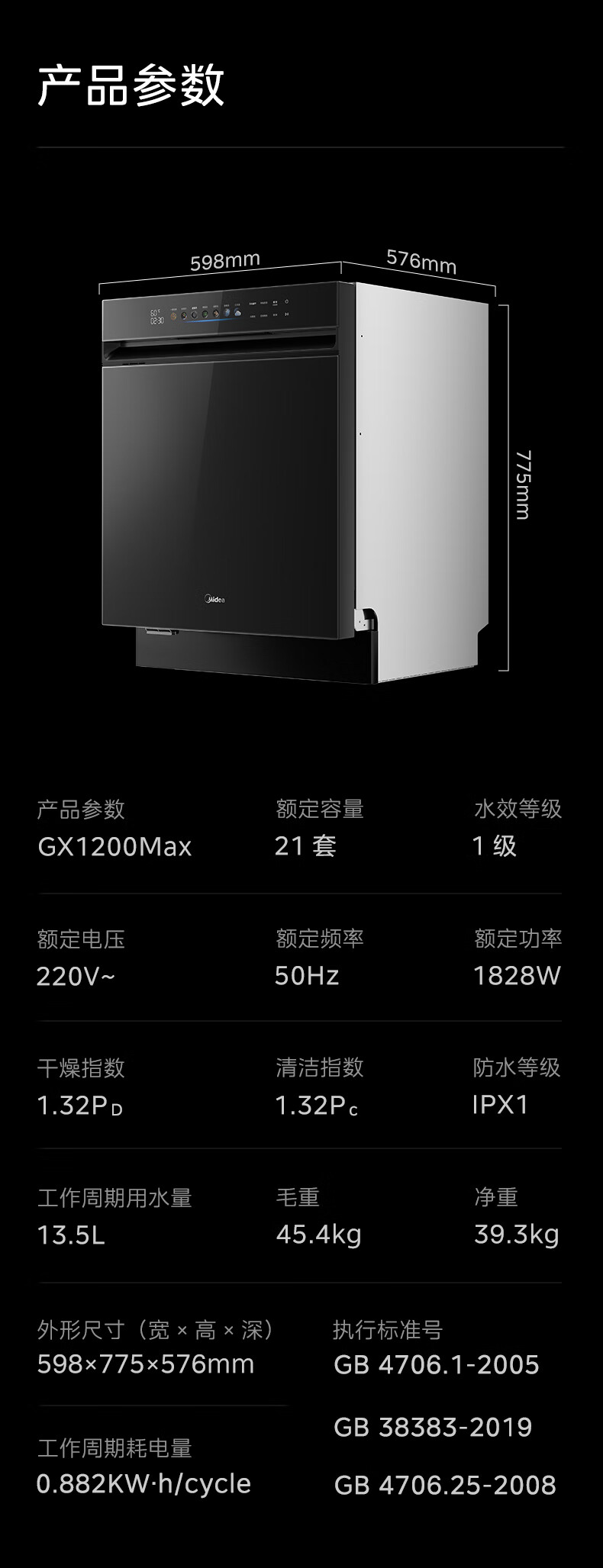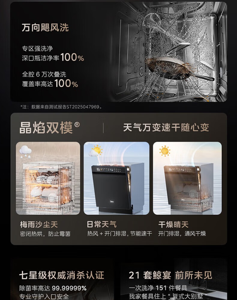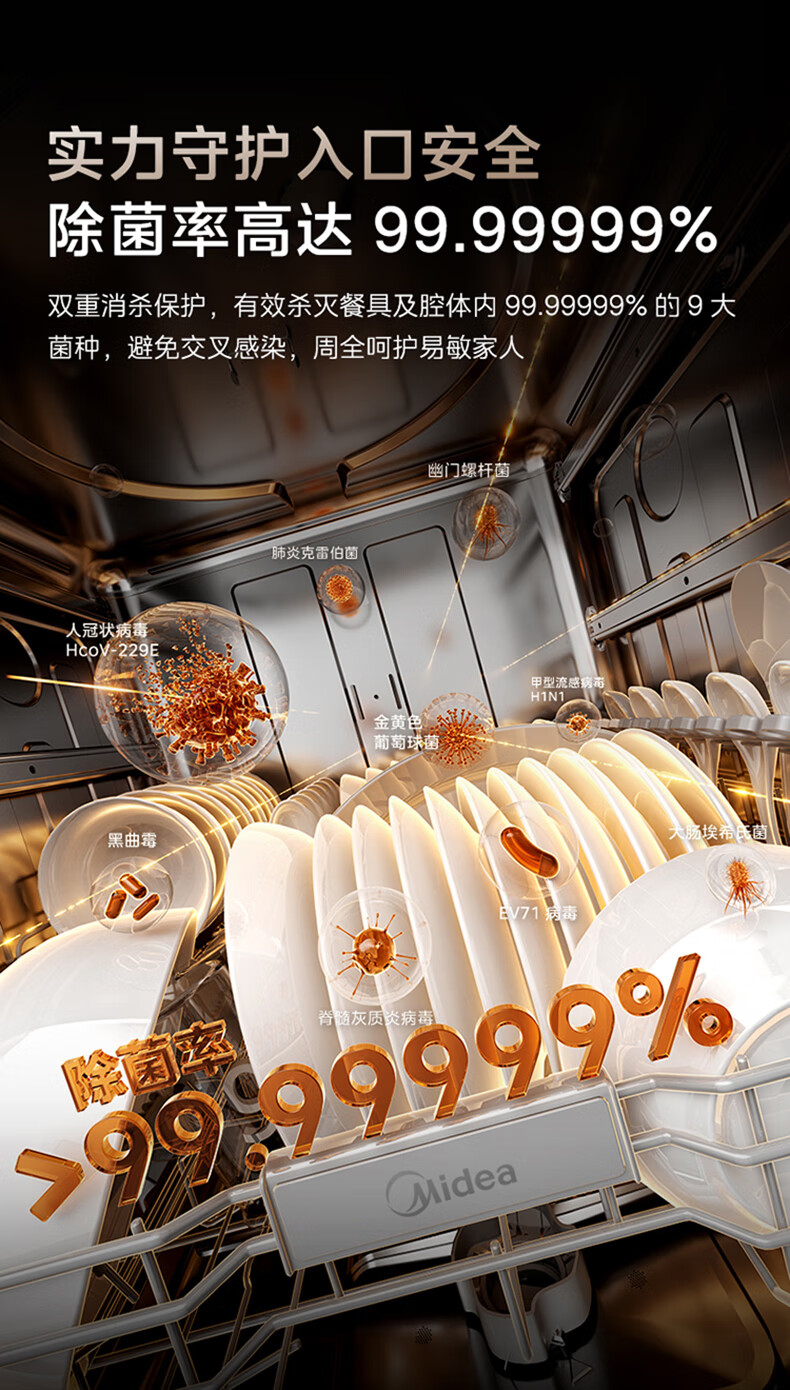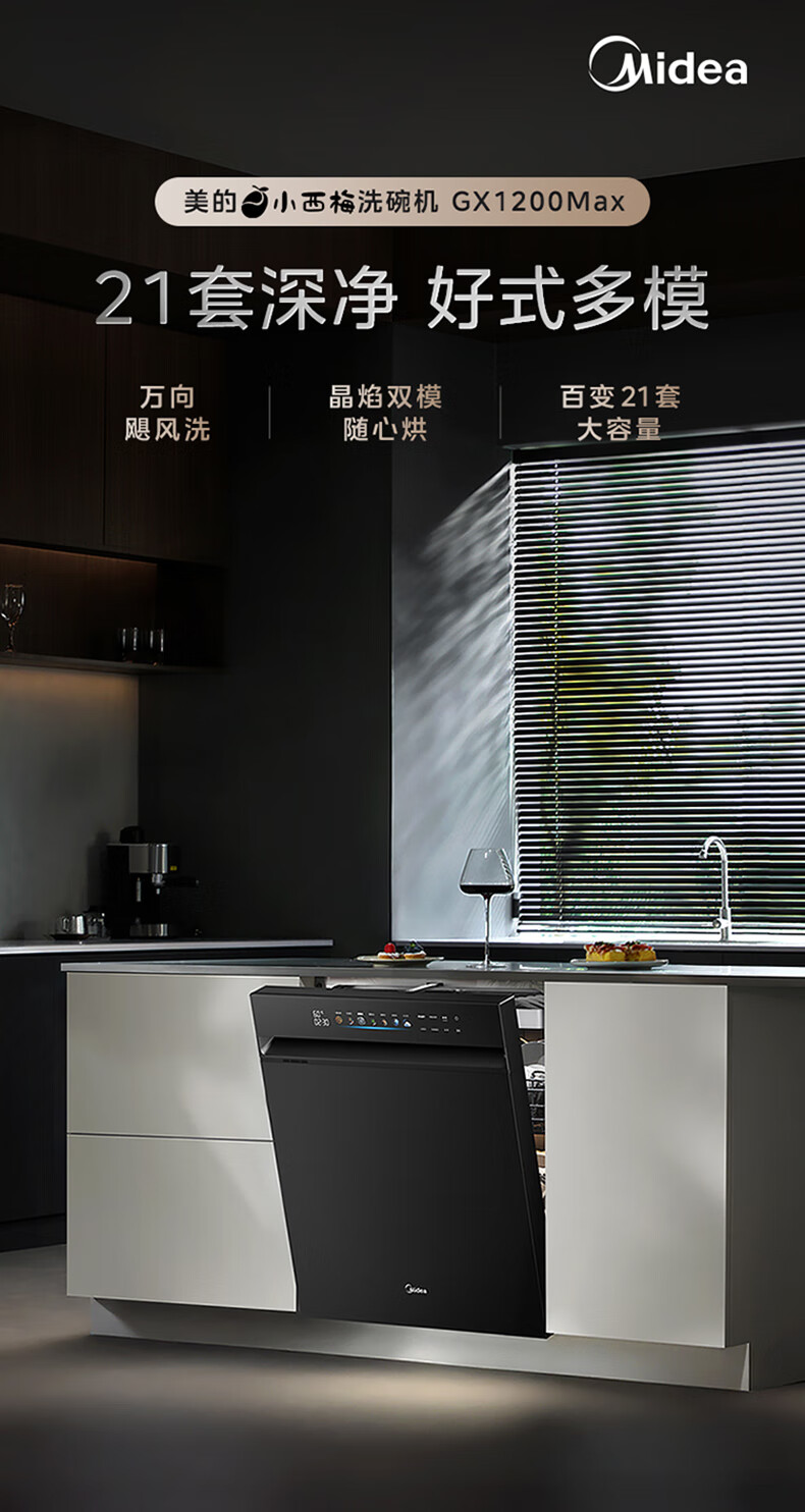 Midea dishwasher built-in Xiaoximei GX1200Max Variety of 21 sets large capacity seven-star disinfection crystal flame variable frequency universal hurricane wash automatic door opening and closing GX1200Max