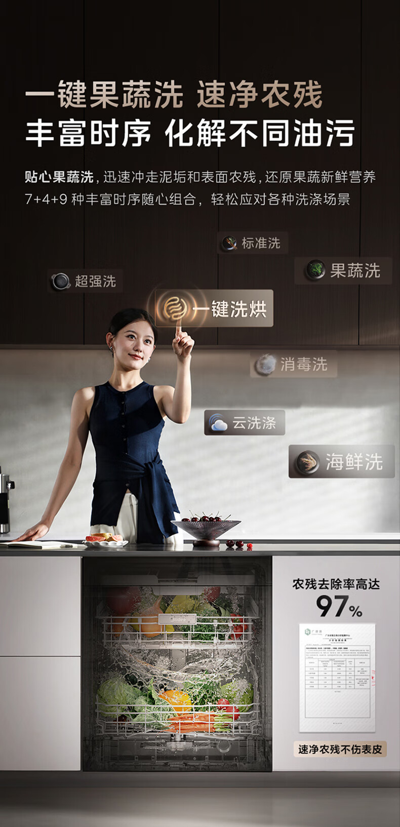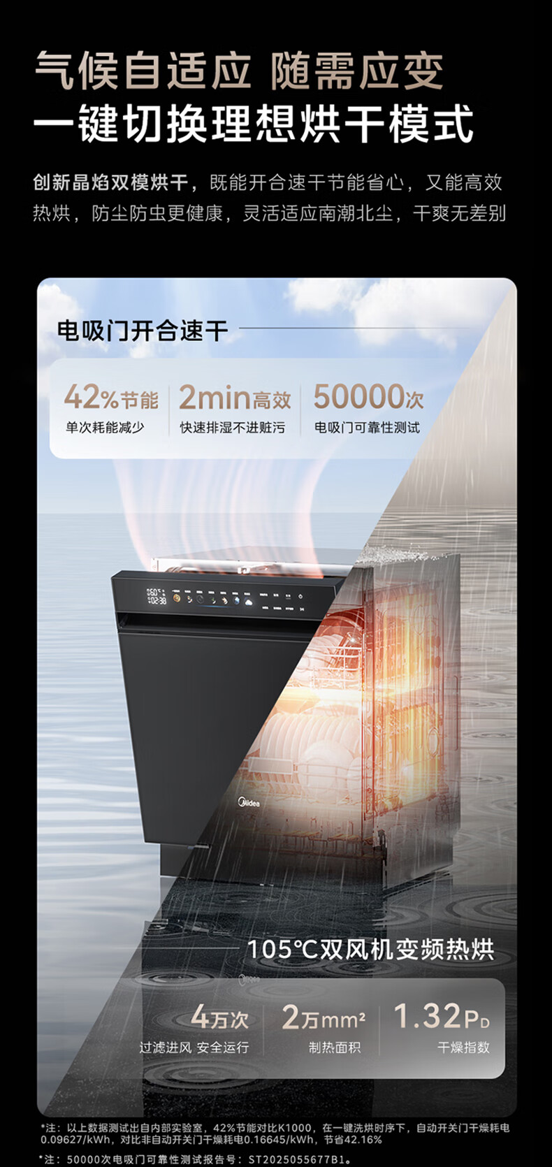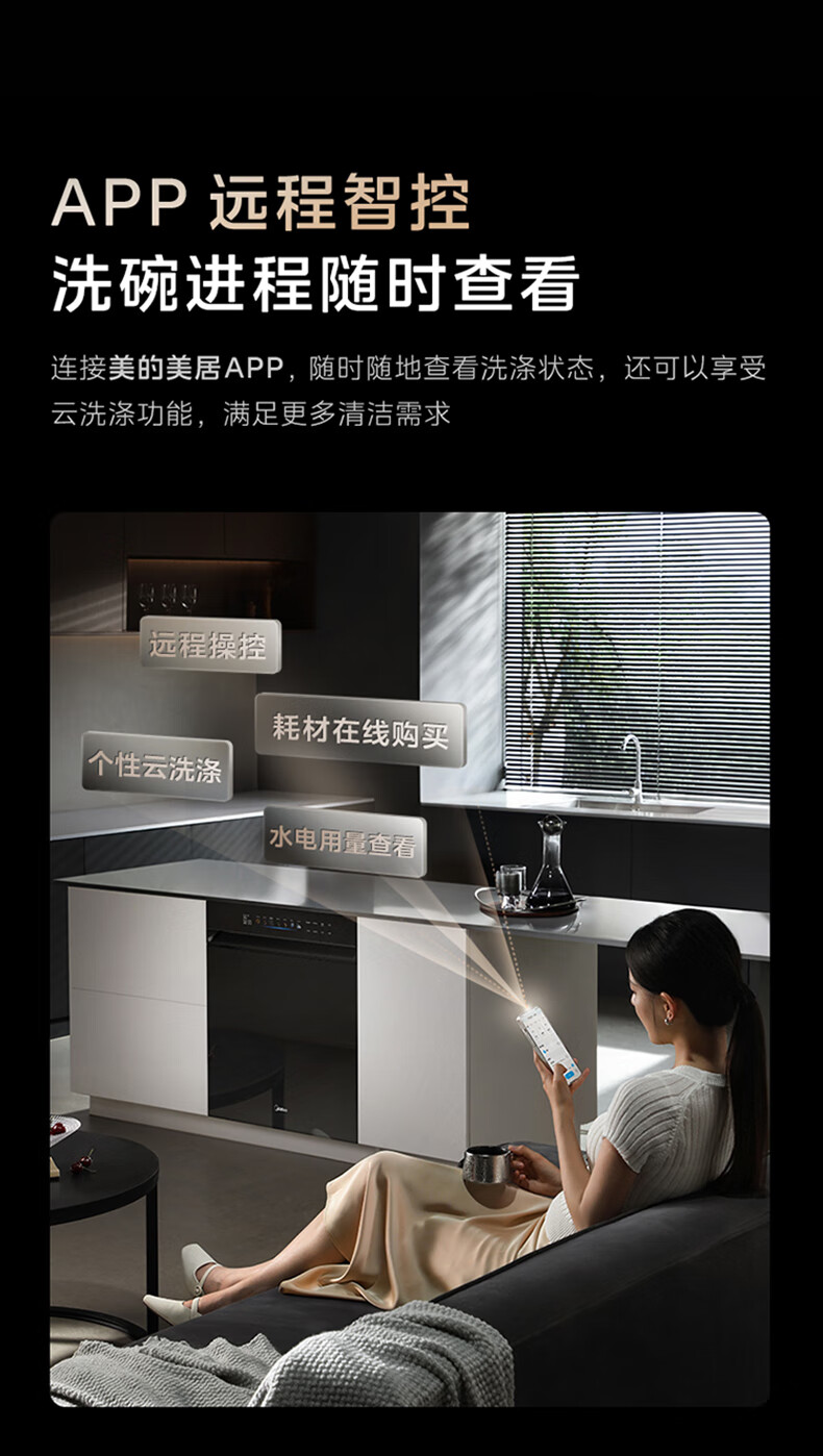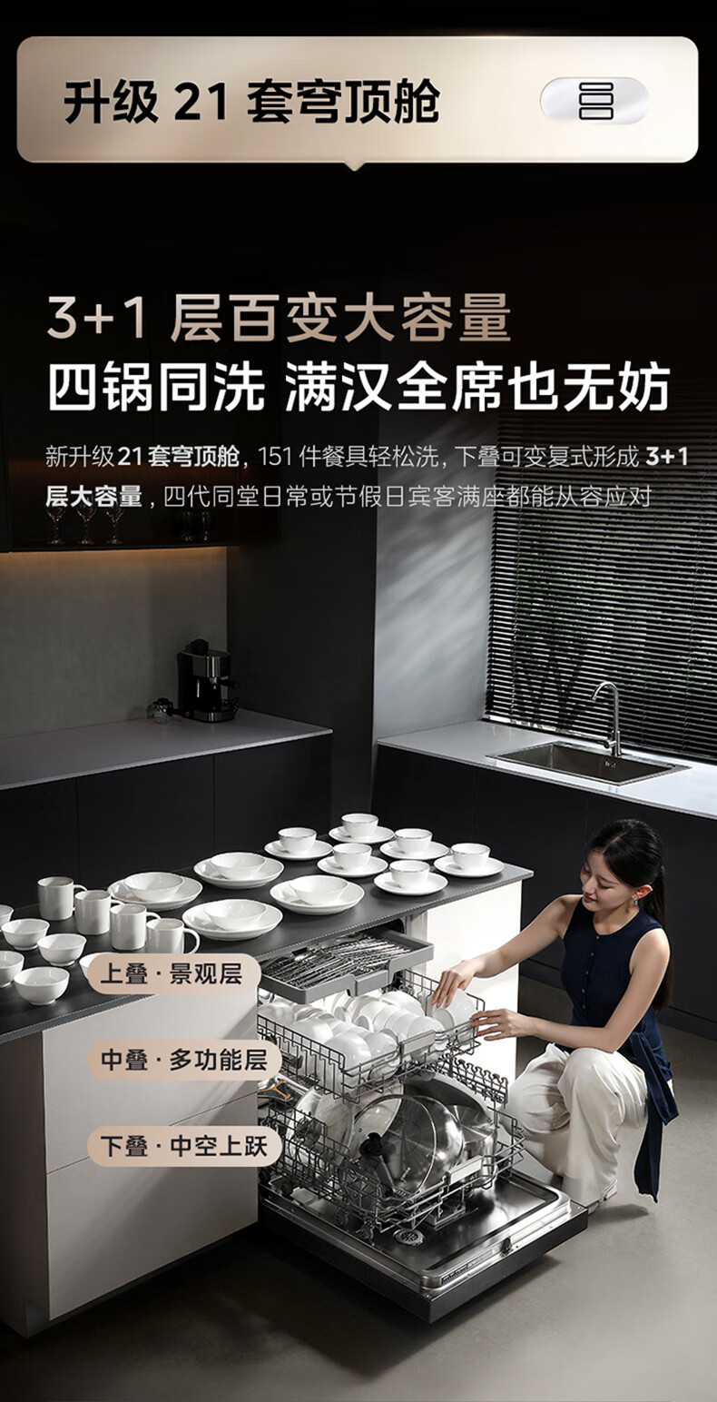Midea dishwasher built-in Xiaoximei GX1200Max Variety of 21 sets large capacity seven-star disinfection crystal flame variable frequency universal hurricane wash automatic door opening and closing GX1200Max
