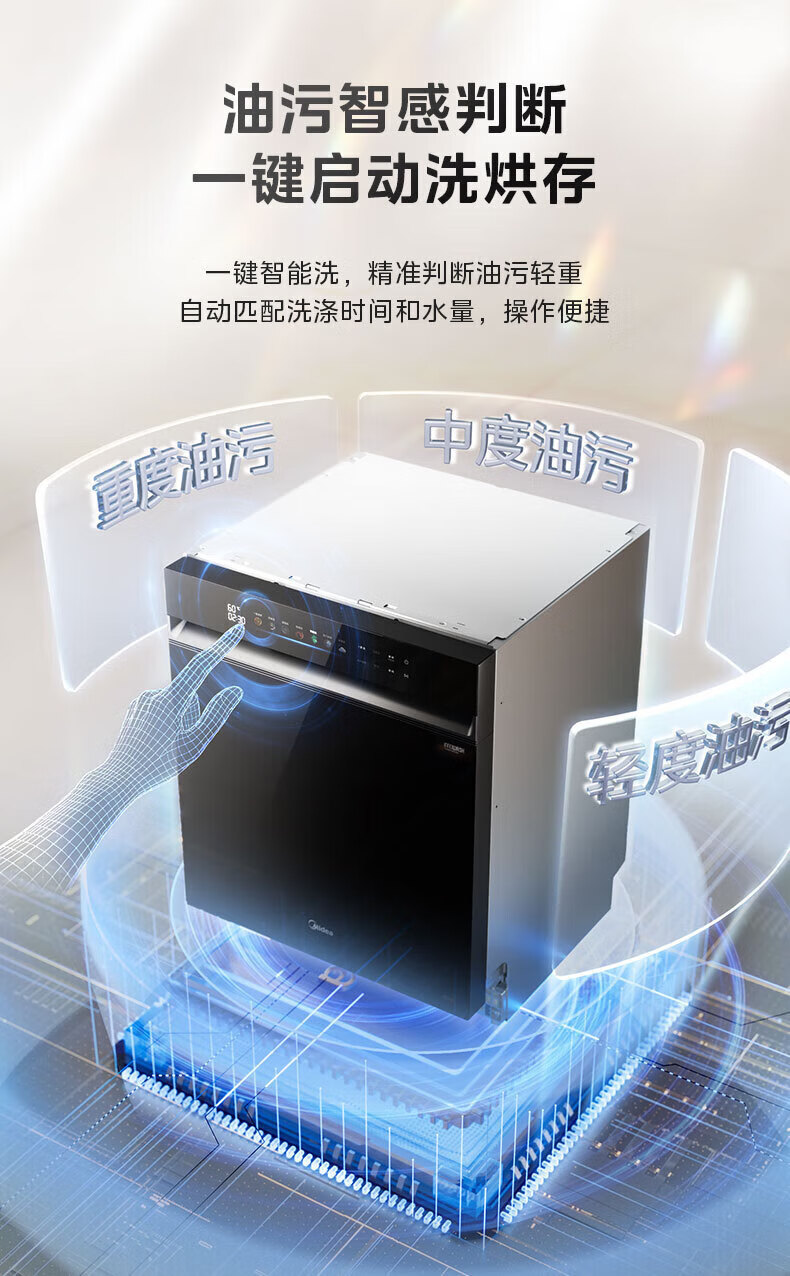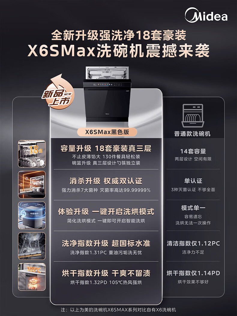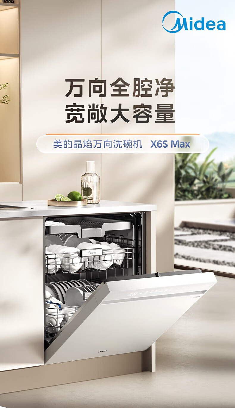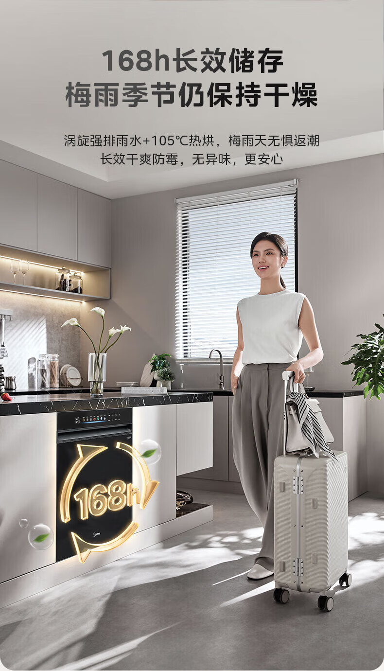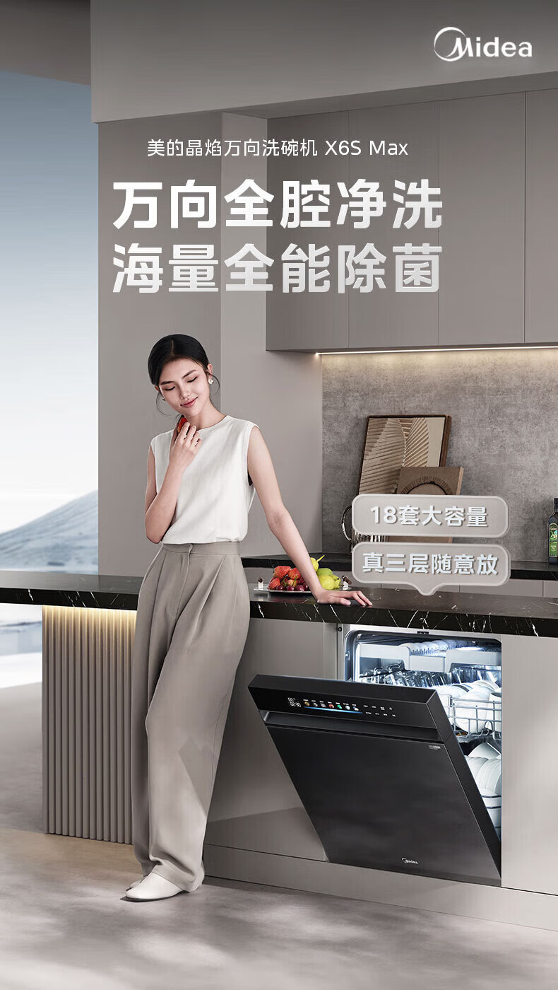 Midea Universal Dishwasher Embedded 18 Sets of Fully Automatic Home Kitchen Appliances UV Sterilization Steam Disinfection Washing and Drying Integrated 105 Hot Air Drying Stainless Steel Large Capacity Simple Black X6S Max Frequency Conversion Universal Full Cavity Washer