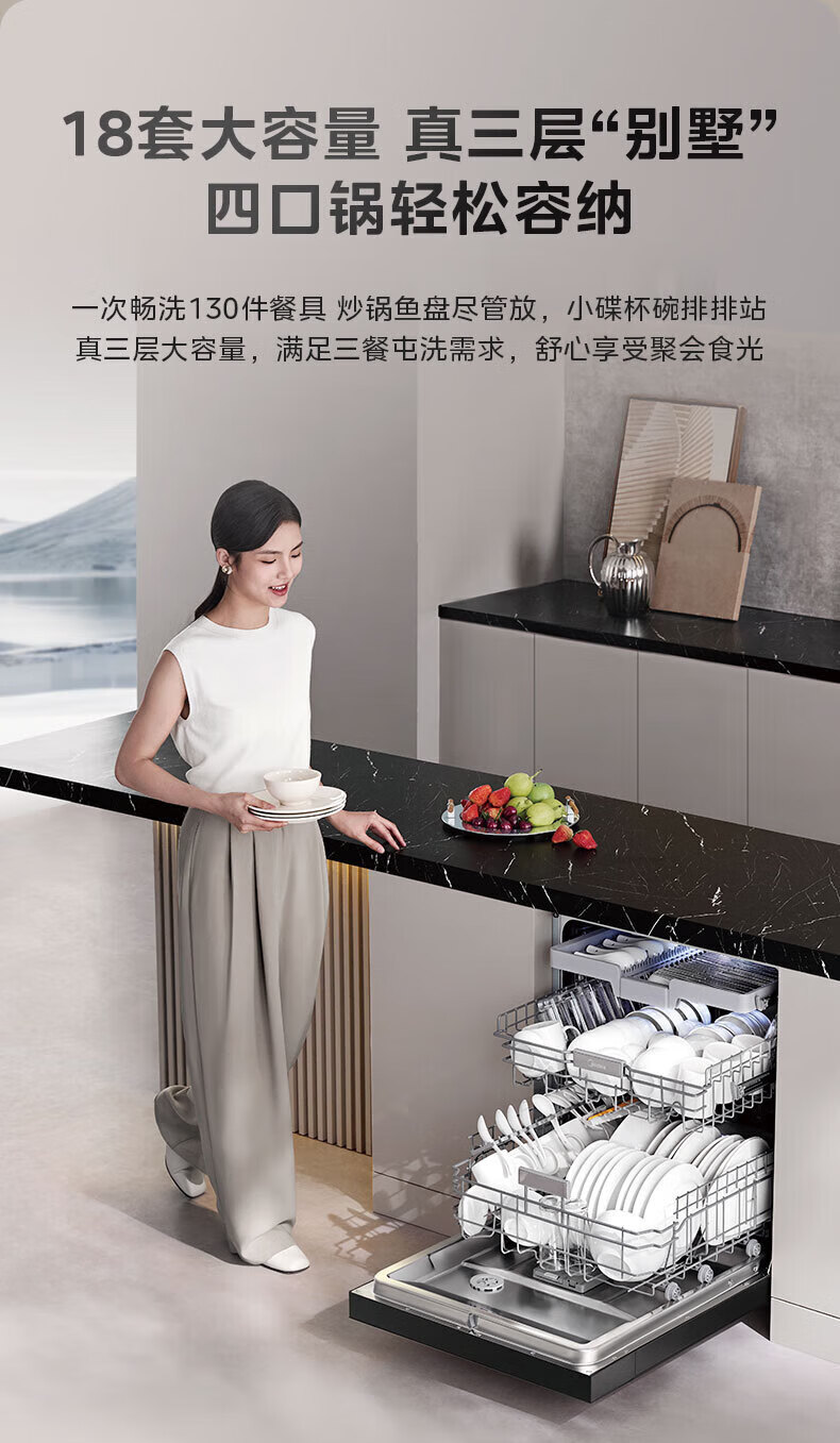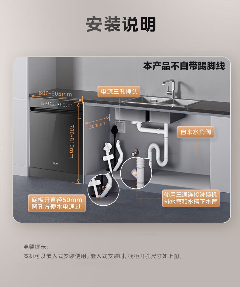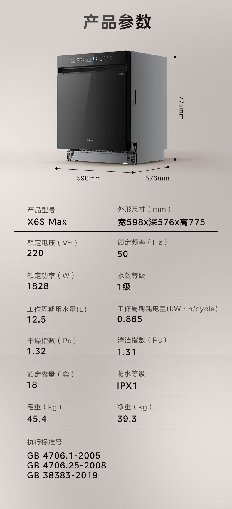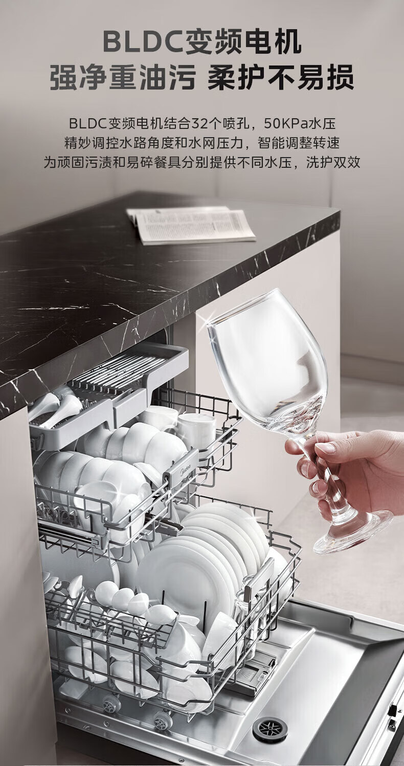 Midea Universal Dishwasher Embedded 18 Sets of Fully Automatic Home Kitchen Appliances UV Sterilization Steam Disinfection Washing and Drying Integrated 105 Hot Air Drying Stainless Steel Large Capacity Simple Black X6S Max Frequency Conversion Universal Full Cavity Washer