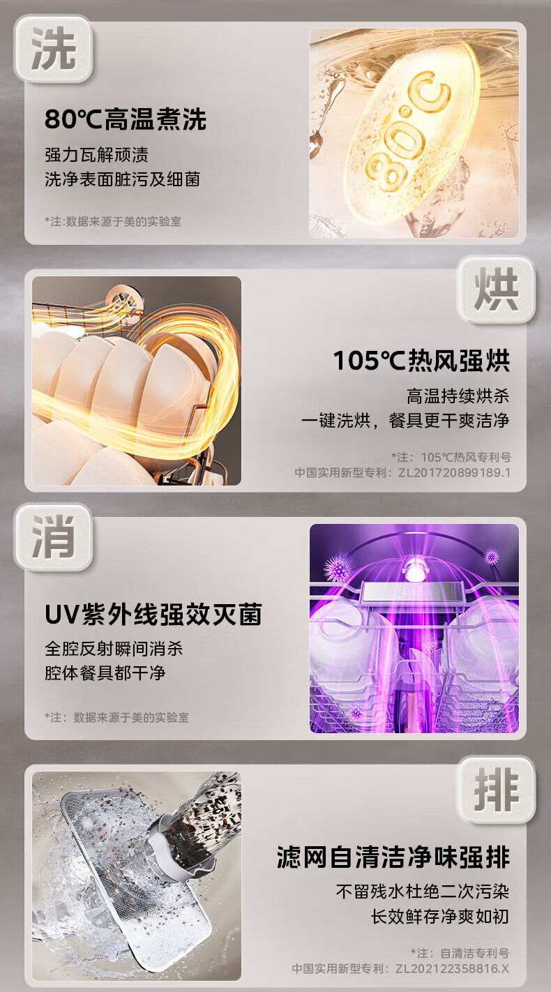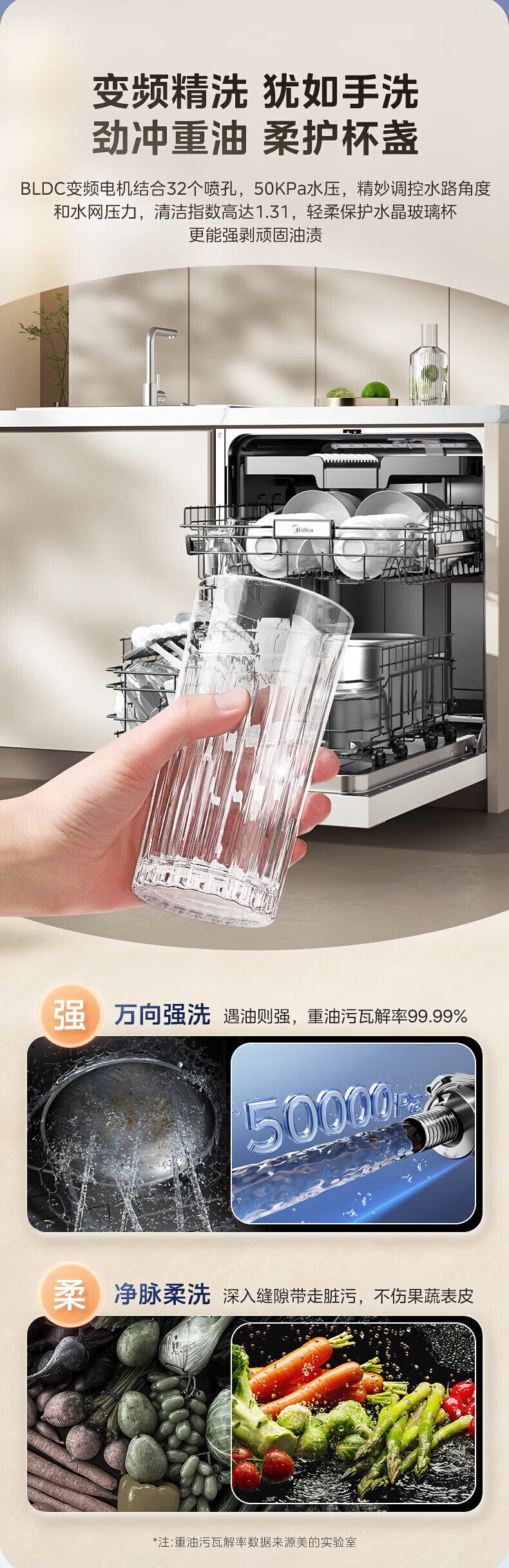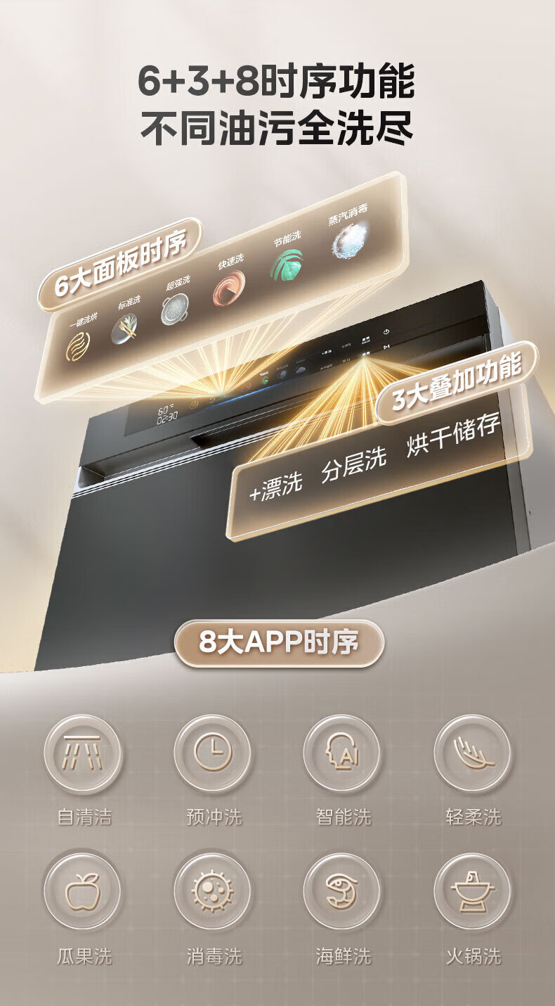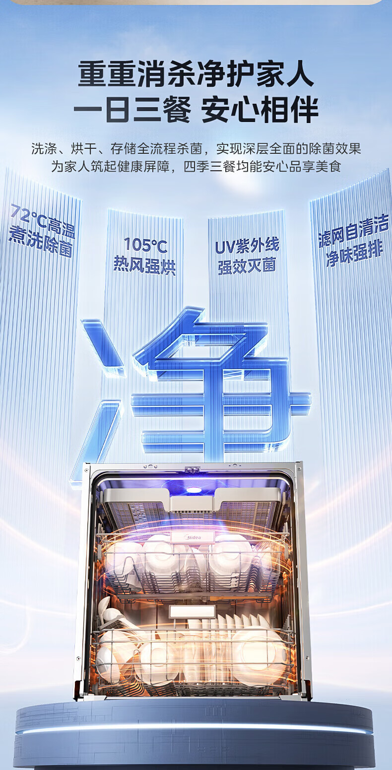 Midea Universal Dishwasher Embedded 18 Sets of Fully Automatic Home Kitchen Appliances UV Sterilization Steam Disinfection Washing and Drying Integrated 105 Hot Air Drying Stainless Steel Large Capacity Simple Black X6S Max Frequency Conversion Universal Full Cavity Washer