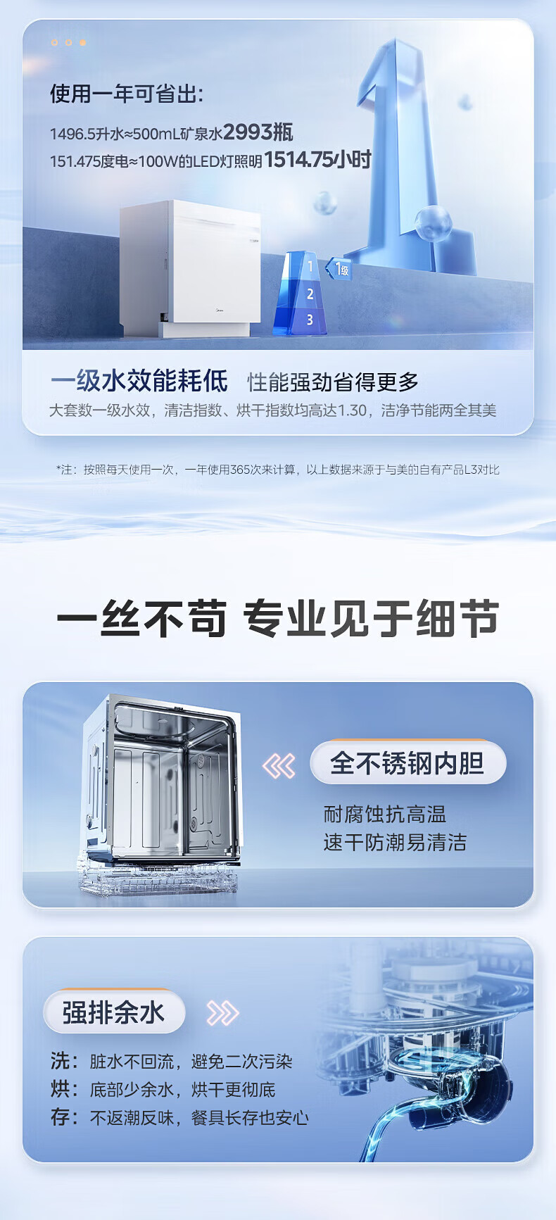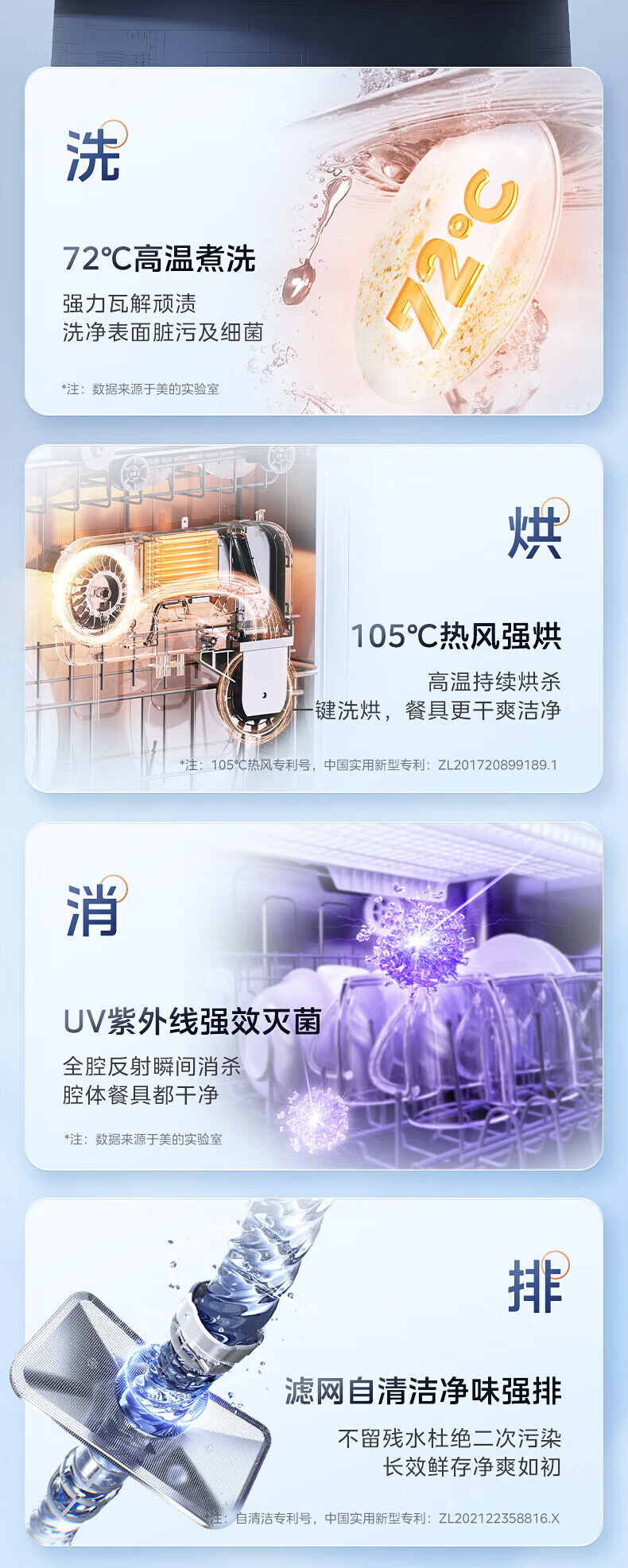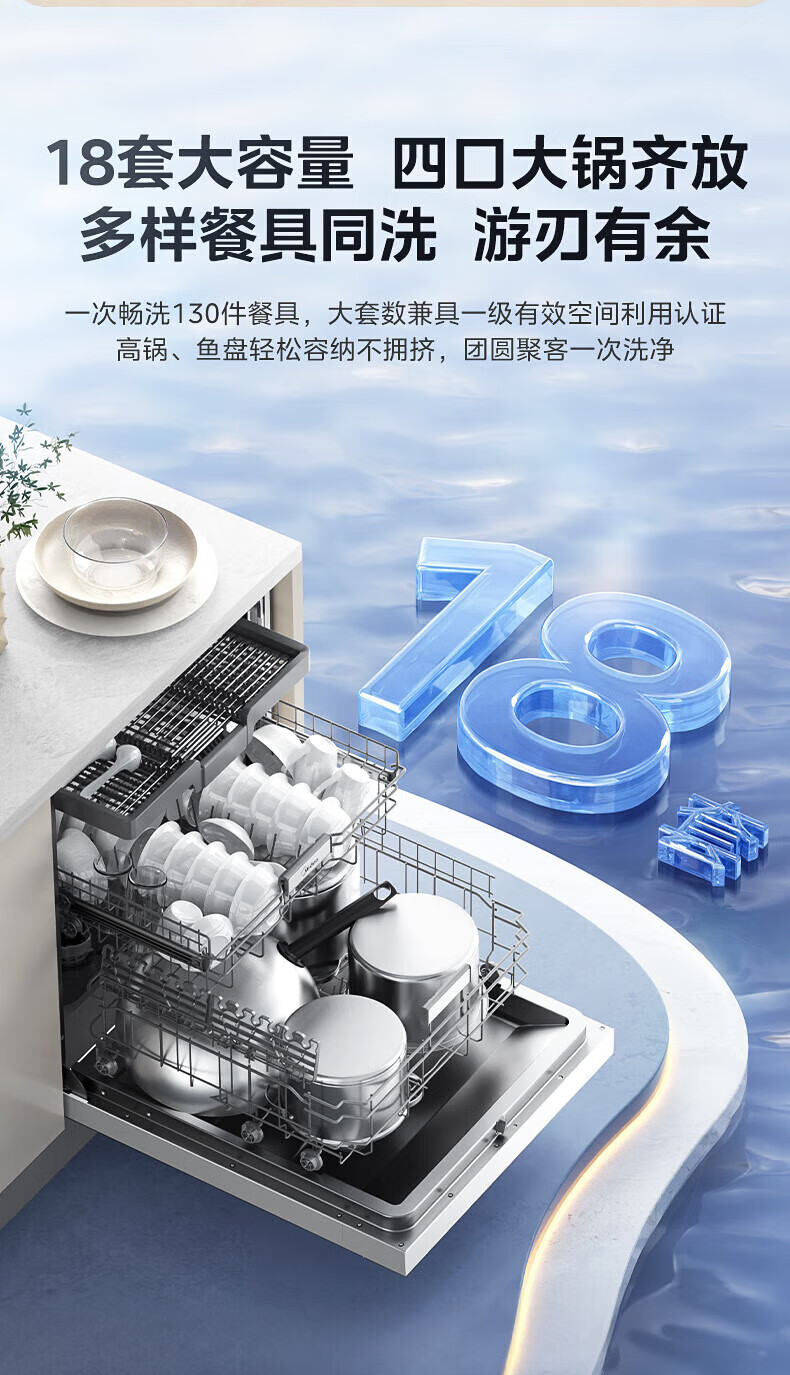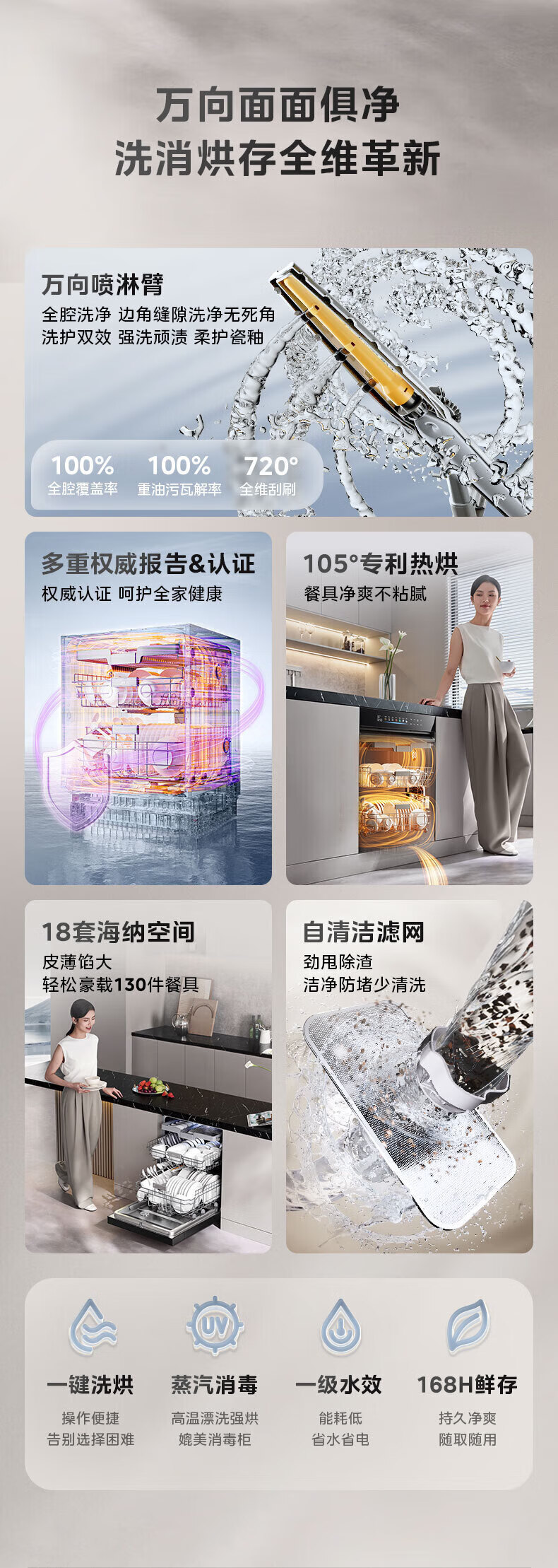 Midea Universal Dishwasher Embedded 18 Sets of Fully Automatic Home Kitchen Appliances UV Sterilization Steam Disinfection Washing and Drying Integrated 105 Hot Air Drying Stainless Steel Large Capacity Simple Black X6S Max Frequency Conversion Universal Full Cavity Washer