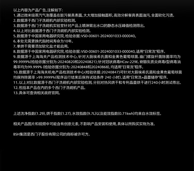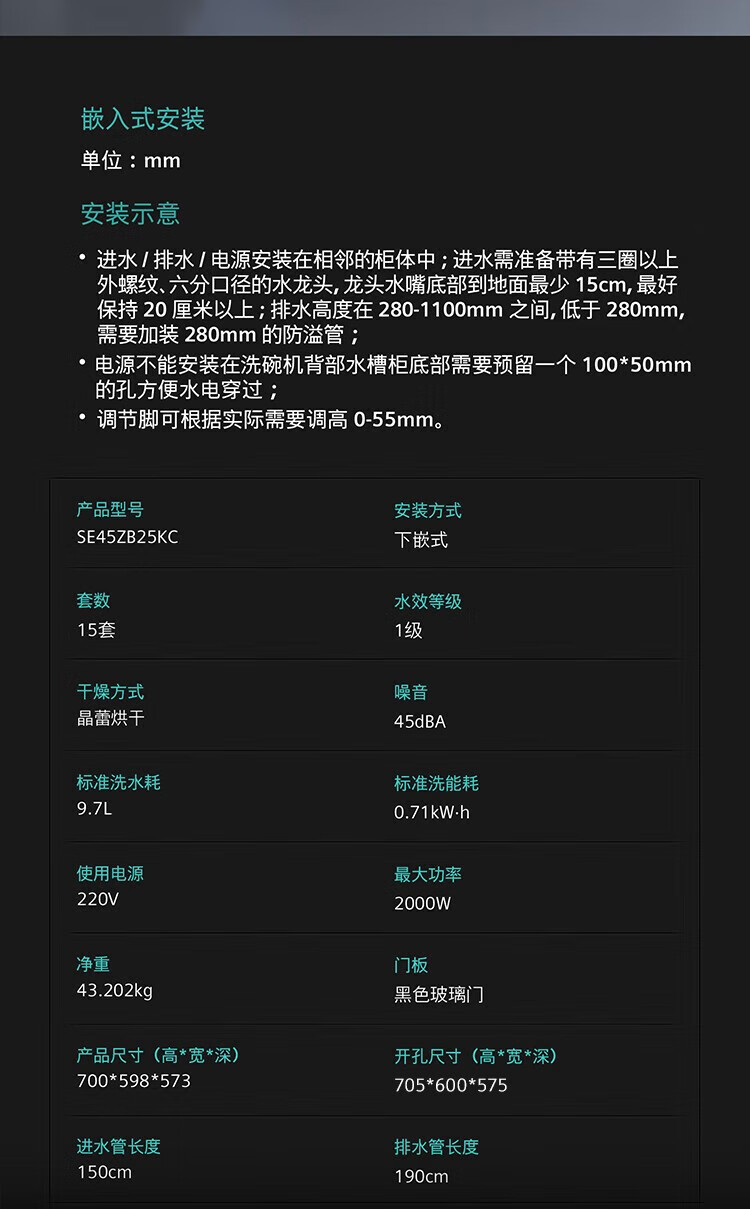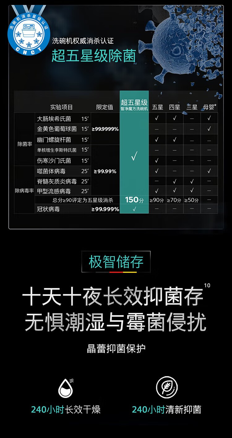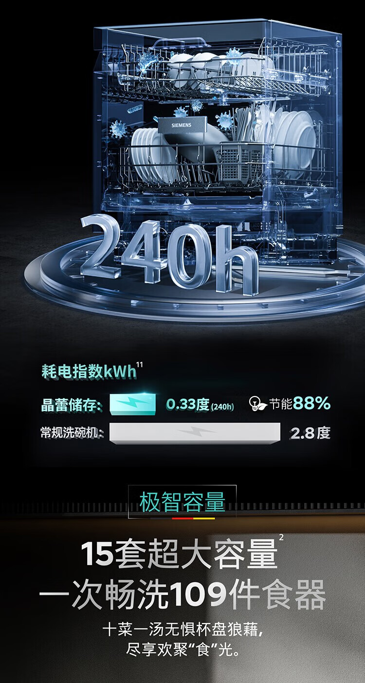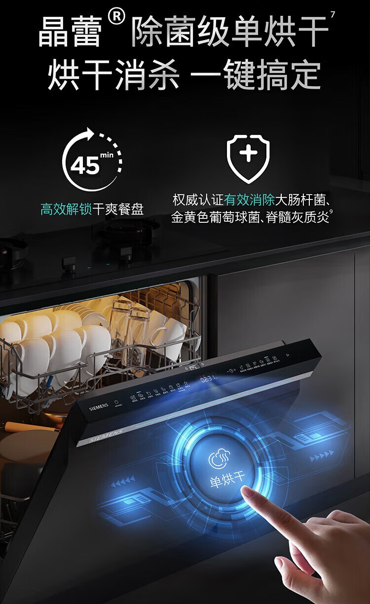 SIEMENS Intelligent Cleaning Cube 15 sets of built-in crystal bud dryers under the dishwasher stove 700mm height 240 hours long-lasting antibacterial storage SE45ZB25KC Super five-star sterilization