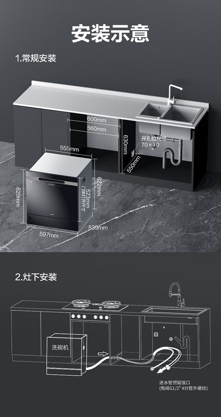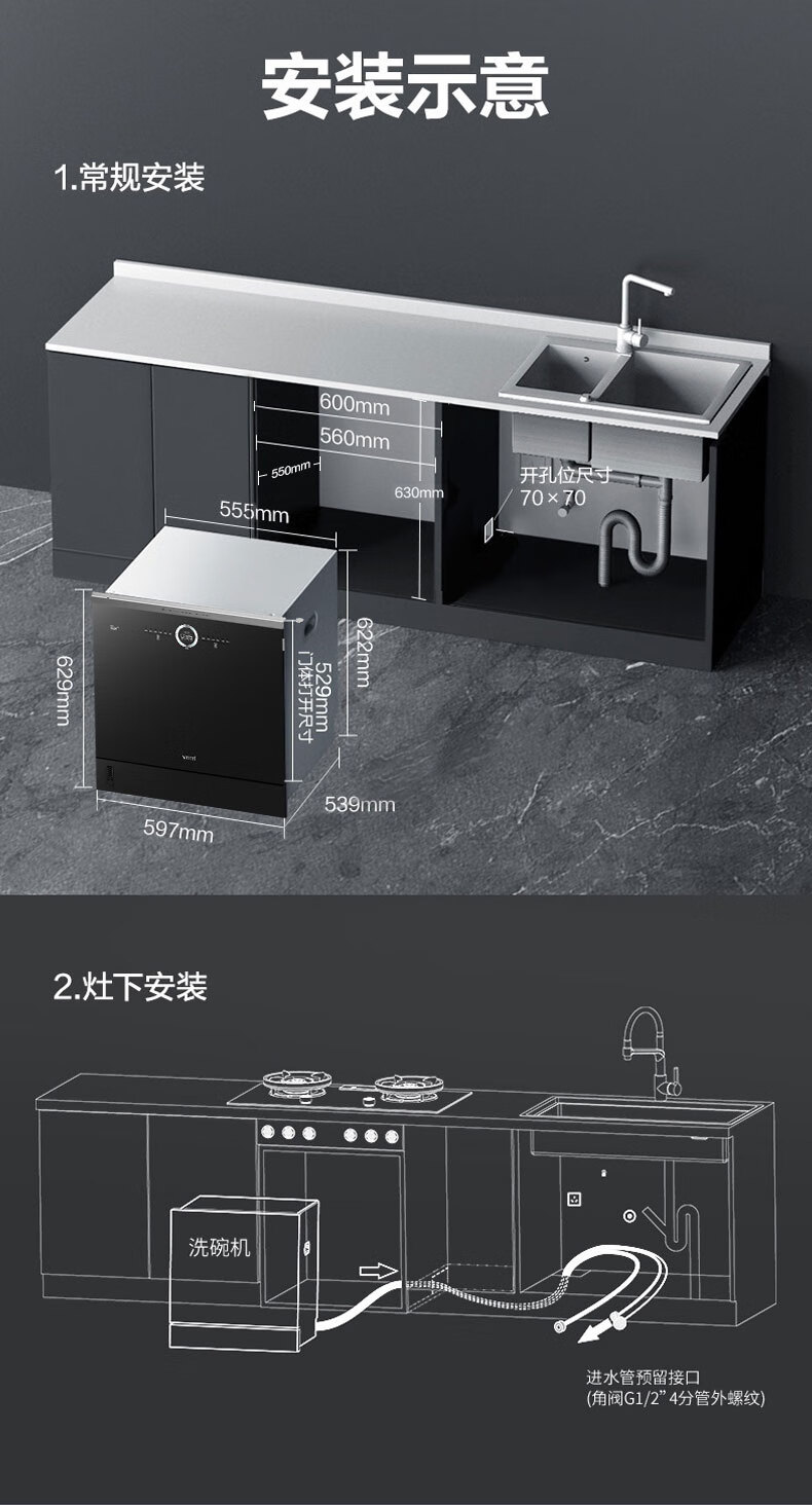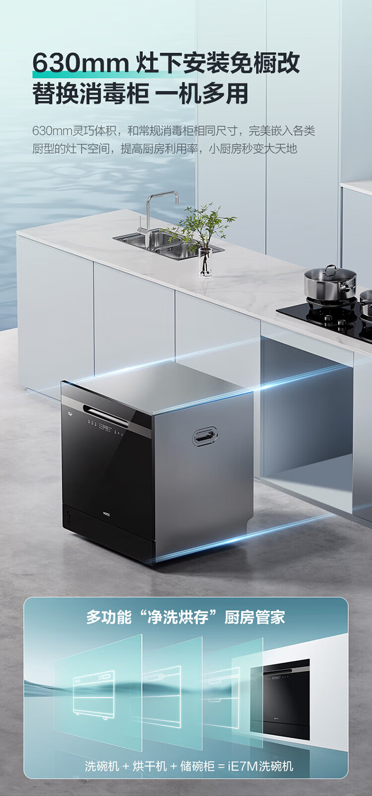 Vantage built-in dishwasher household 12 sets large-capacity washing, disinfection, drying and storage fully automatic dishwasher all-in-one machine installed under the stove high temperature ultraviolet sterilization home iE7Pro iE7Pro stove bottom installation