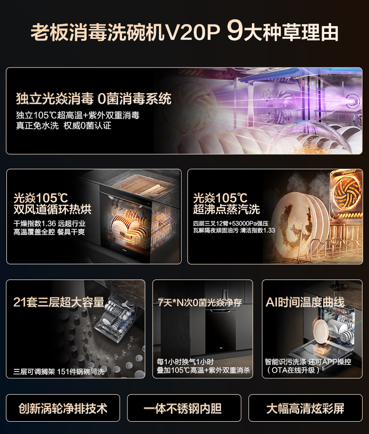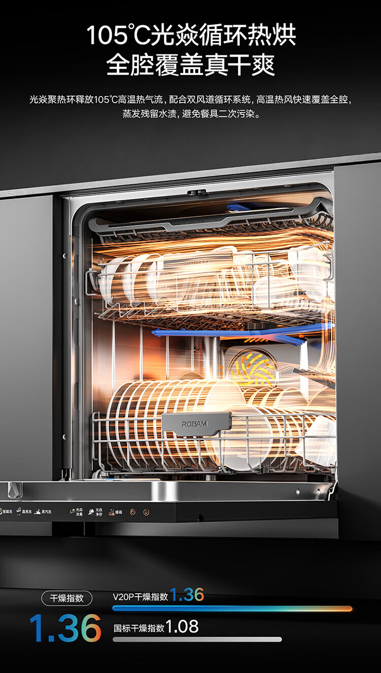 Robam all-in-one washing and disinfecting machine 21 sets of built-in dishwashers V20P Guangyan independent disinfection UV 105 steam washing top control S residue forced discharge 2 lines offline