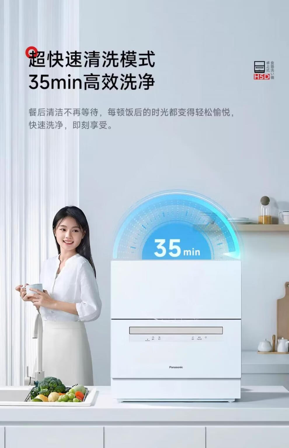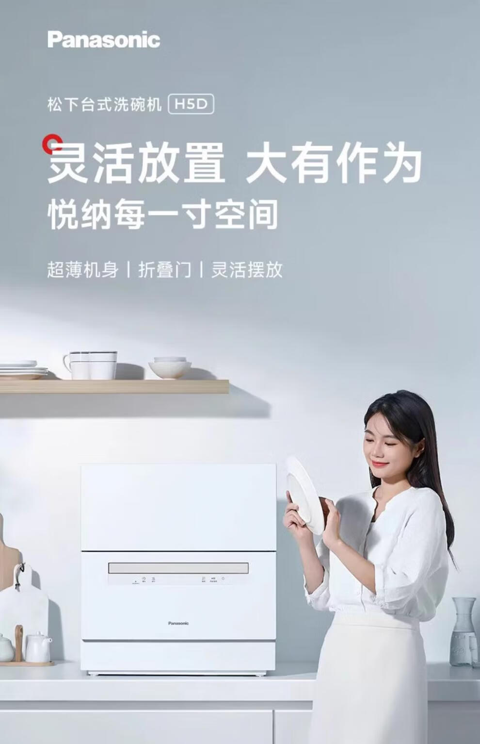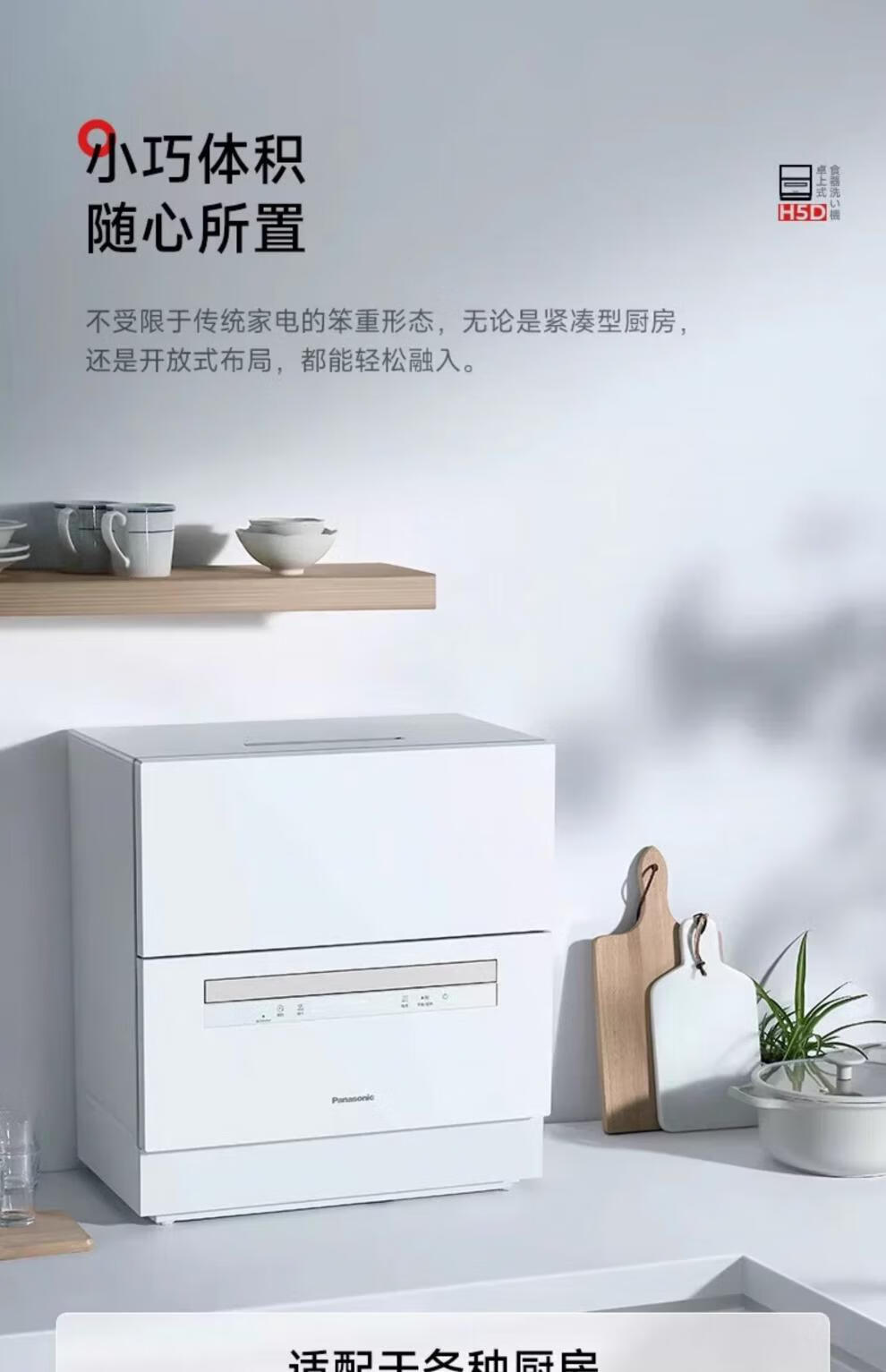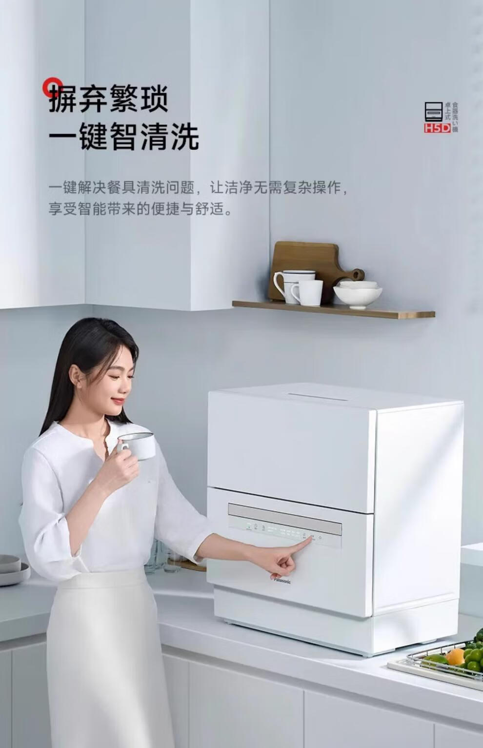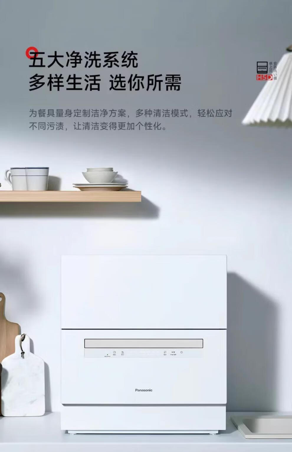 Panasonic Desktop Dishwasher Small Household 5 Sets Free of Installation Intelligent Cleaning 80 High Temperature Sterilization Large Capacity H5D NP-A6SHH5D 6 Sets or Below Gray
