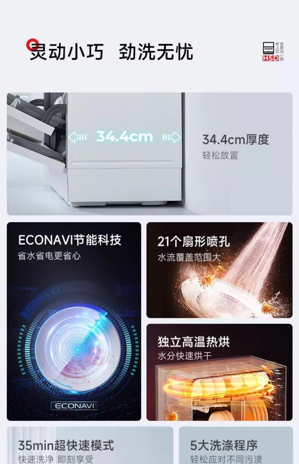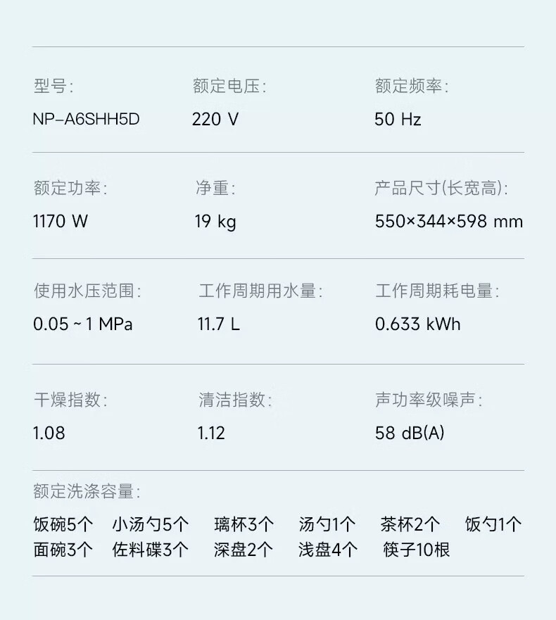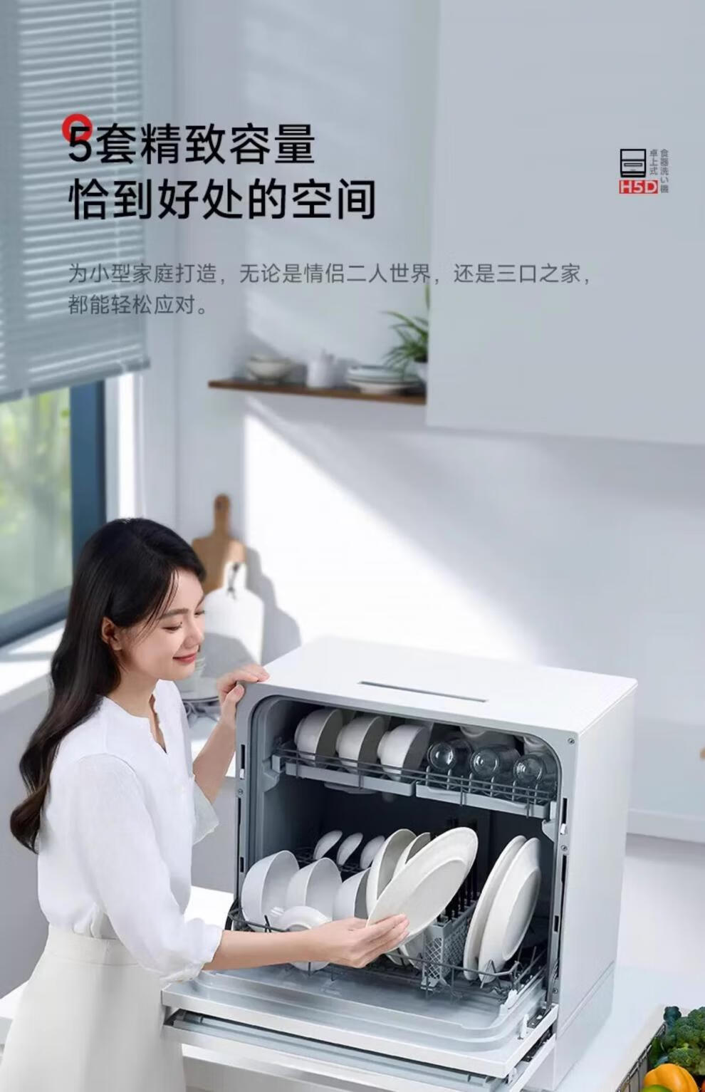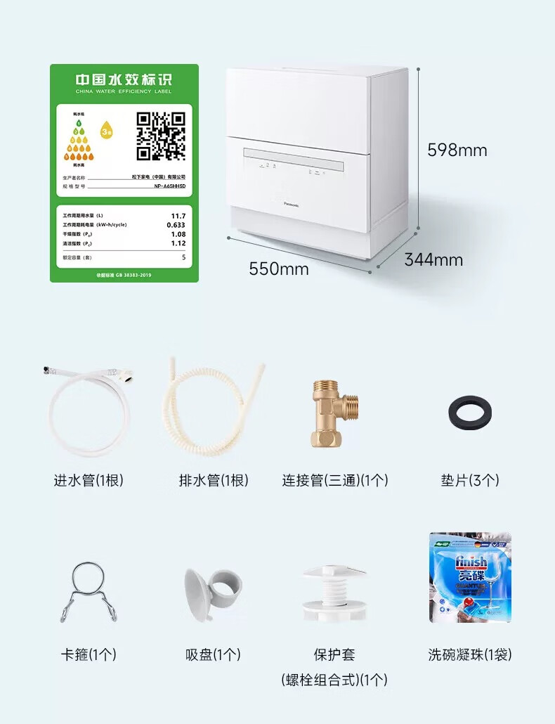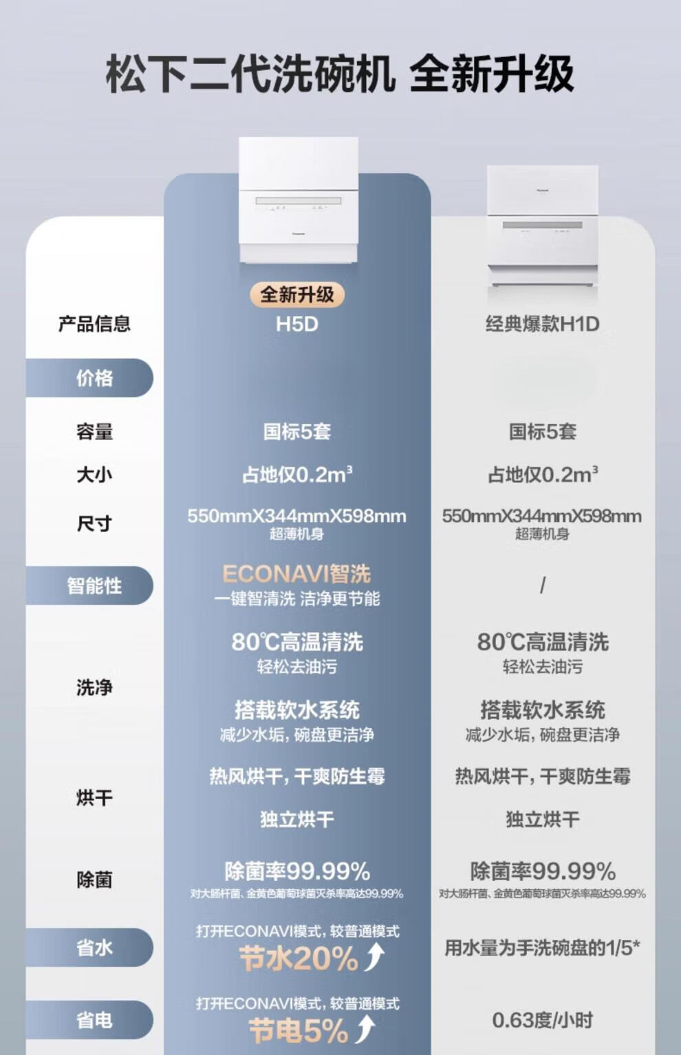 Panasonic Desktop Dishwasher Small Household 5 Sets Free of Installation Intelligent Cleaning 80 High Temperature Sterilization Large Capacity H5D NP-A6SHH5D 6 Sets or Below Gray