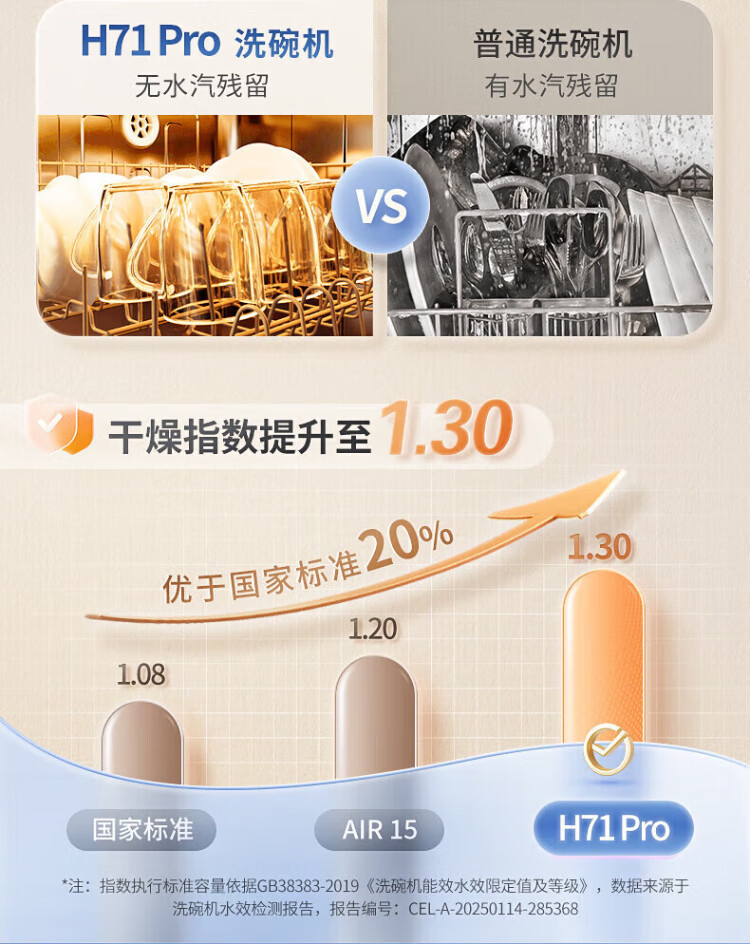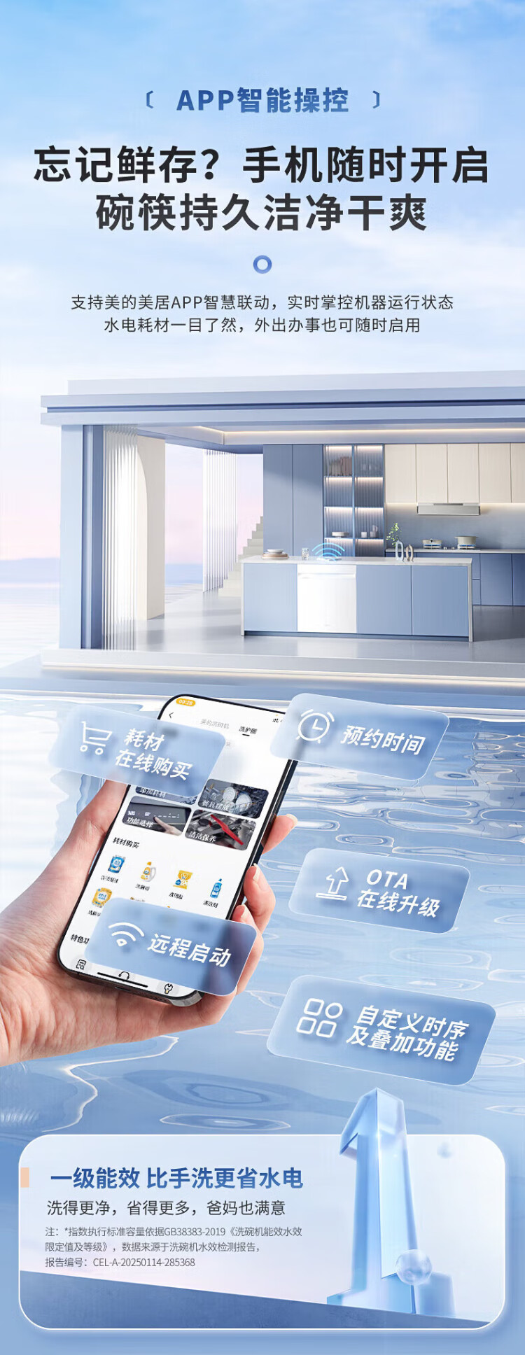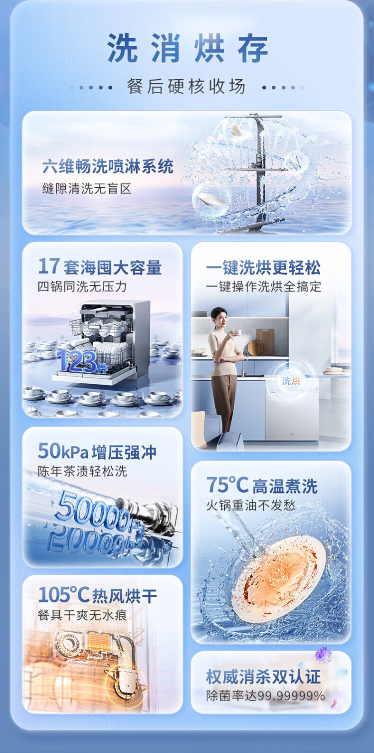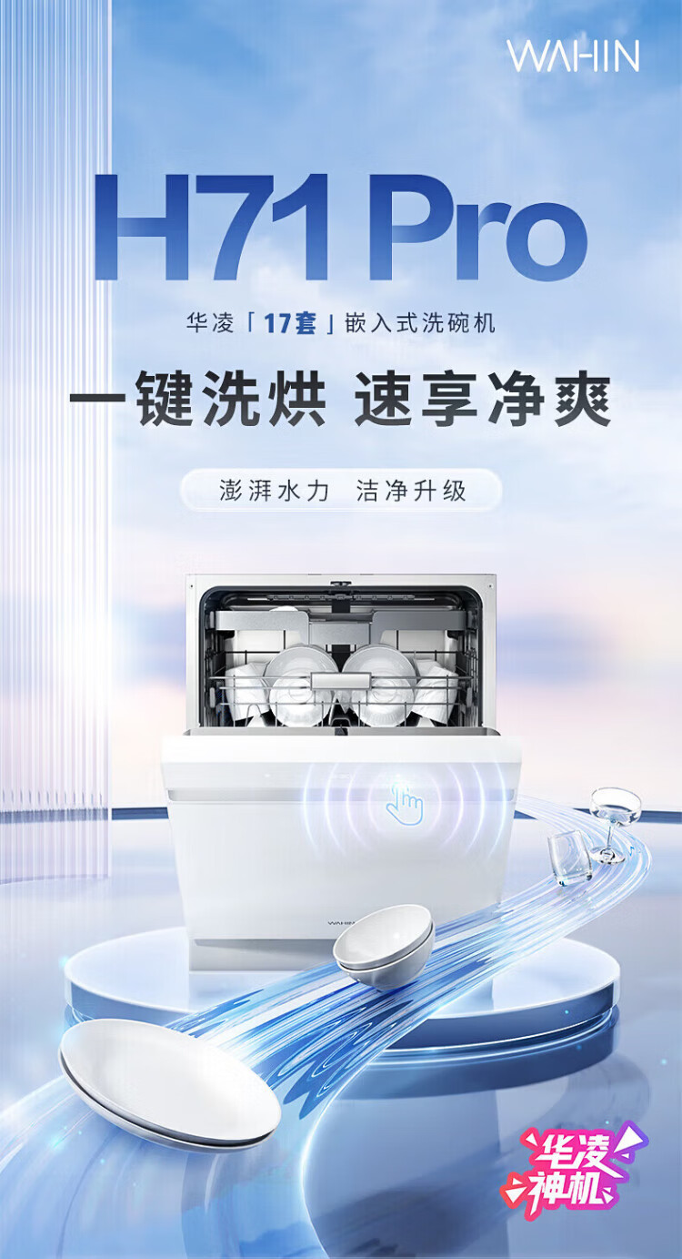 Hualing Produced by Midea Embedded large-capacity seven-star maternal and infant disinfection One-click washing, drying and storage 105 Hot air drying H71pro smart APP interconnection Produced by Midea Three-layer bowl basket One-click washing and drying H71 PRO