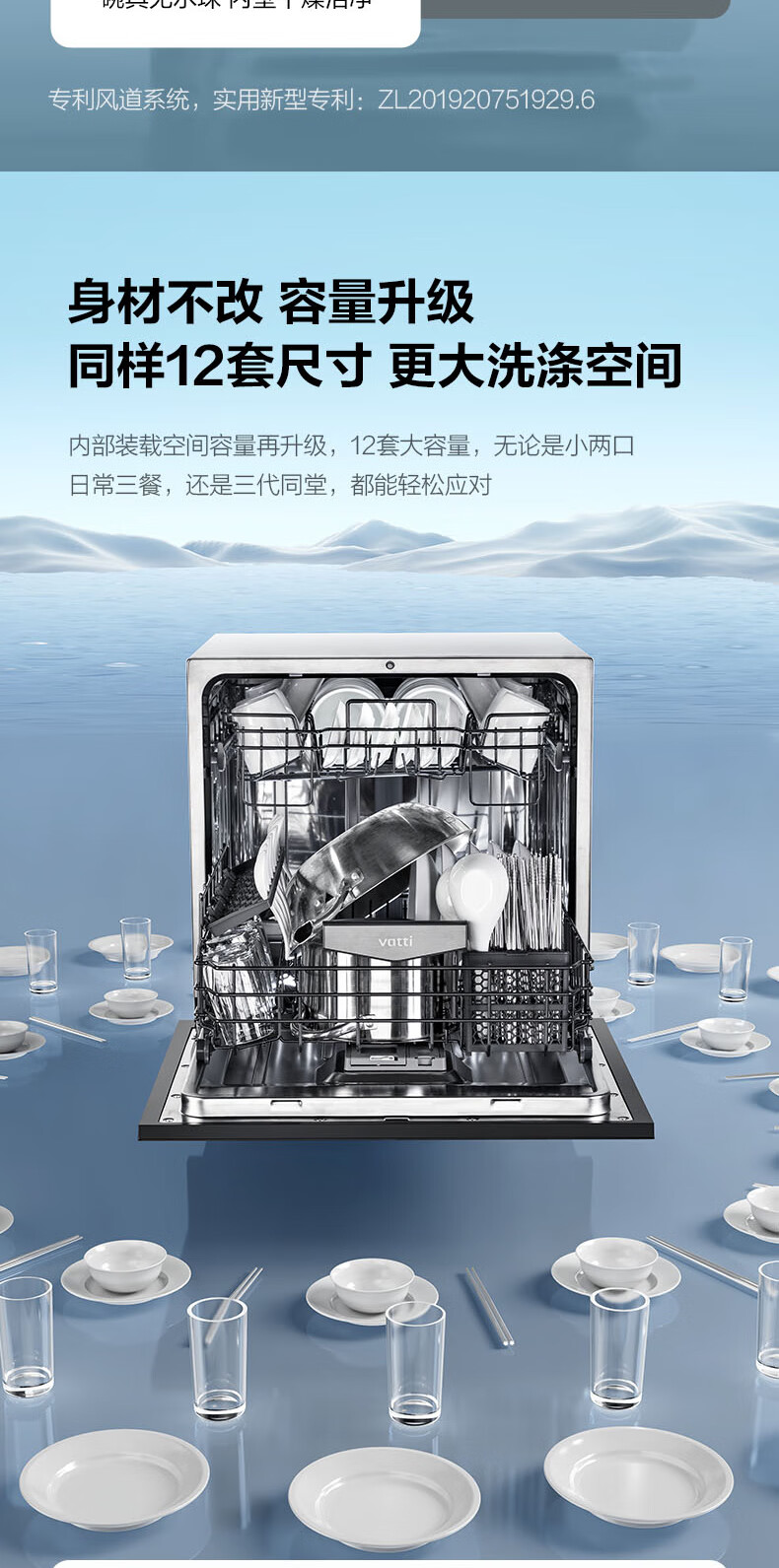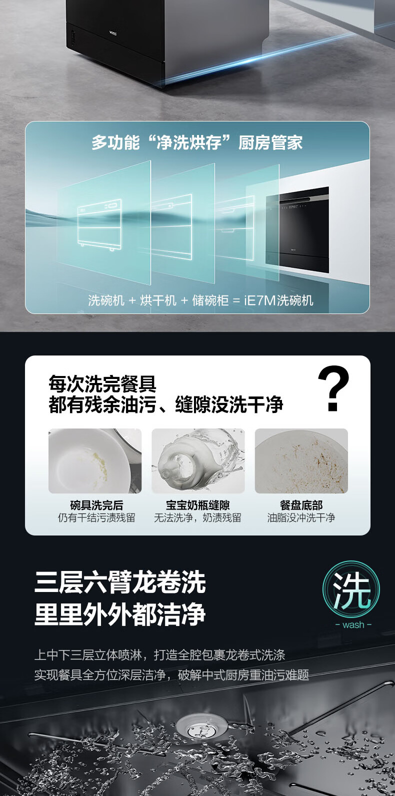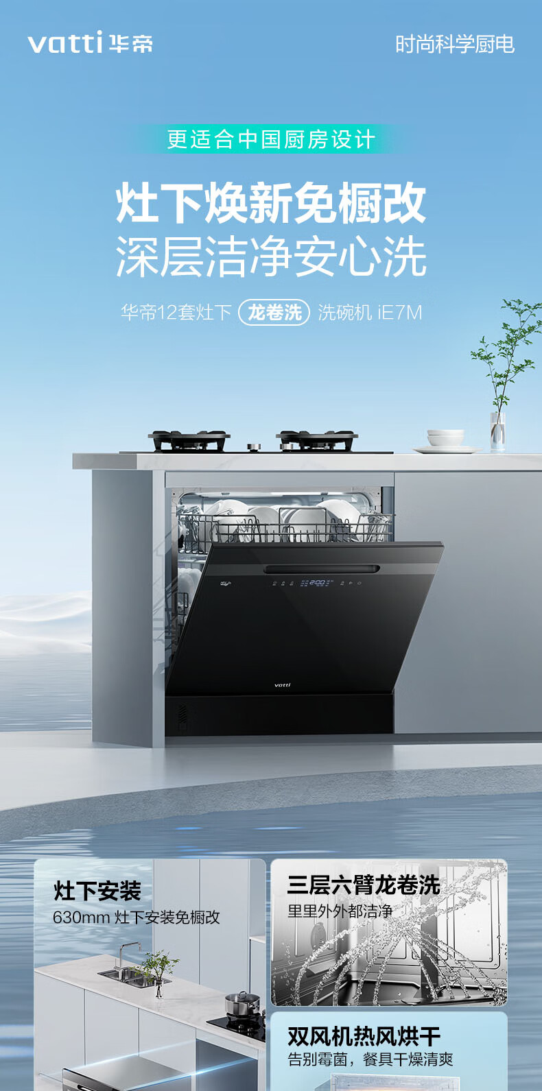 VATTI VATTI built-in dishwasher household 12 sets large-capacity washing, disinfection, drying and storage fully automatic dishwasher all-in-one machine installed under the stove high temperature ultraviolet sterilization home iE7M black