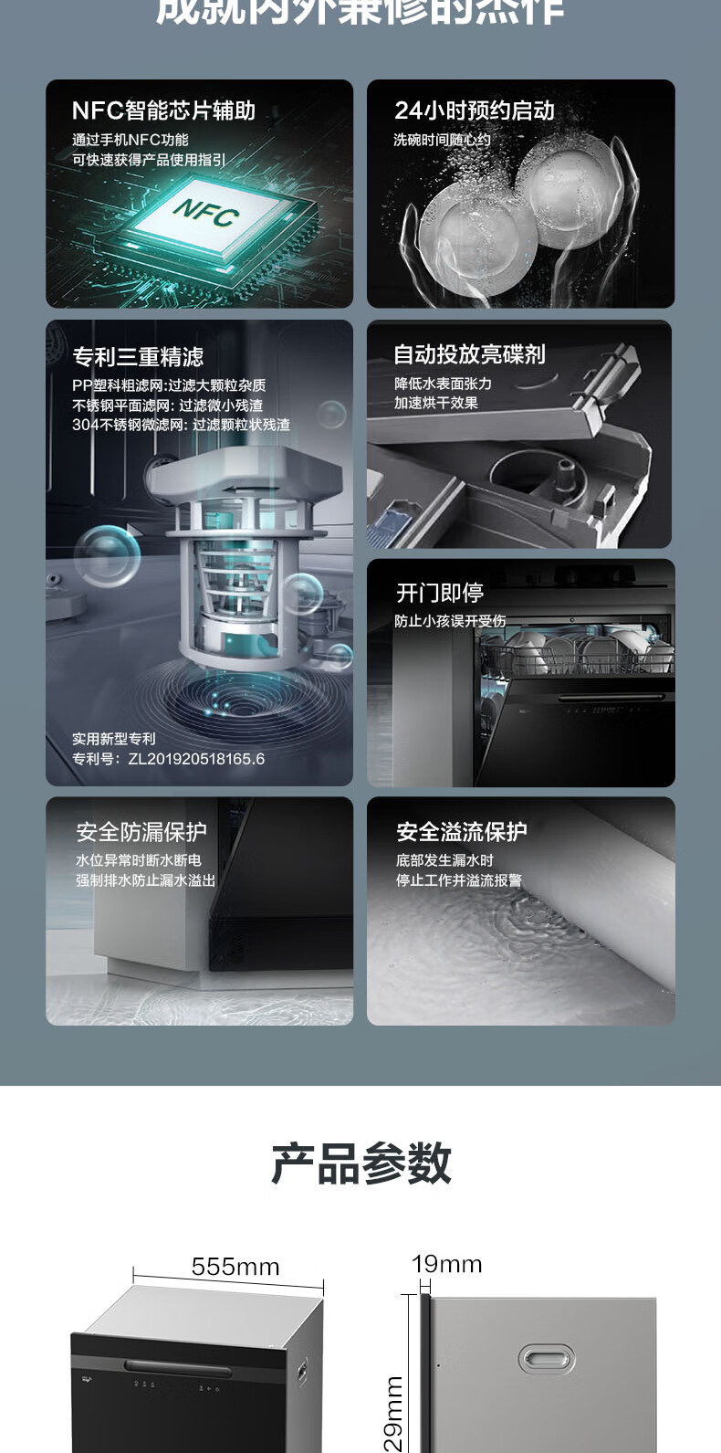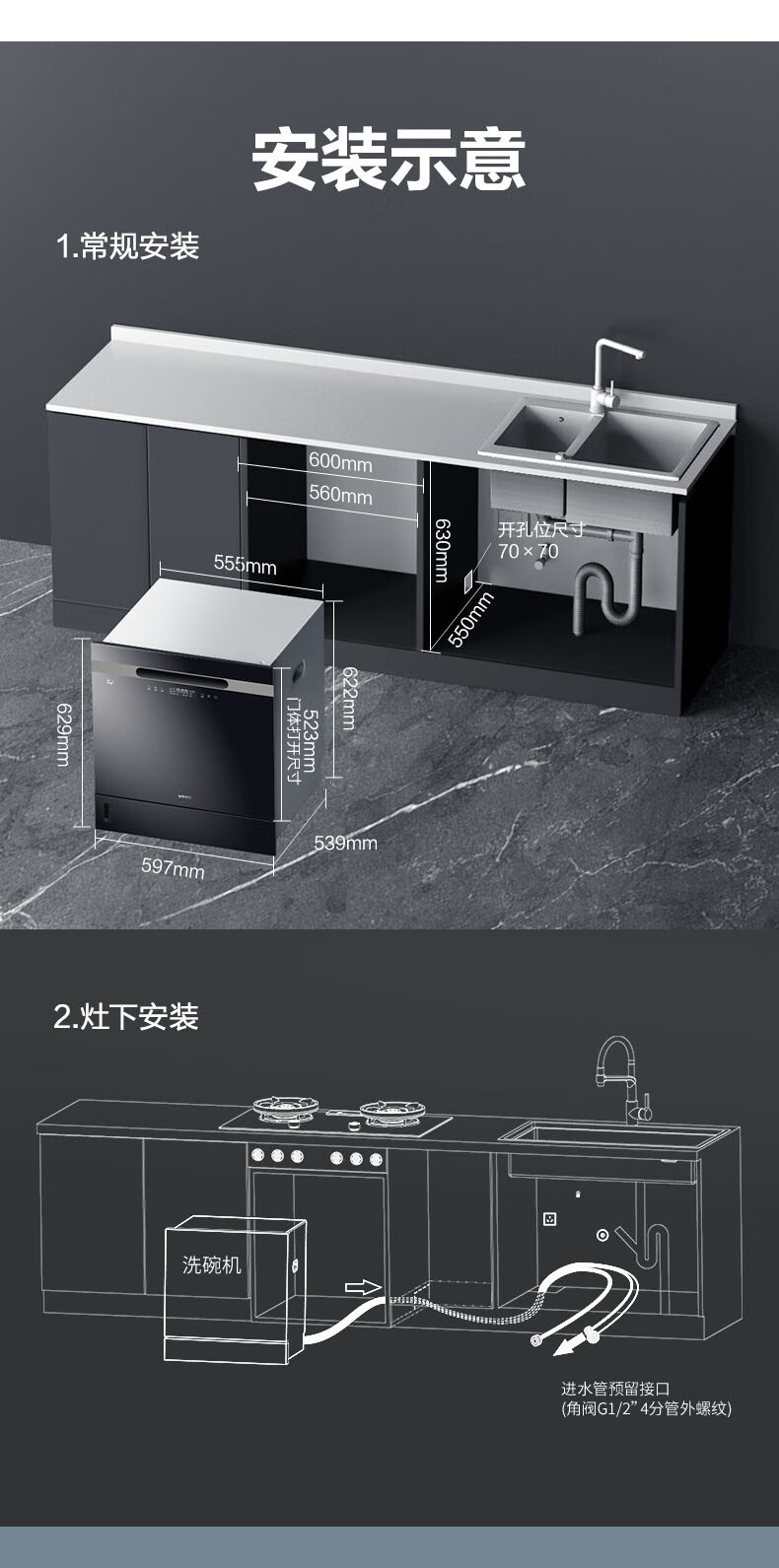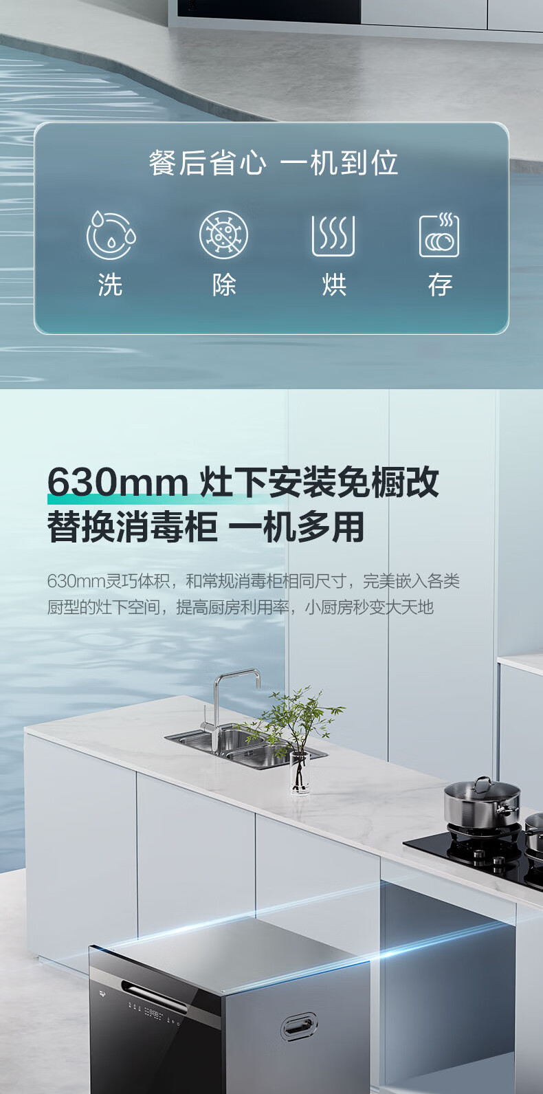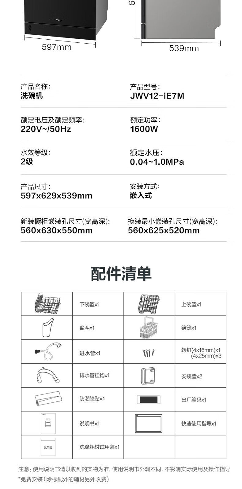 VATTI VATTI built-in dishwasher household 12 sets large-capacity washing, disinfection, drying and storage fully automatic dishwasher all-in-one machine installed under the stove high temperature ultraviolet sterilization home iE7M black