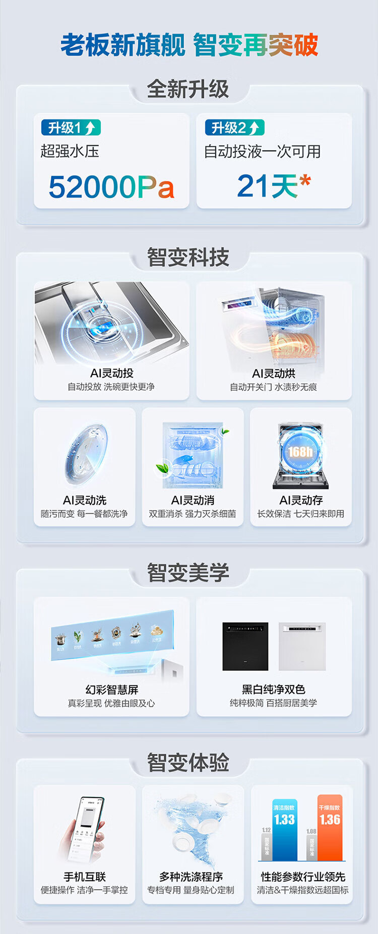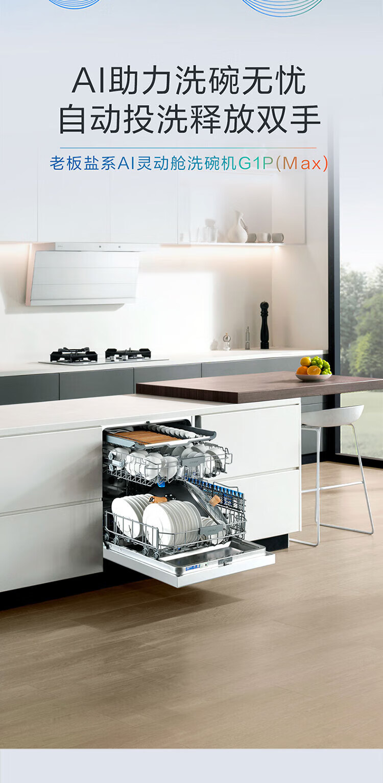 Boss (Robam) 21 days of smart washing Smart cabin salt series G1P white 17 sets + 3 large-capacity built-in dishwasher automatic opening and closing door independent drying G1P G1P black 17 sets AI smart cabin automatic opening and closing door quick drying