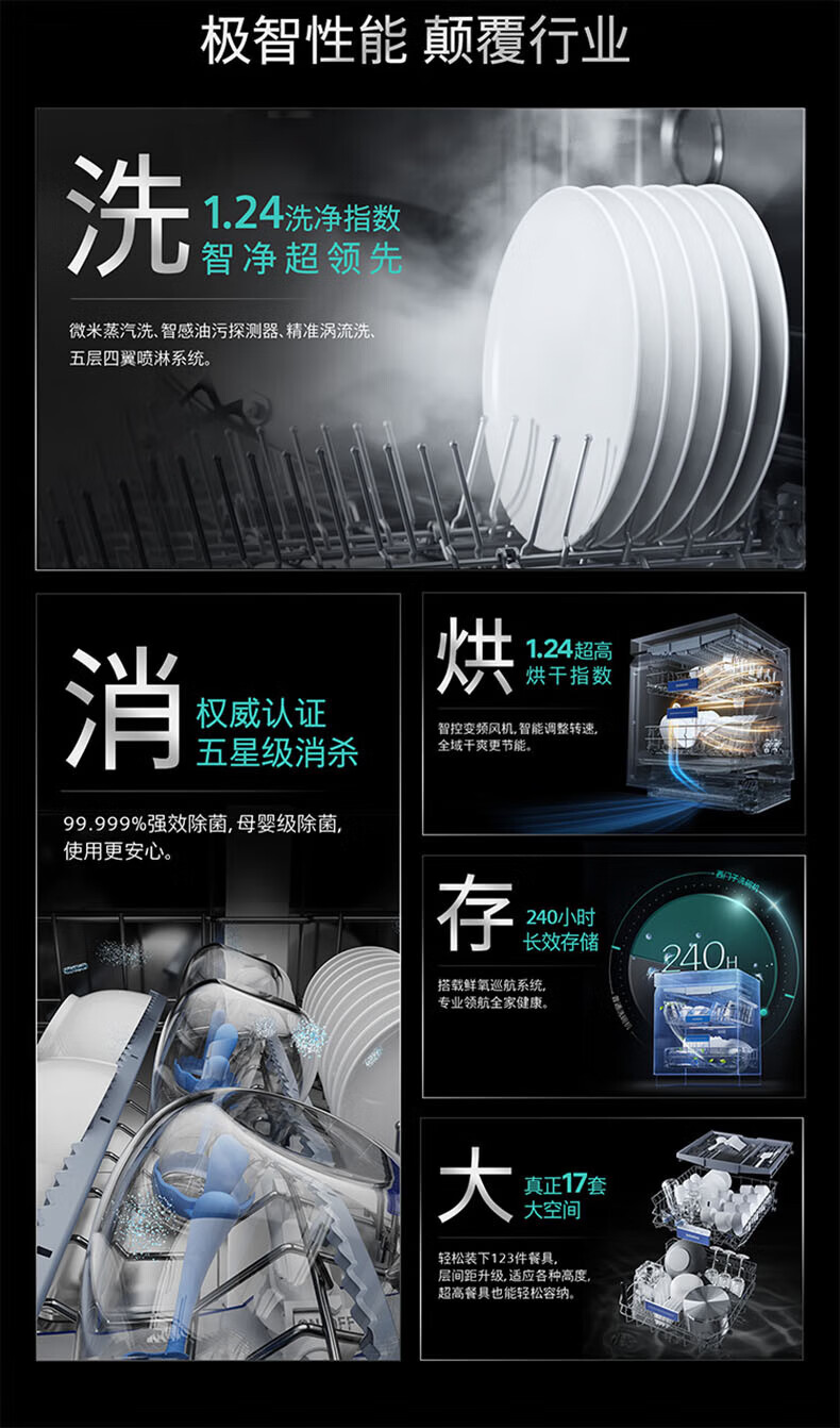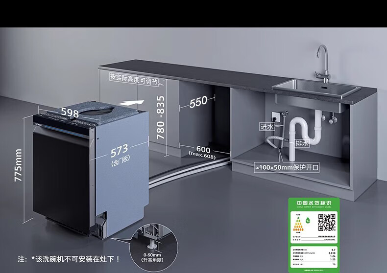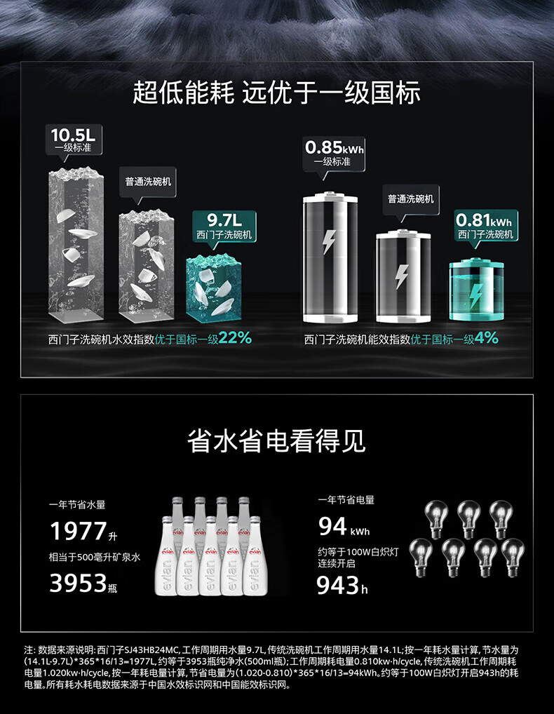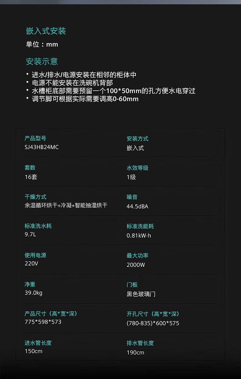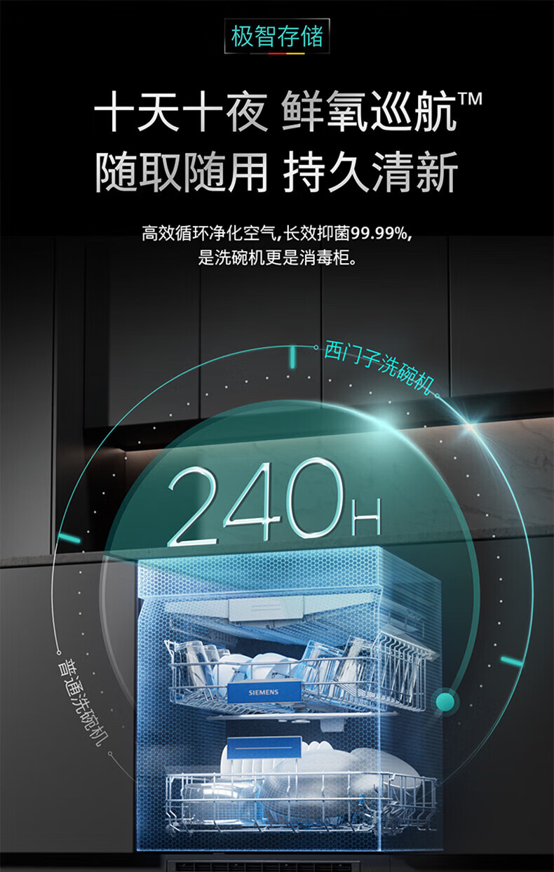 SIEMENS built-in dishwasher 16 sets SJ43HB24MC five-star disinfection, intelligent dehumidification and drying, patented smart oil stain built-in SJ43HB24MC-black glass door panel