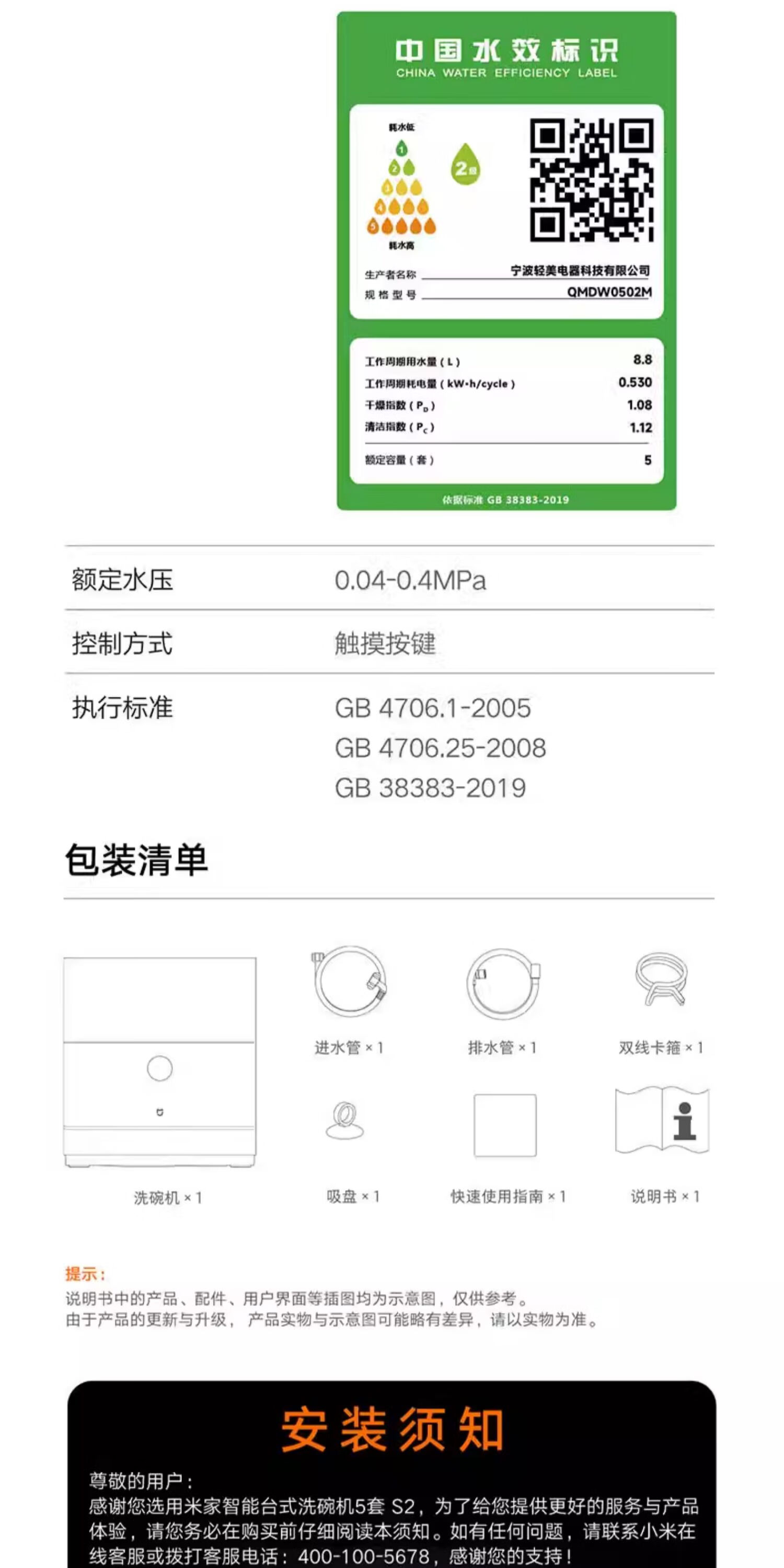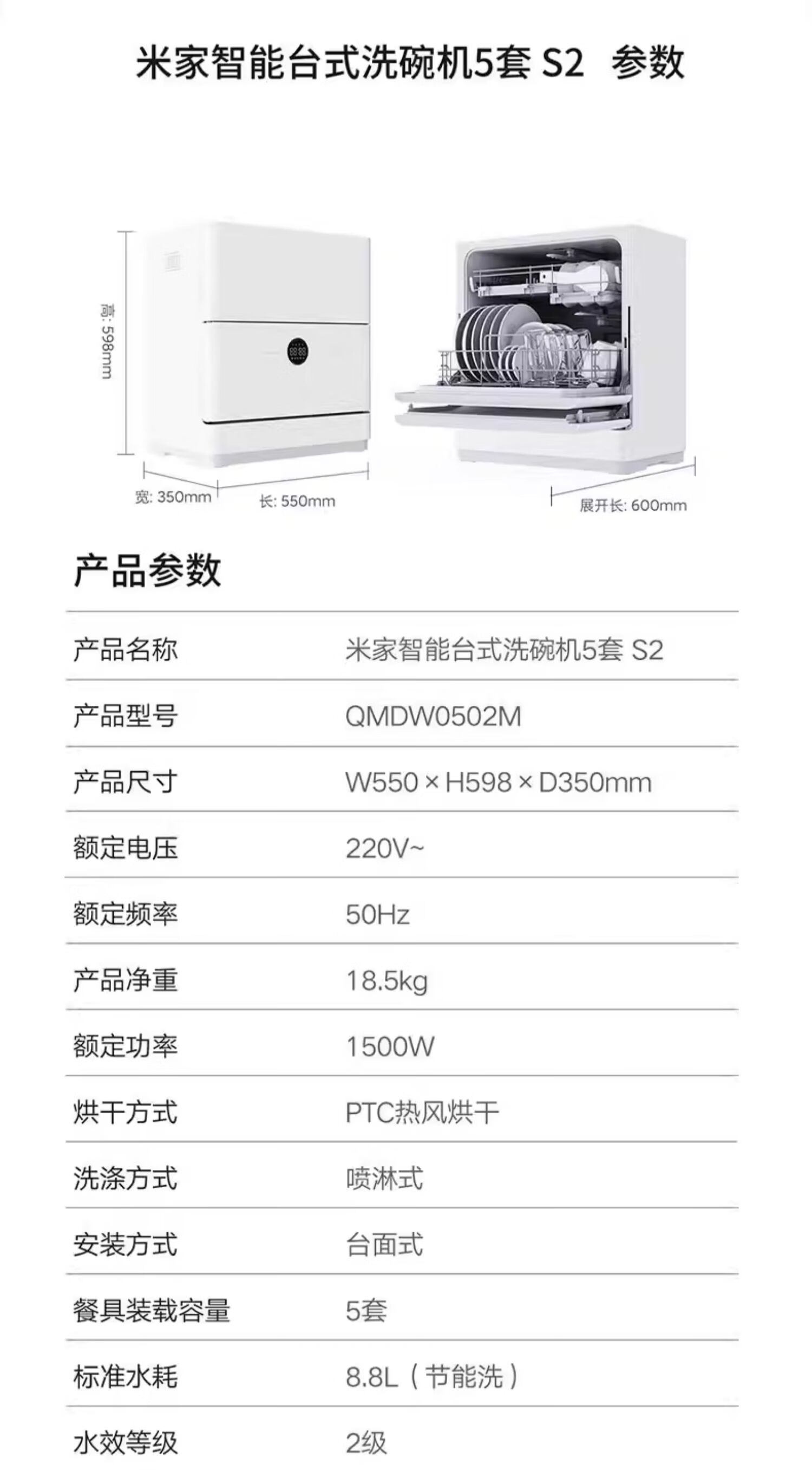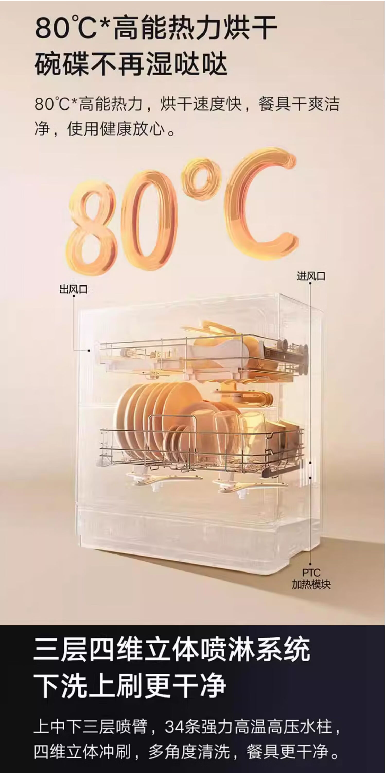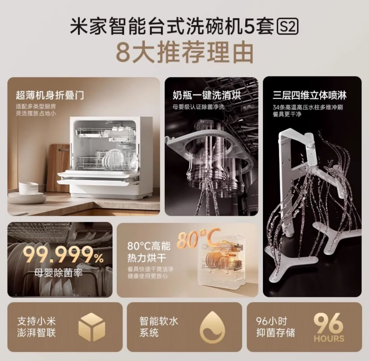 Dishwasher household ultra-thin smart desktop maternal and infant grade fully automatic disinfection all-in-one small 5 sets S2 embedded Mijia dishwasher 5 sets S2