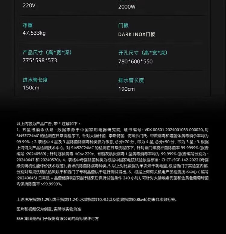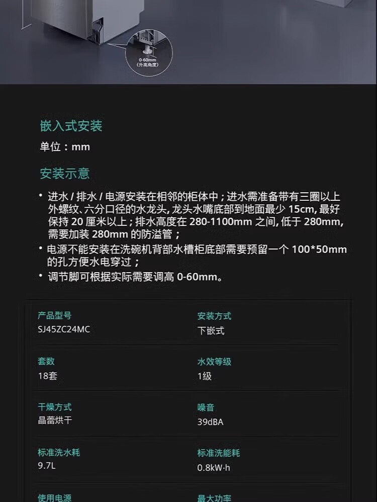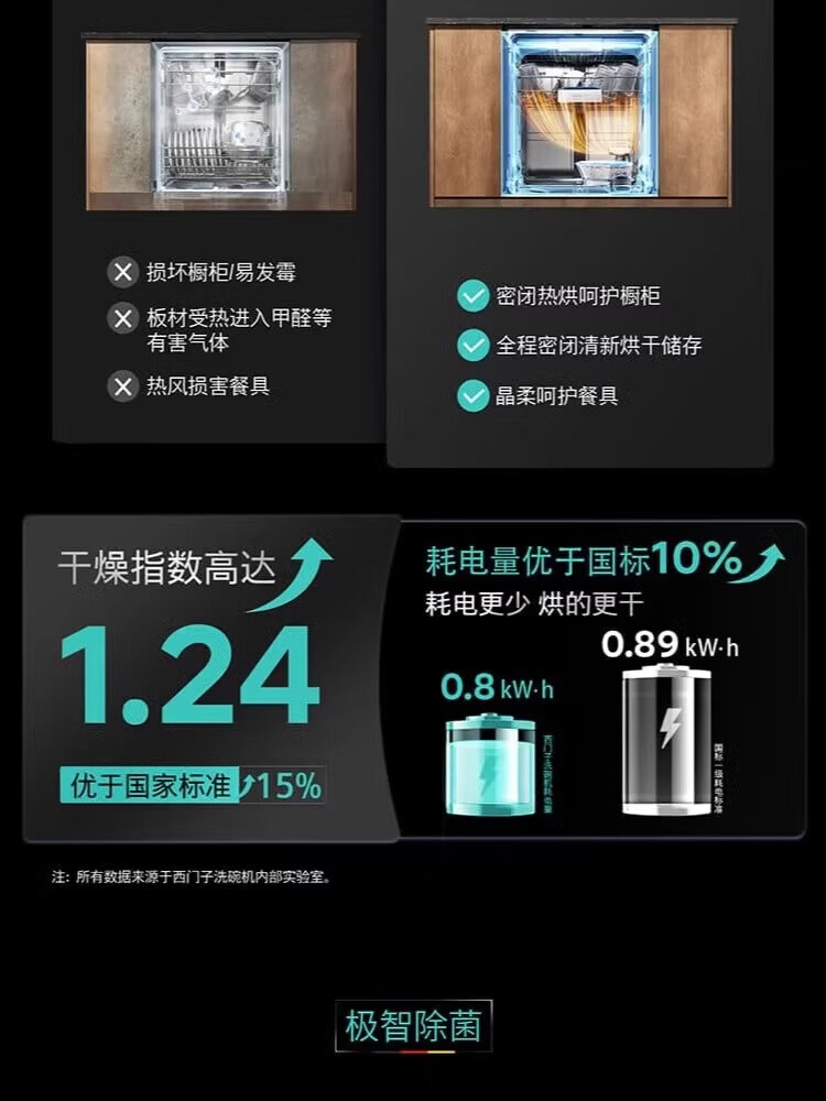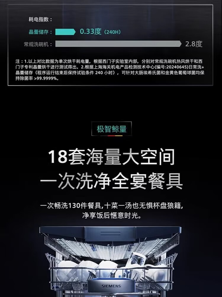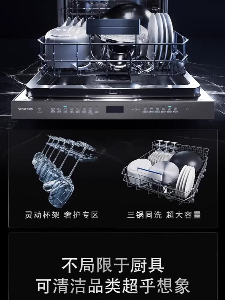 Siemens new product 18 sets of crystal bud drying household fully automatic embedded dishwasher disinfection SJ45ZC24MC SJ45ZC24MC 18 sets Yaogang Black