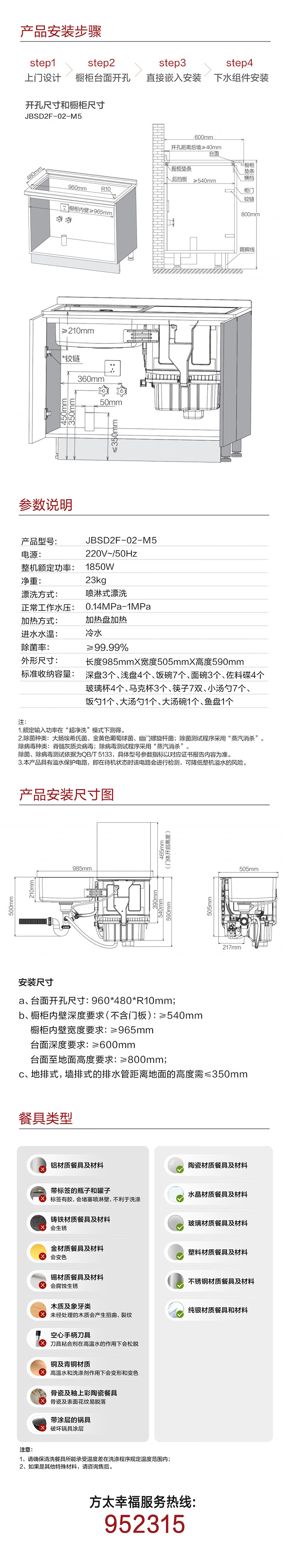 FOTILE new generation dishwasher Sink dishwasher 02-M5 Flush installation 7 sets of capacity Intelligent multiple cleaning modes High-energy bubble smart washing Sink dishwasher 02-M5L (dishwasher on the left)