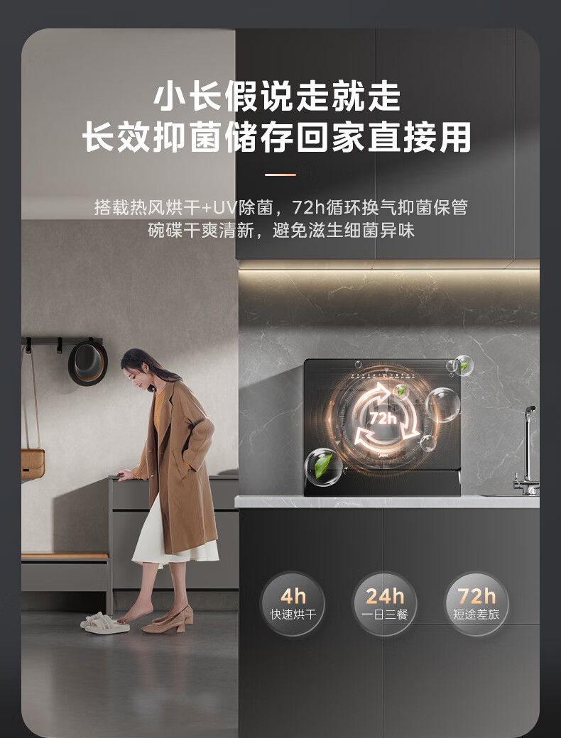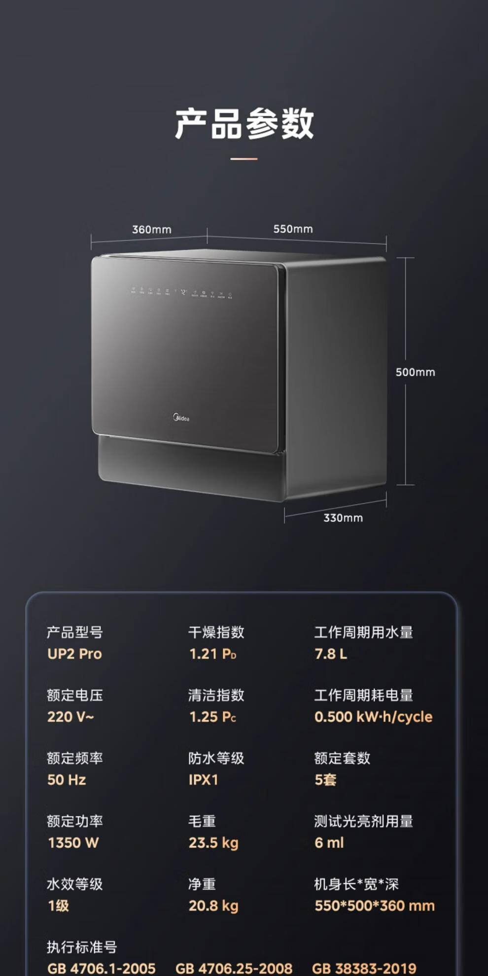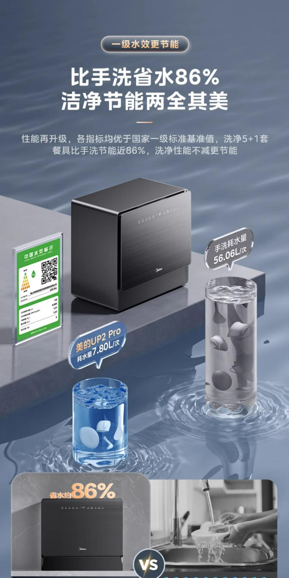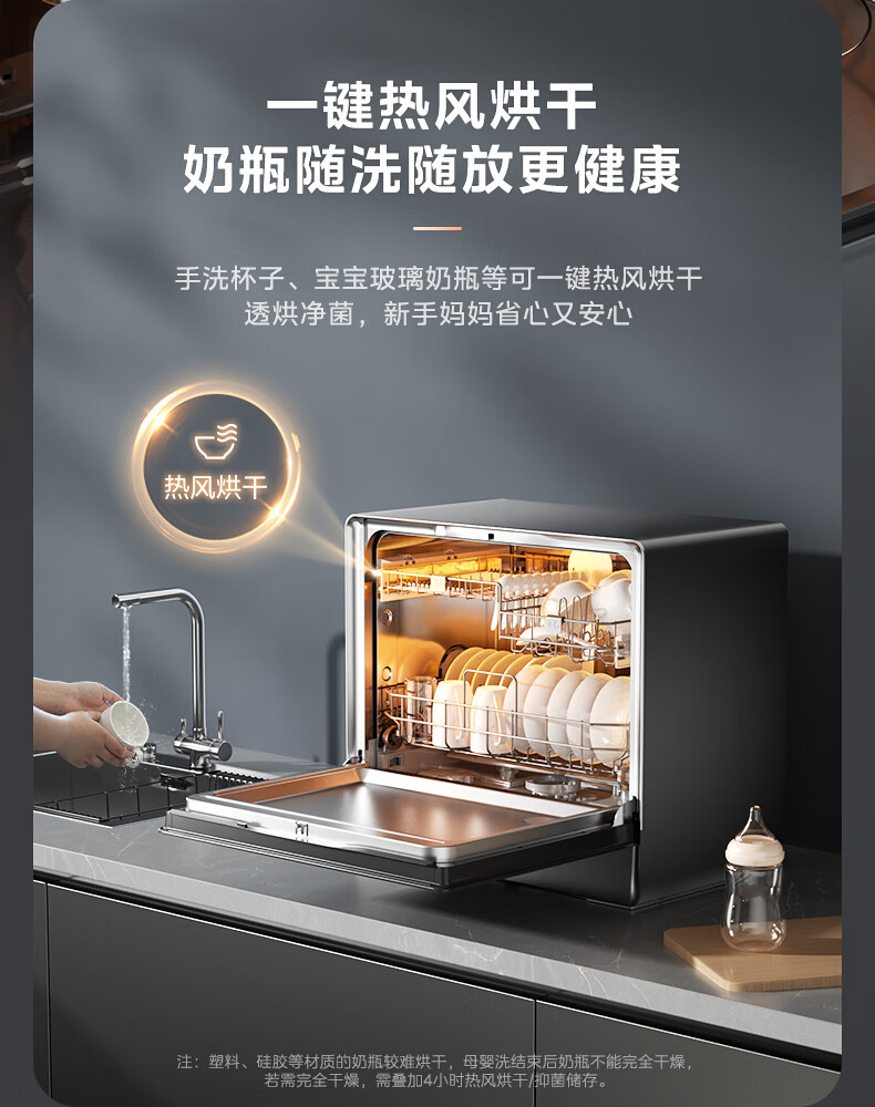 Hualingmei Dishwasher Household 5+1 Set Fully Automatic Desktop Disinfection Small UP2 Pro 5 Sets Obsidian Black