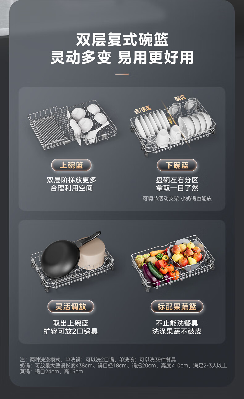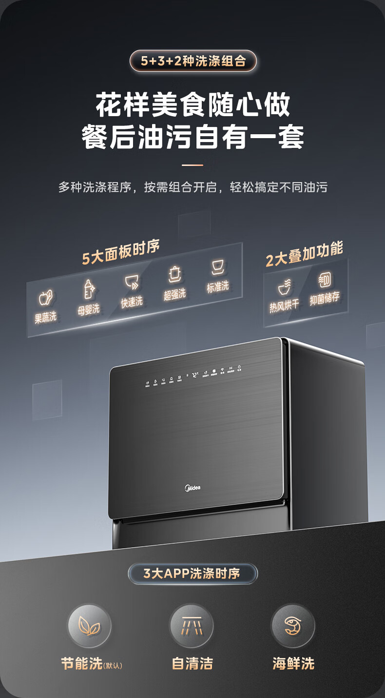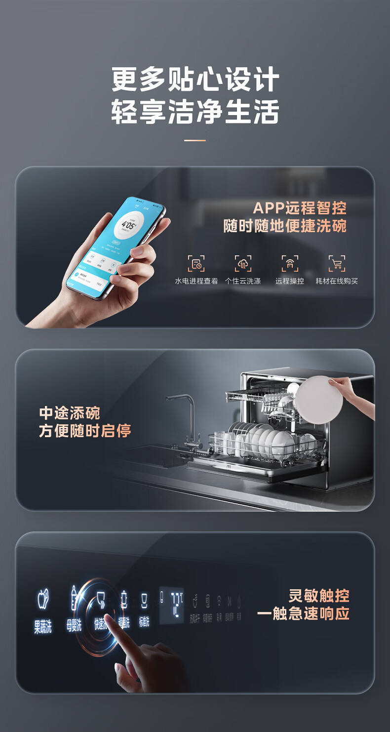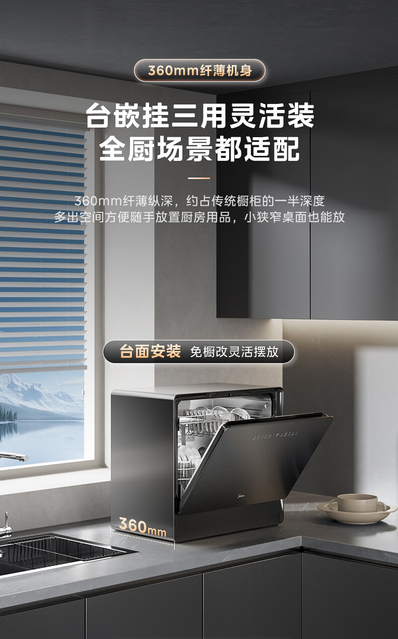 Hualingmei Dishwasher Household 5+1 Set Fully Automatic Desktop Disinfection Small UP2 Pro 5 Sets Obsidian Black