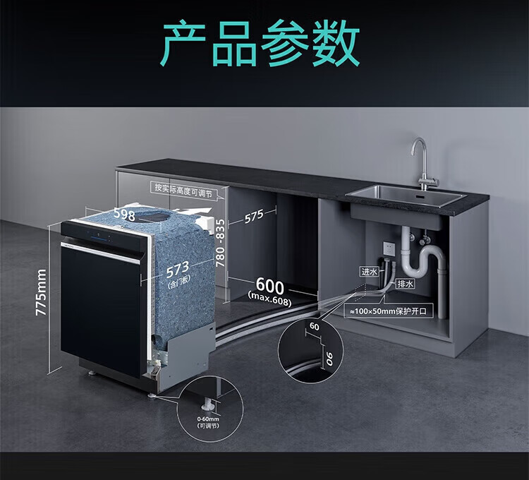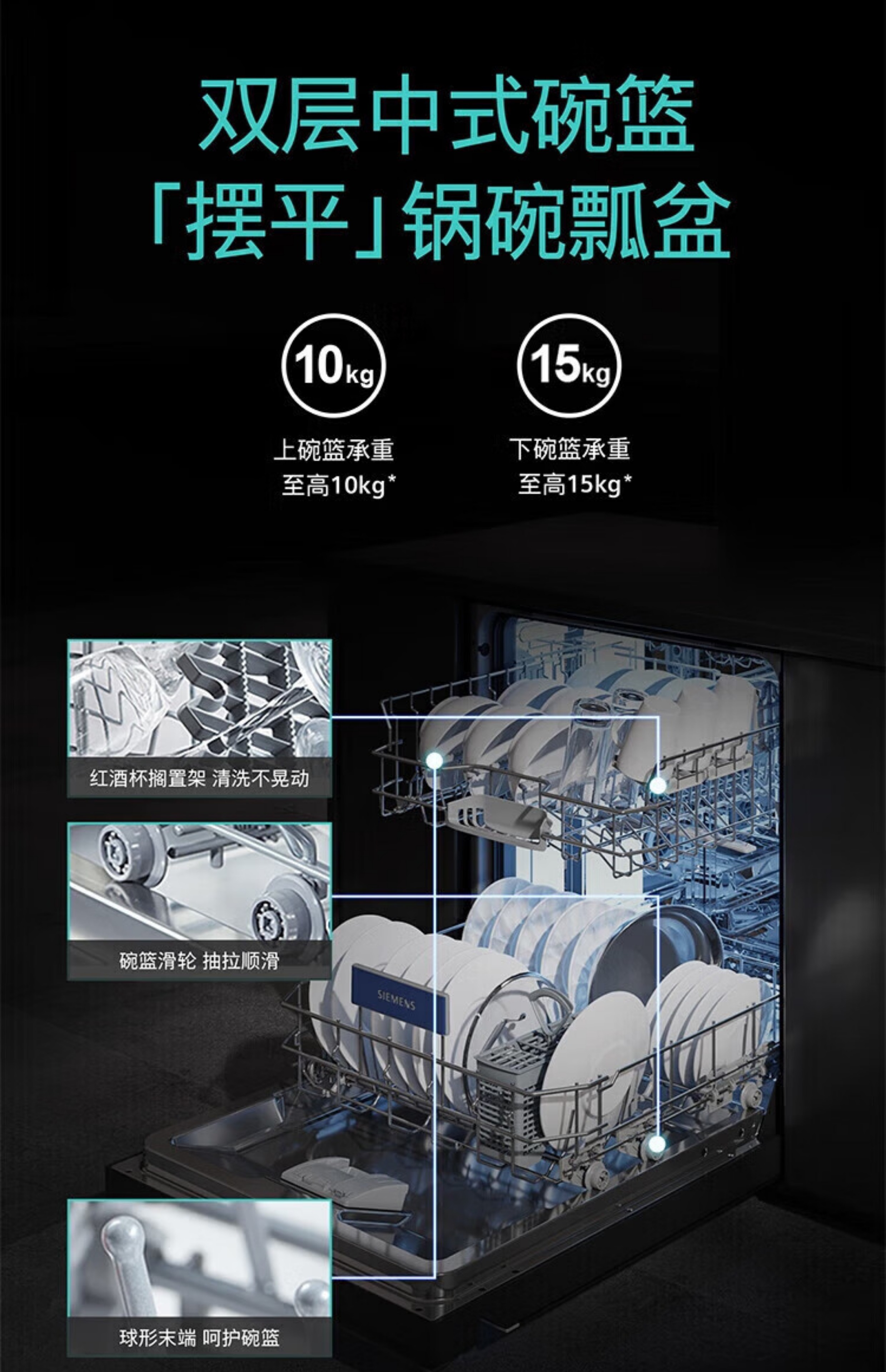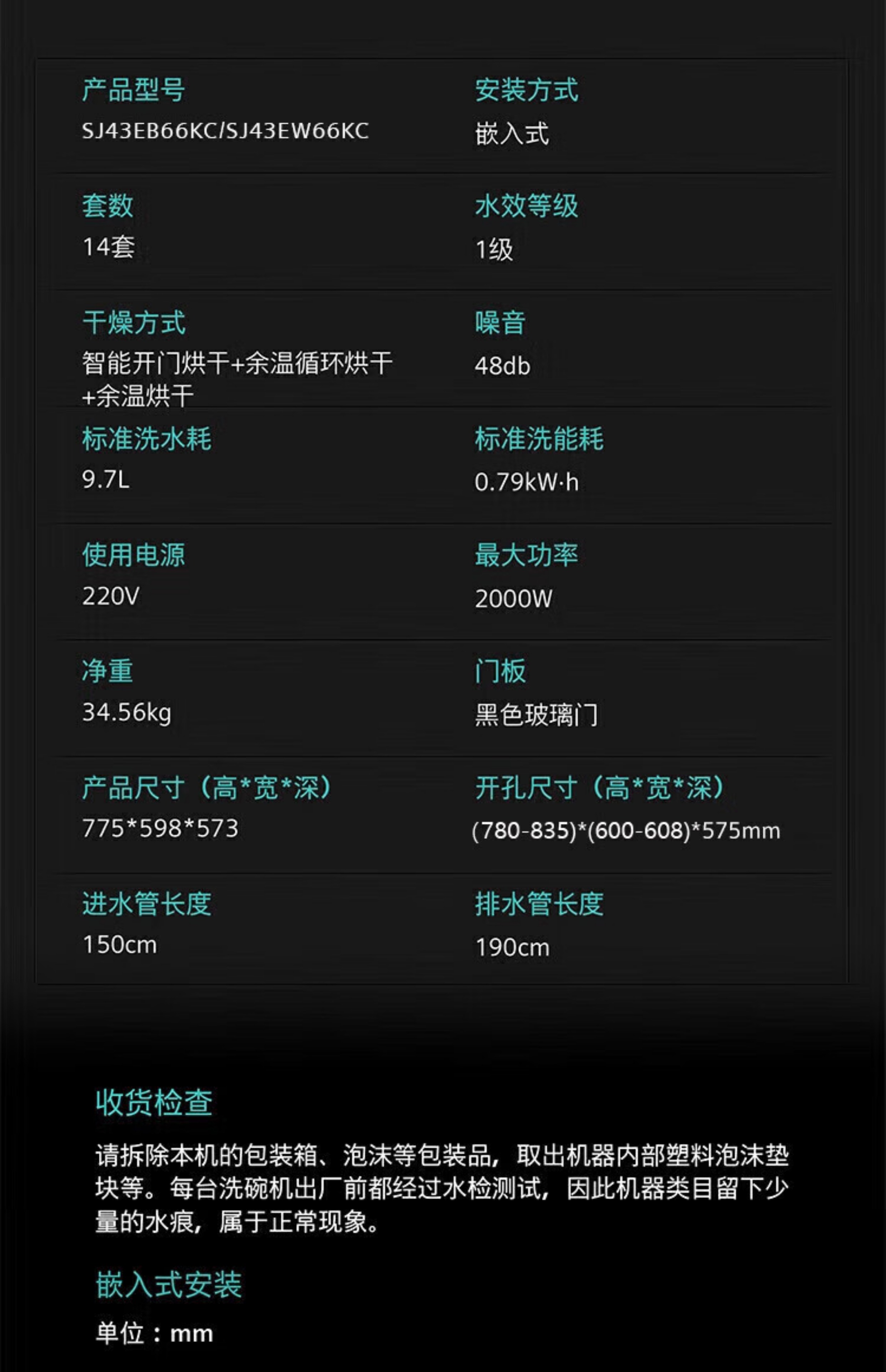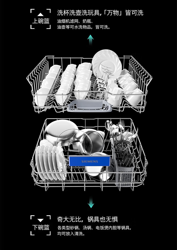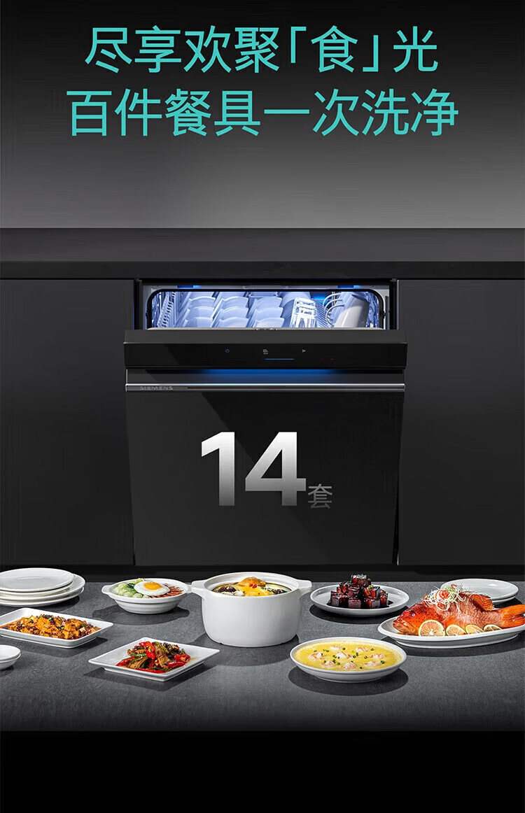 SIEMENS dishwasher embedded 14 sets large capacity household sterilization and disinfection SJ43EB66KC 14 sets black