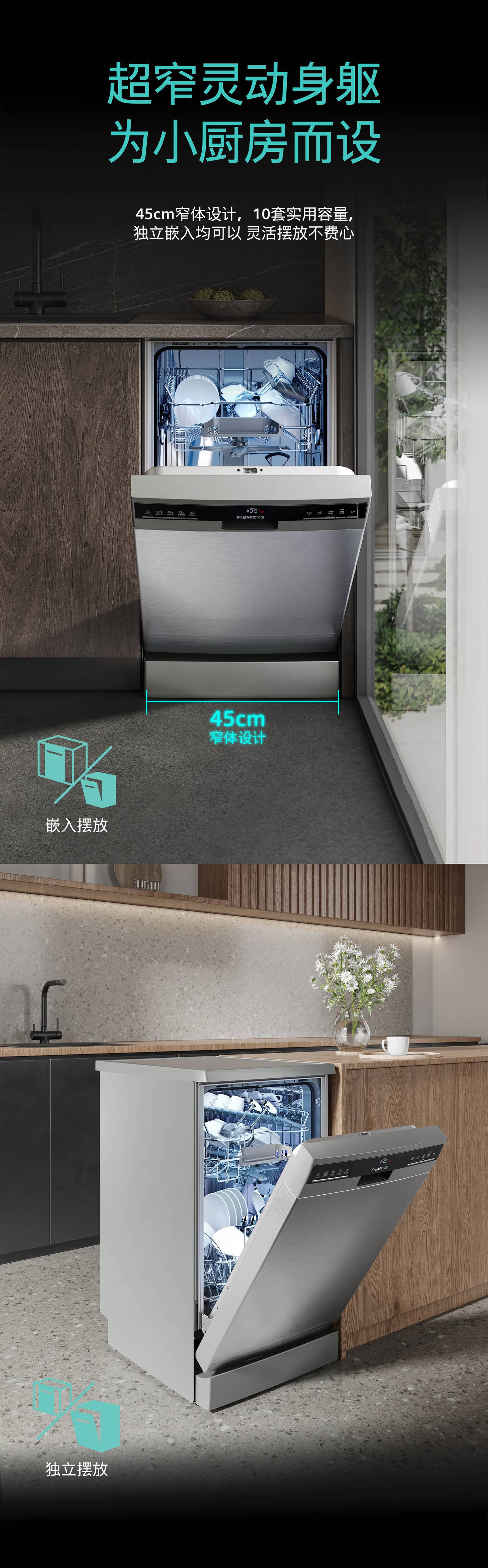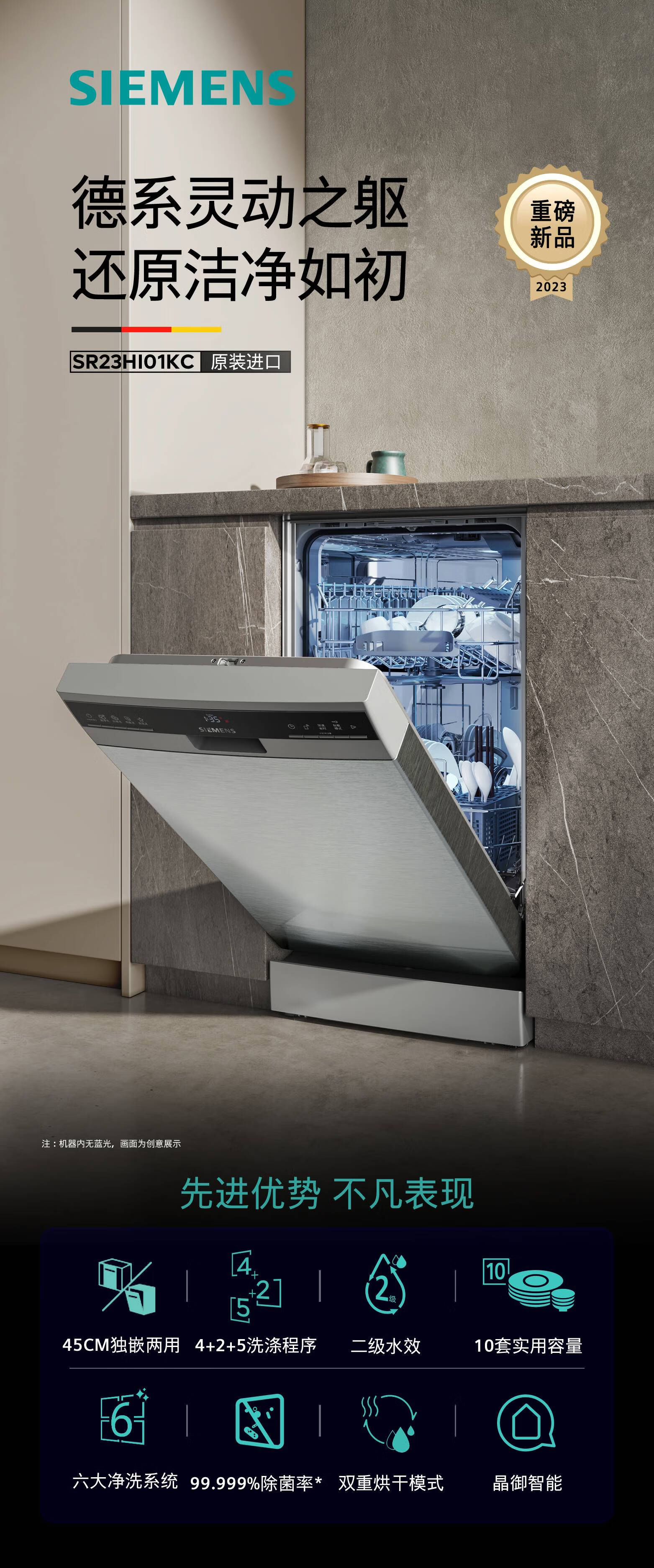 Siemens 10 sets of ultra-narrow independent embedded dishwashers European household fully automatic all-in-one small 23HI01 SR23HI01KC 10 sets silver