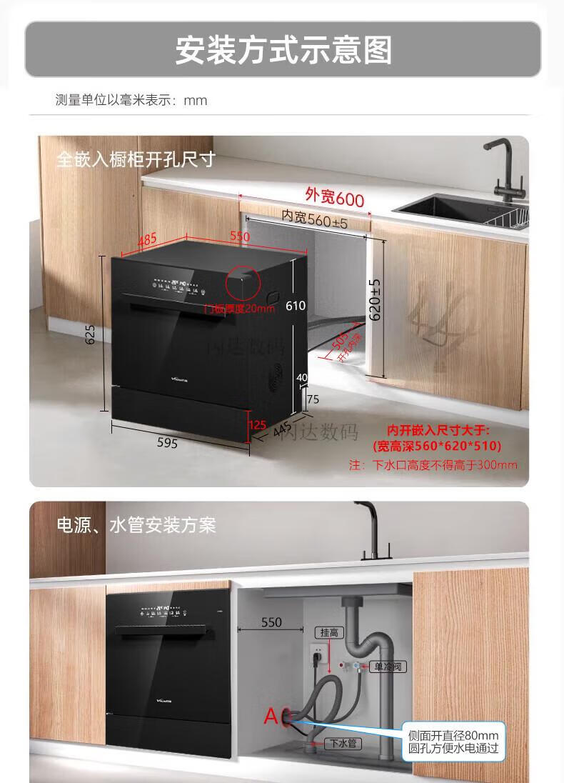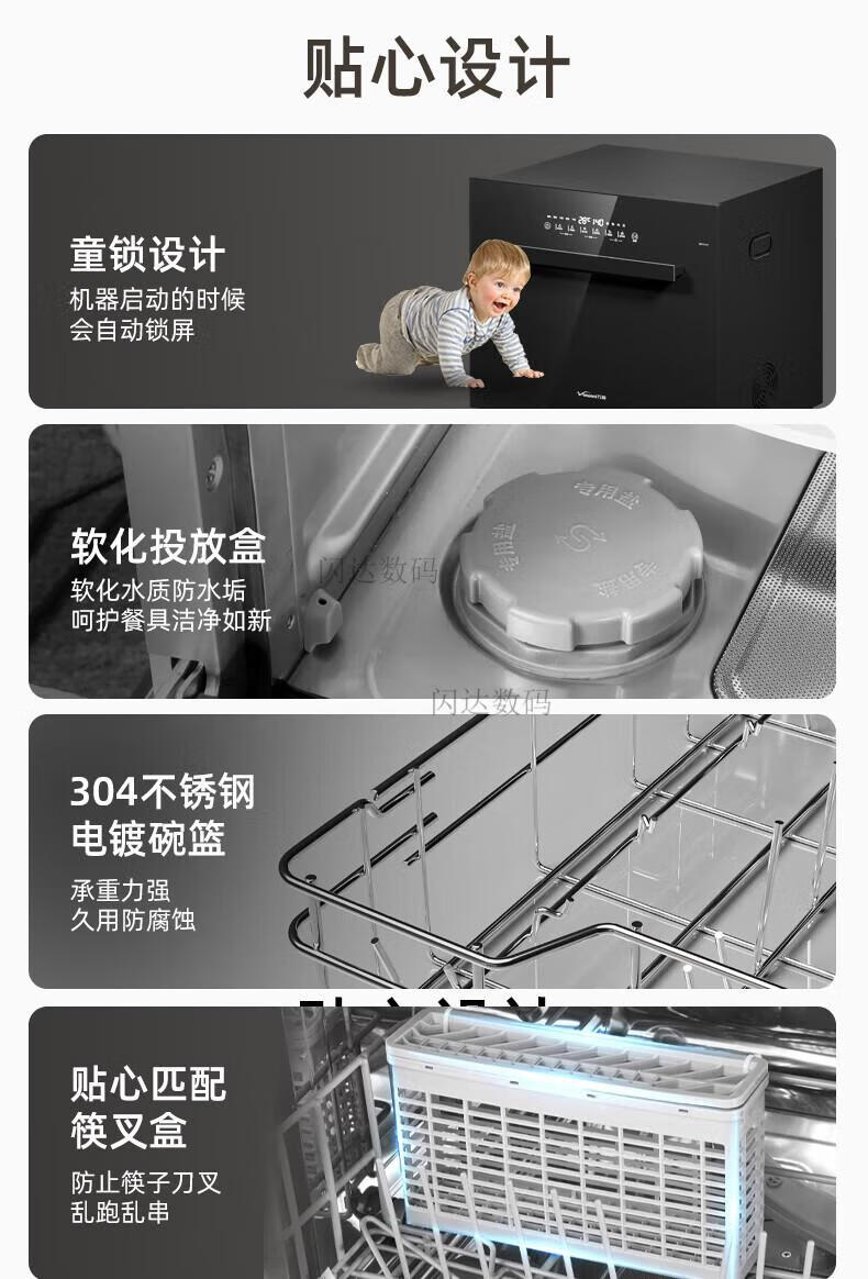 Vanward QW13-H1 fully automatic household dishwasher 13 sets built-in washing, drying and disinfection QW13-H3 13 sets black model
