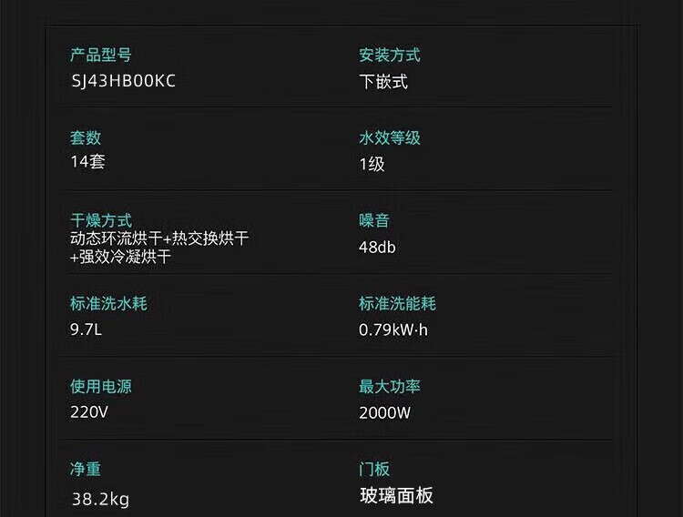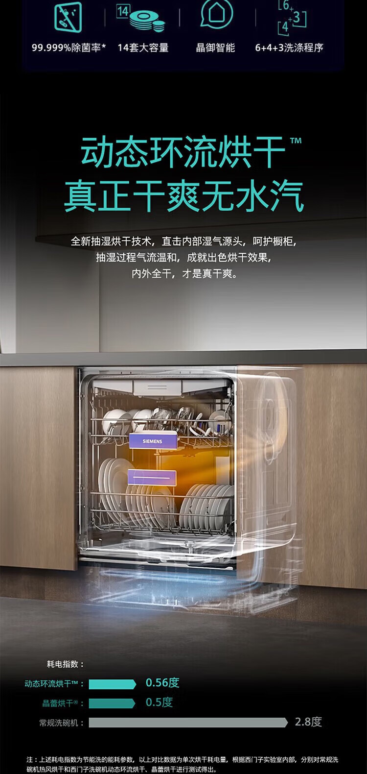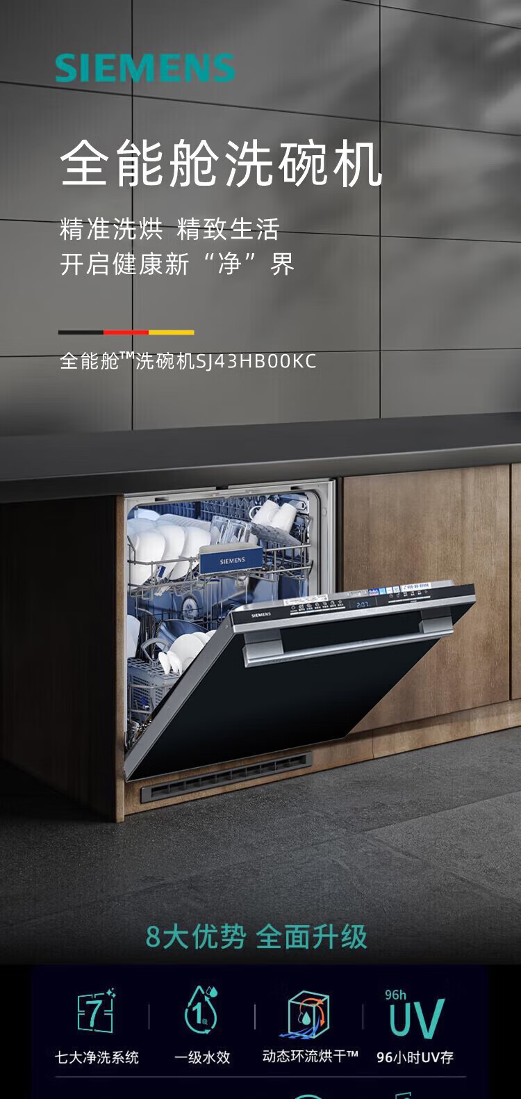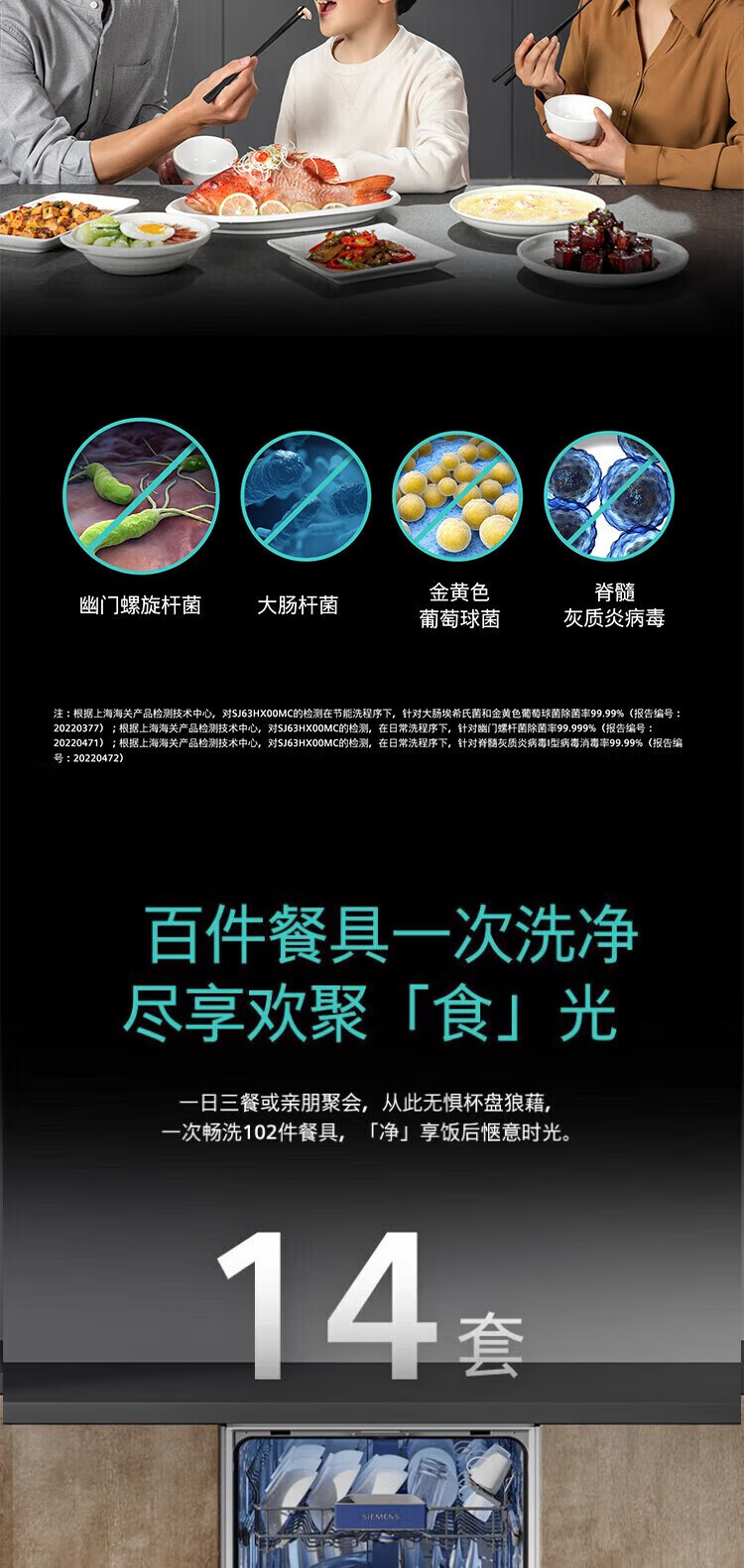 SJ43HB00KC large capacity 14 sets of embedded smart dishwasher dynamic circulation drying sterilization cabin embedded dynamic circulation drying