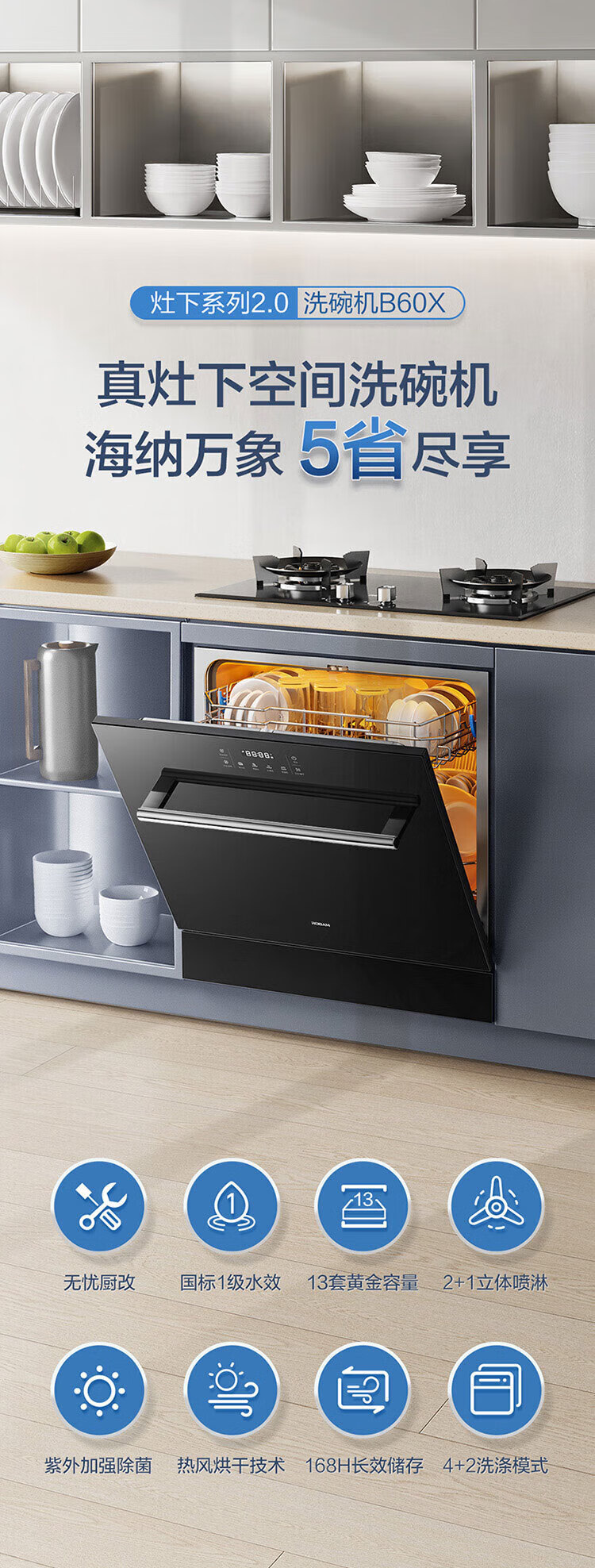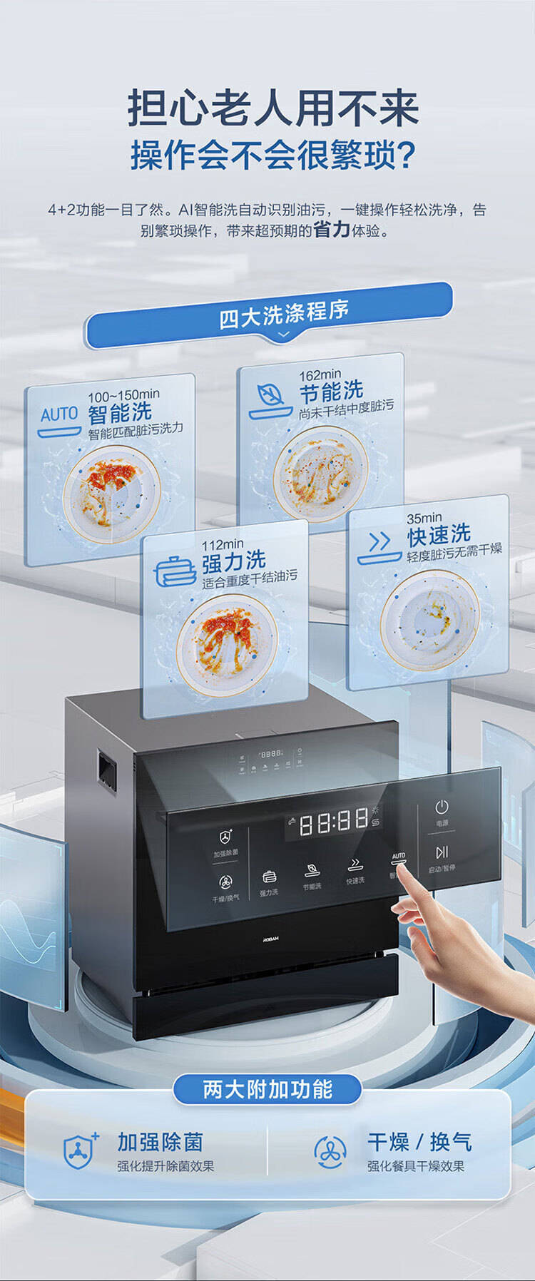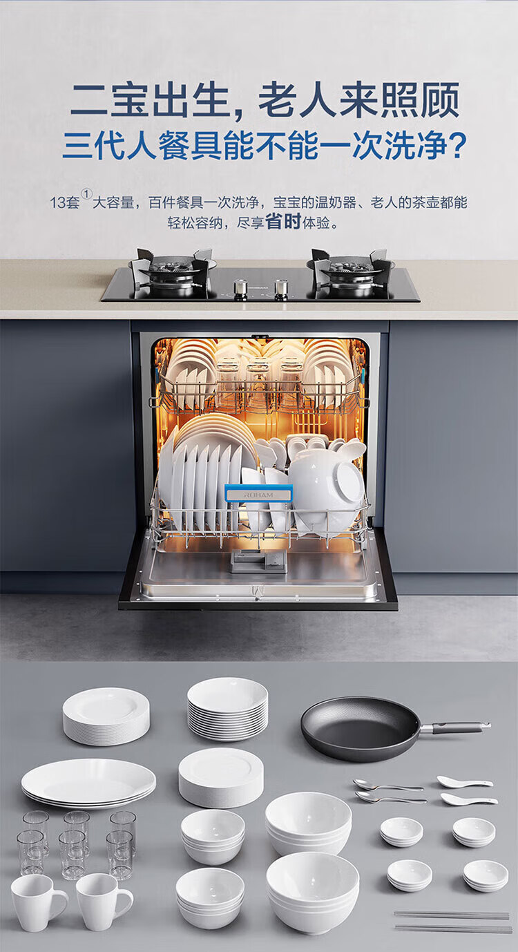 Посудомоечная машина Robam, полностью встраиваемая бытовая посудомоечная машина G1 Сверхбольшая вместимость, 0 дезинфекция от бактерий, универсальная машина, ультрафиолетовая стерилизация, 168H сушка, дезинфекция и хранение горячим воздухом B60D 17 комплектов G1U вулканический черный