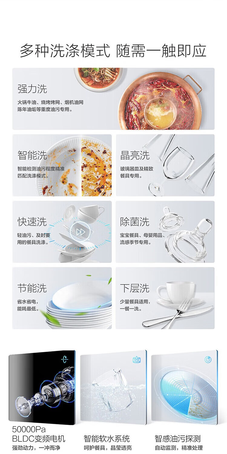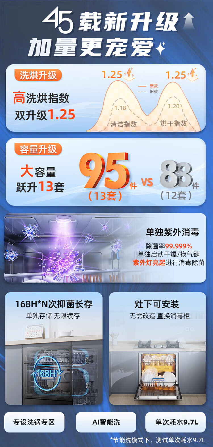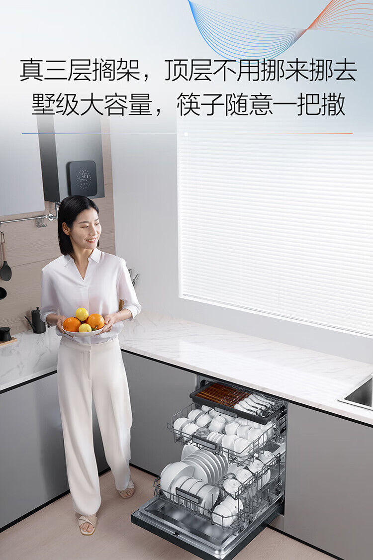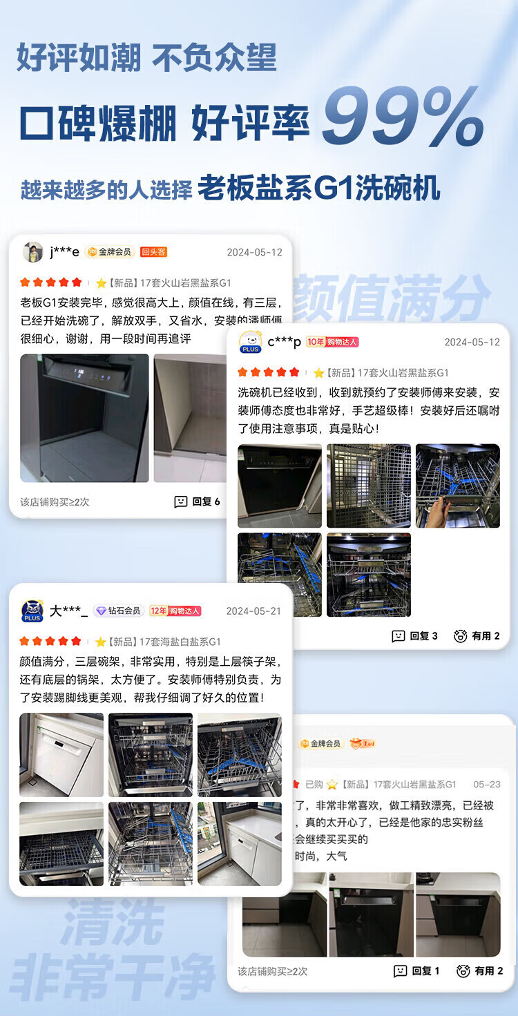Посудомоечная машина Robam, полностью встраиваемая бытовая посудомоечная машина G1 Сверхбольшая вместимость, 0 дезинфекция от бактерий, универсальная машина, ультрафиолетовая стерилизация, 168H сушка, дезинфекция и хранение горячим воздухом B60D 17 комплектов G1U вулканический черный