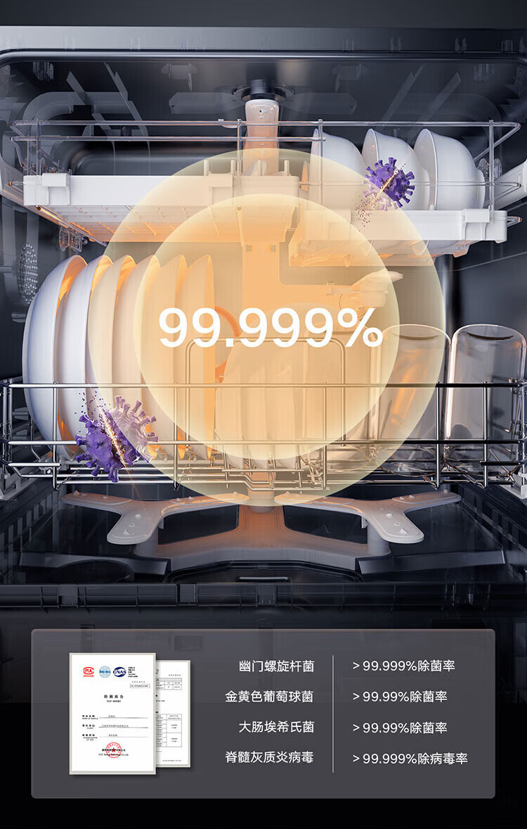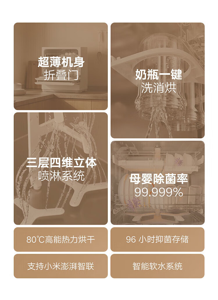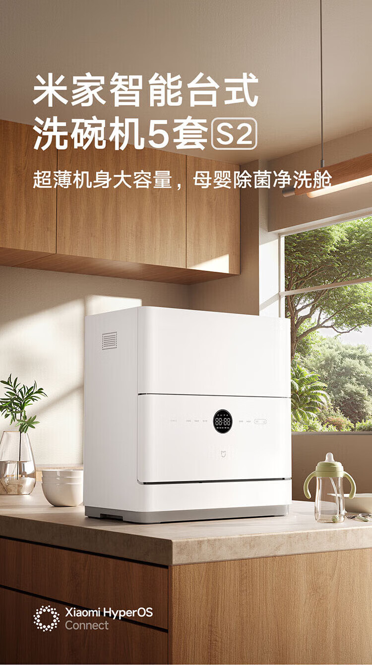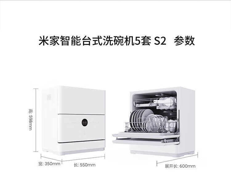 Mijia desktop dishwasher 5 sets S2 household small dishwasher maternal and child certified thin body folding door 80 hot air drying APP control Mijia smart desktop dishwasher S2 5 sets