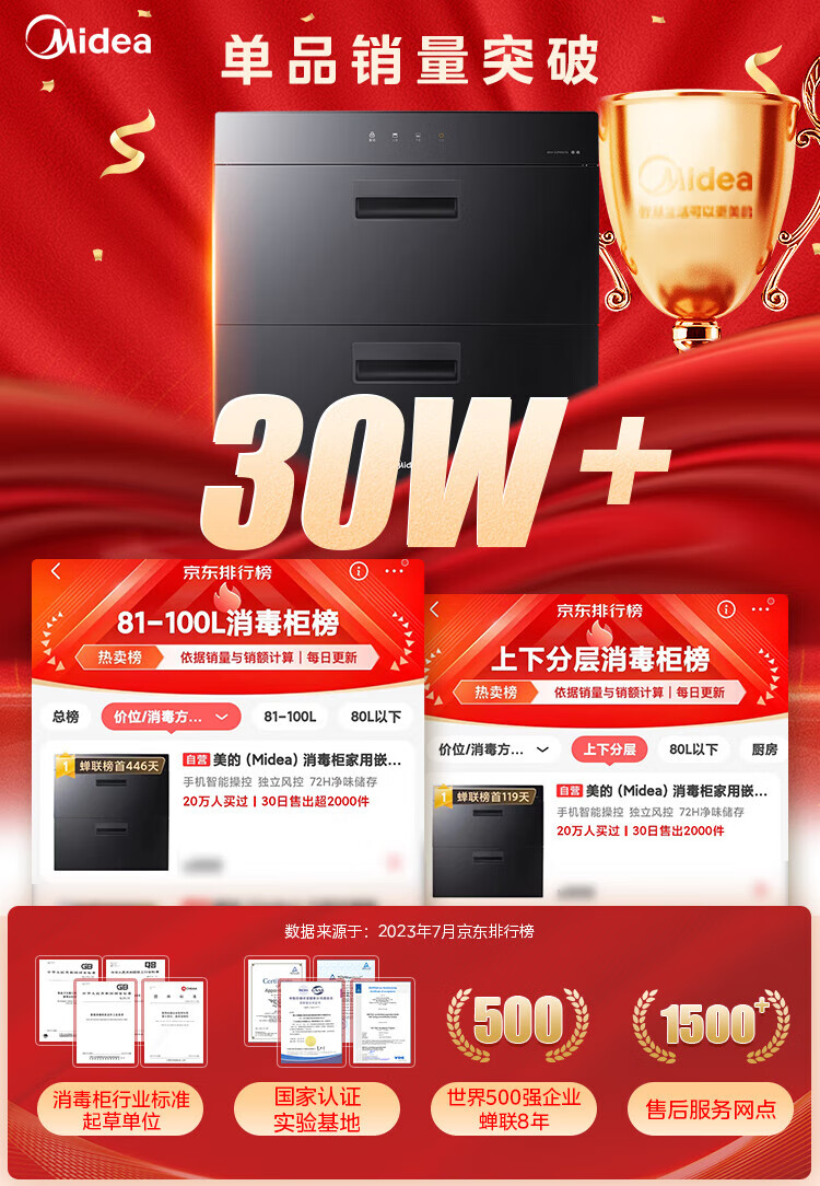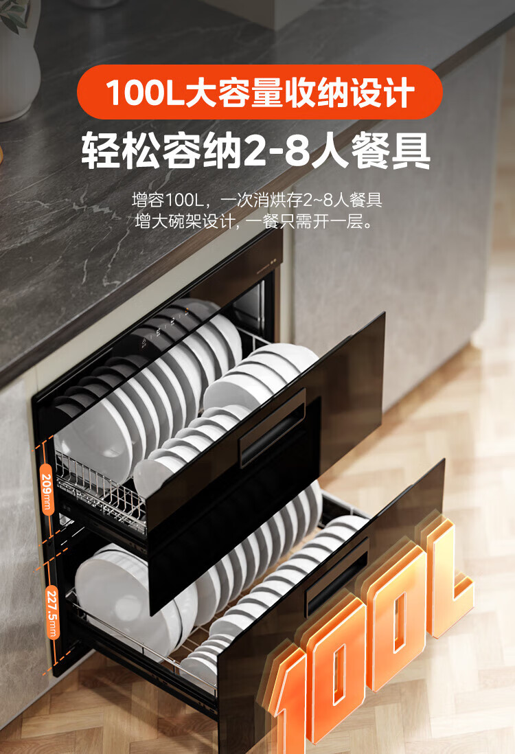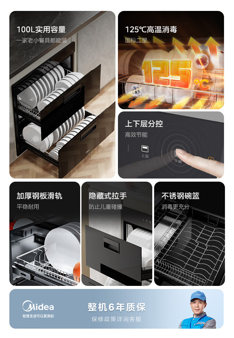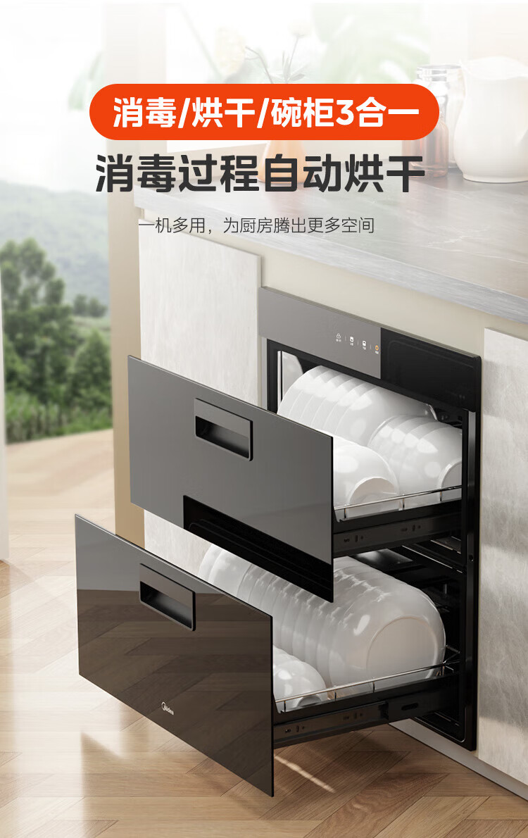 Midea Nuanyang Disinfection Cabinet Embedded Home 100L Double Layer Large Capacity Tableware Cupboard High Temperature National Subsidy MXV-ZLP90Q15S
