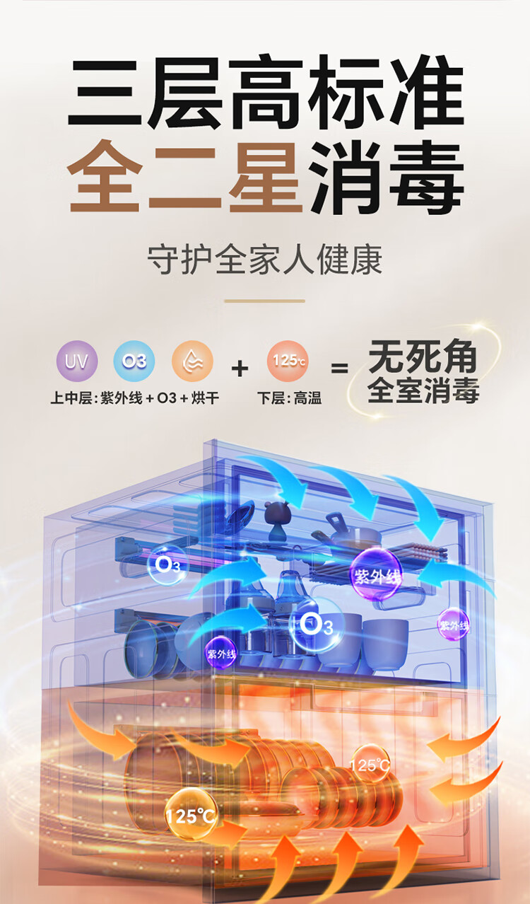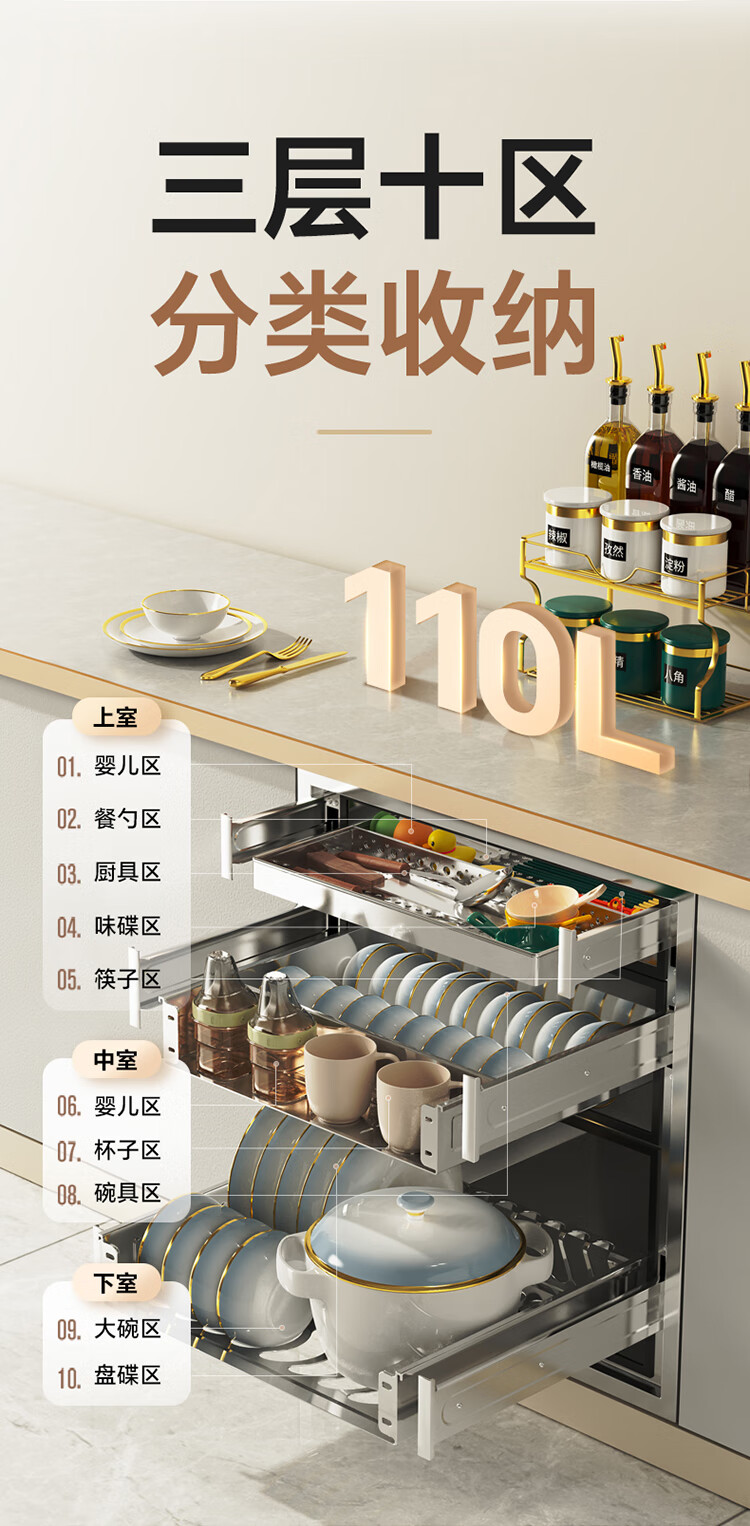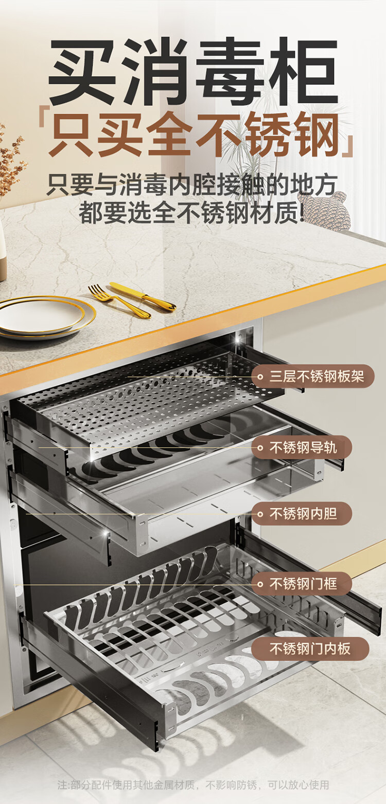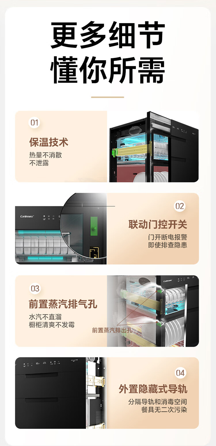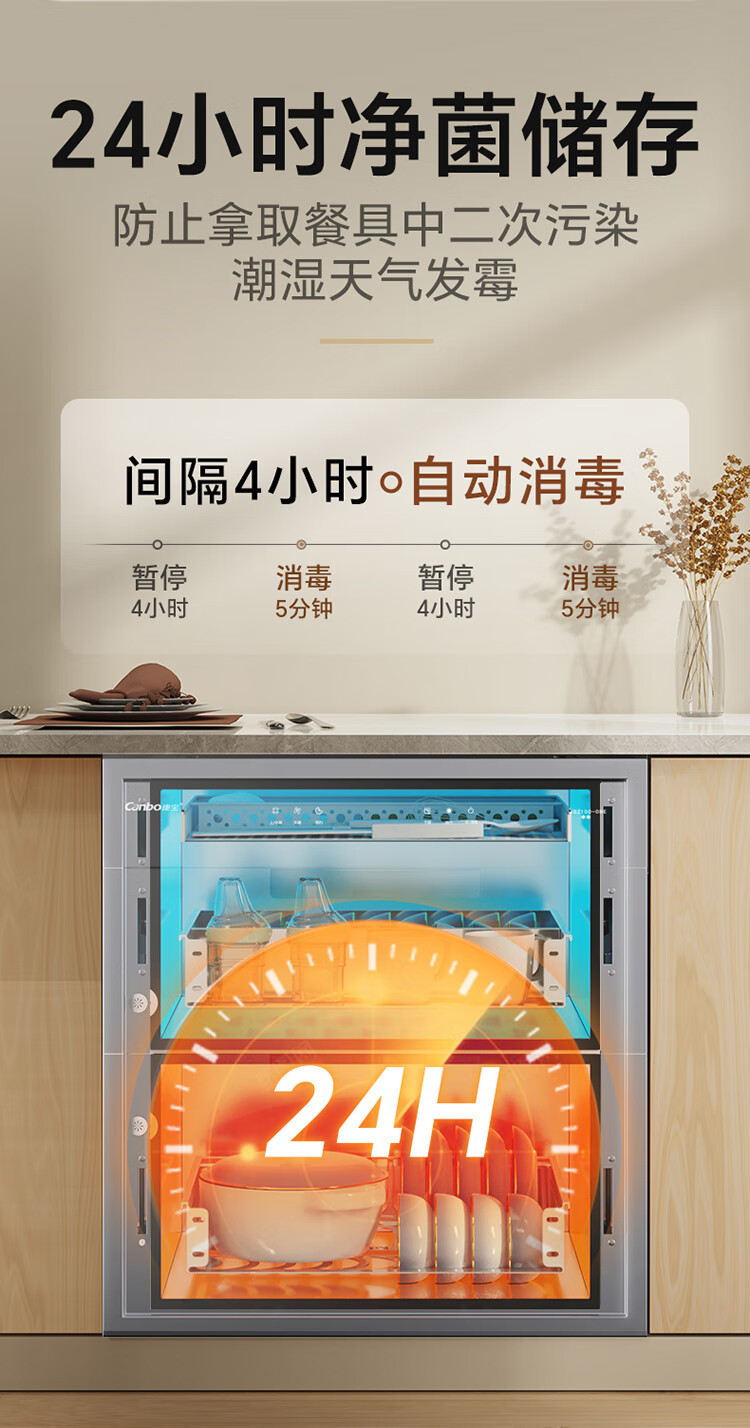 Canbo three-layer stainless steel rock disinfection cabinet embedded household large-capacity high-temperature two-star massive layered disinfection cupboard national subsidy XDZ100-ONE plate rack
