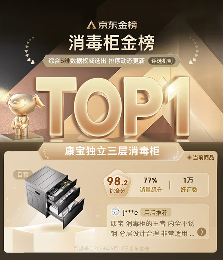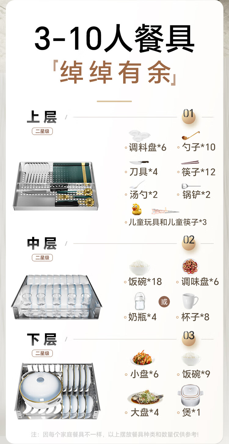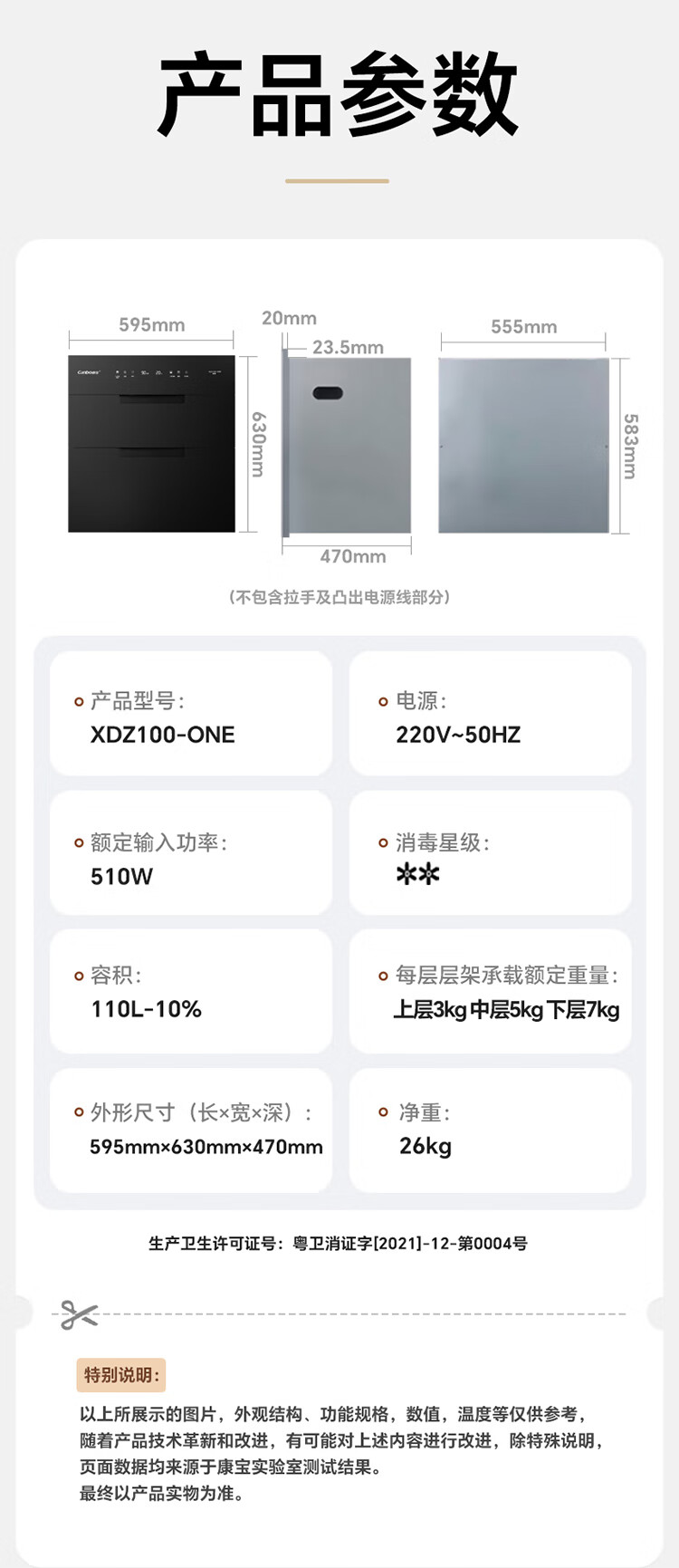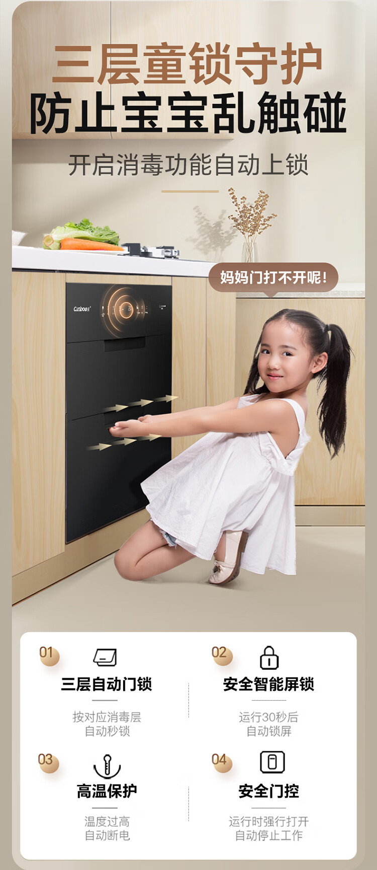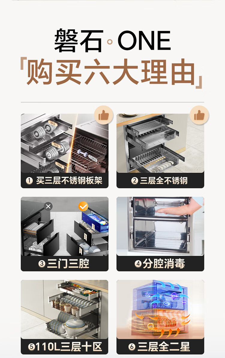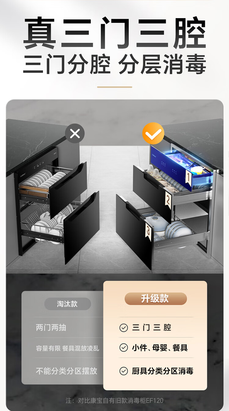 Canbo three-layer stainless steel rock disinfection cabinet embedded household large-capacity high-temperature two-star massive layered disinfection cupboard national subsidy XDZ100-ONE plate rack