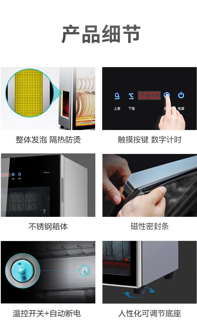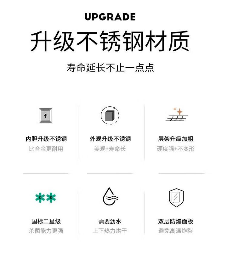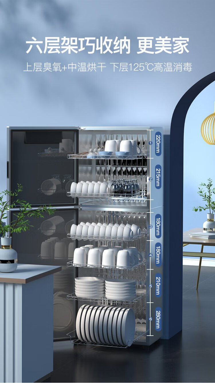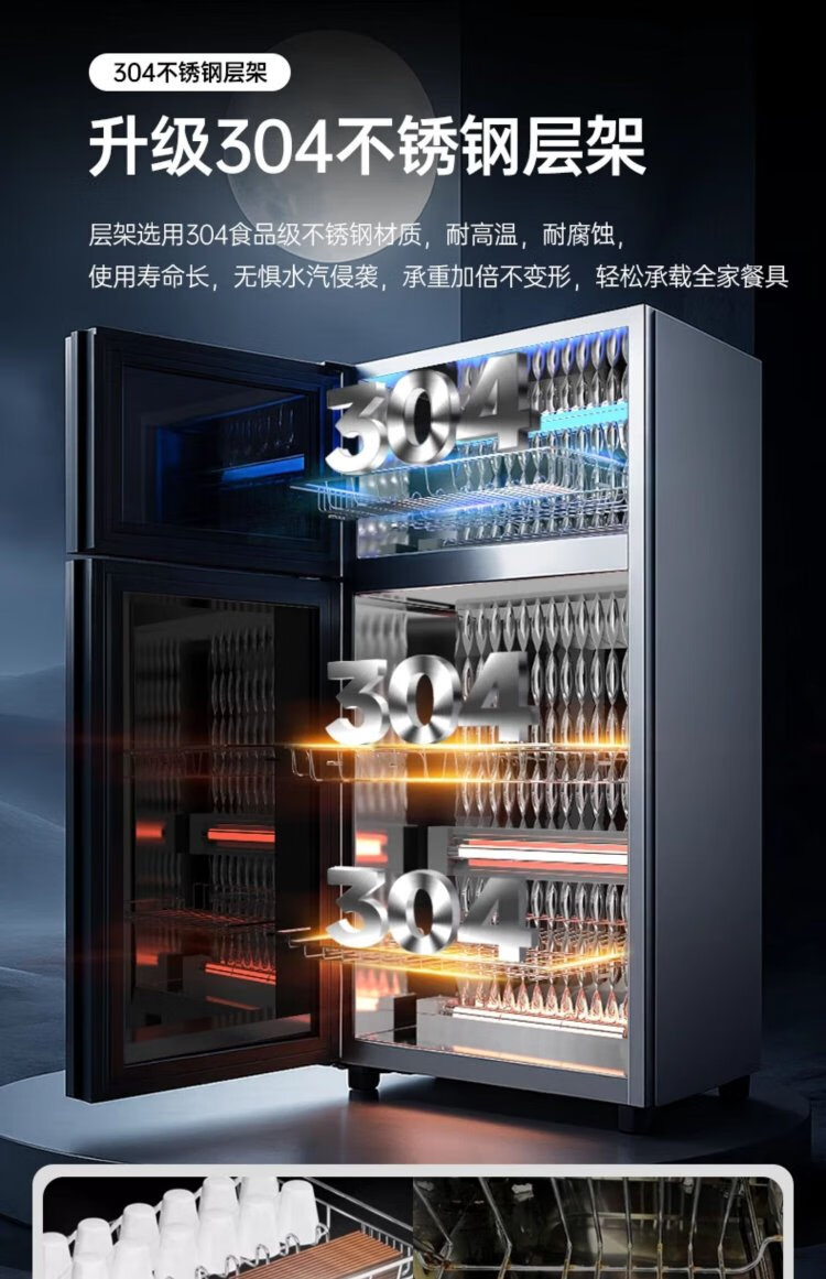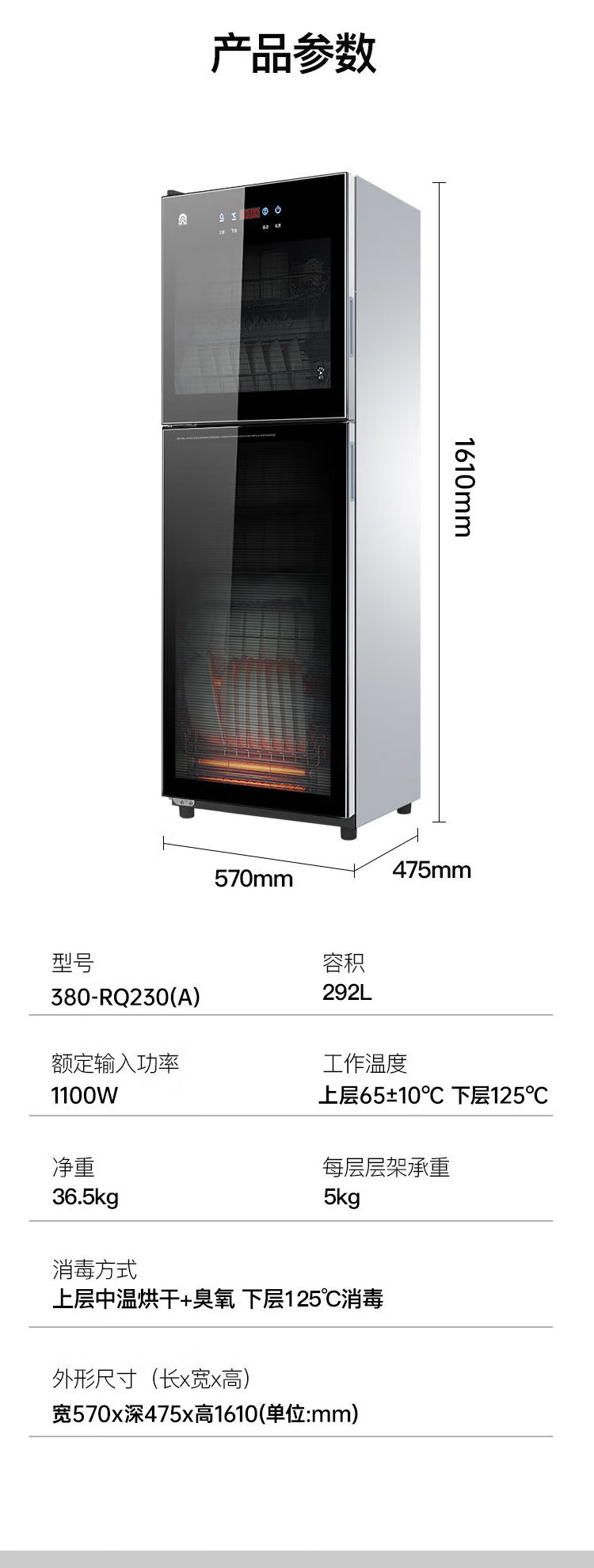 Rongsheng disinfection cabinet vertical household large capacity 304 stainless steel shelf kitchen tableware disinfection cupboard high temperature two-star national subsidy 380-RQ230 (A)