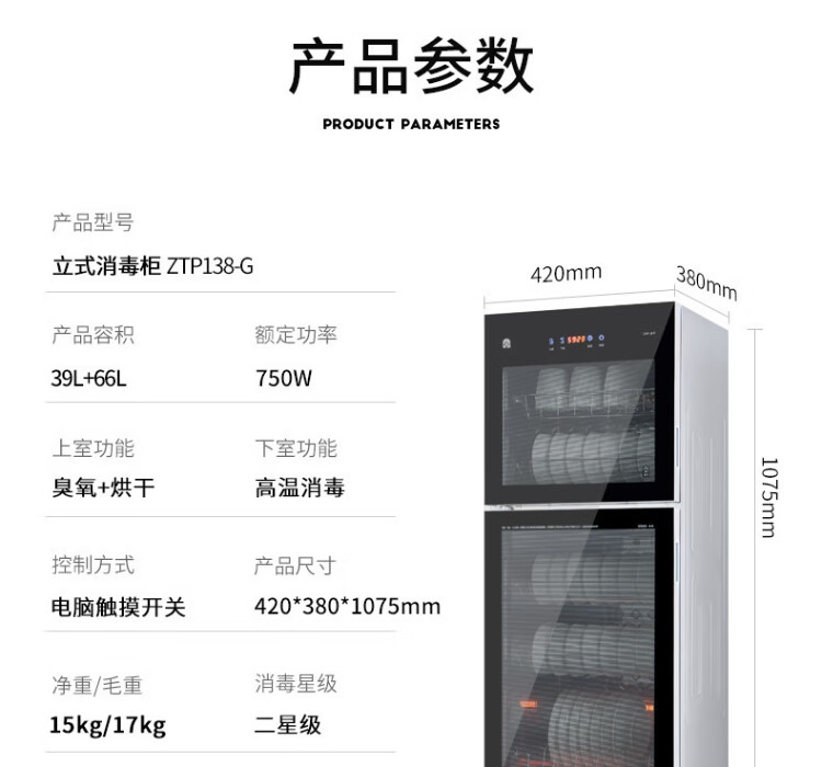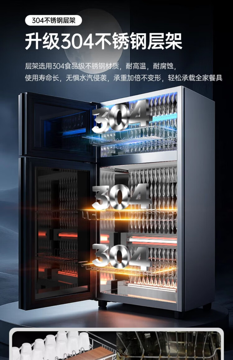 Rongsheng disinfection cabinet household large capacity 304 stainless steel shelf kitchen tableware vertical disinfection cupboard high temperature two-star national subsidy 138-RQ230 (A)