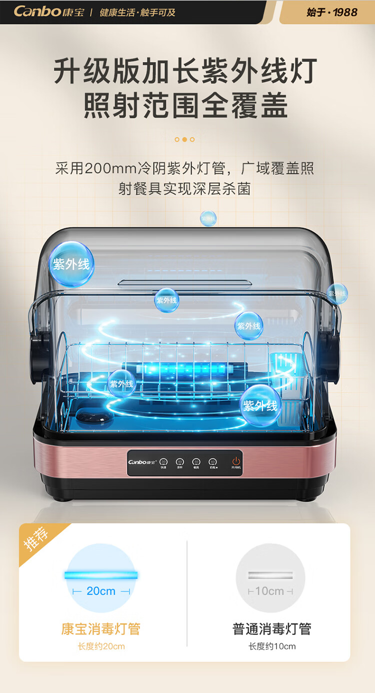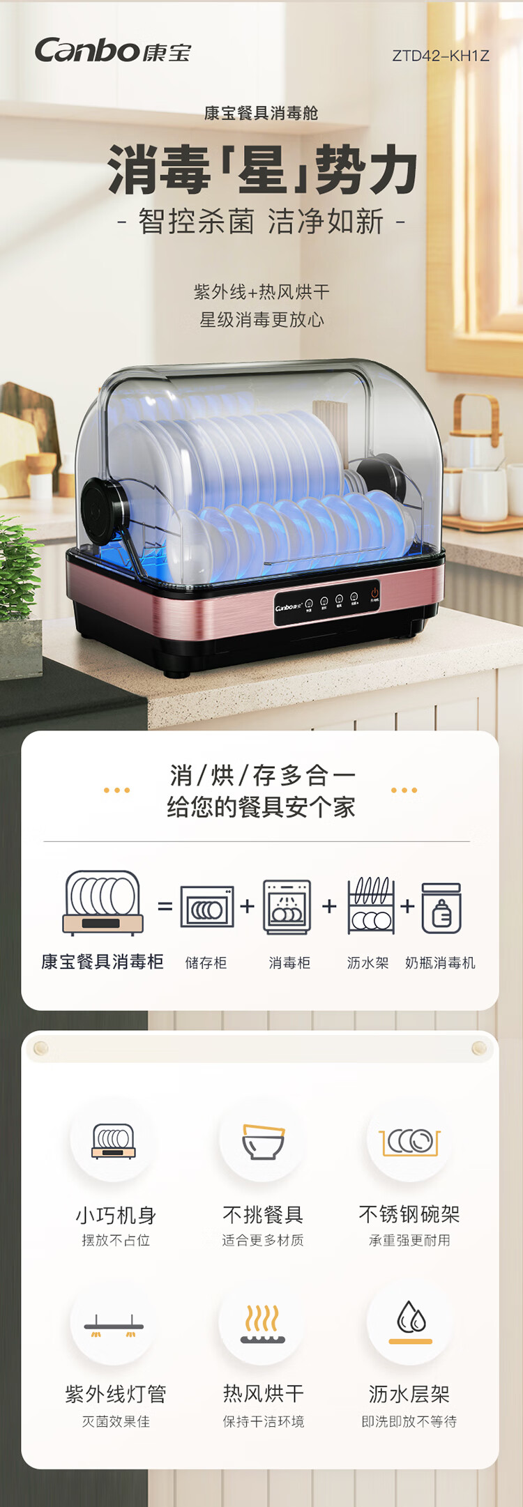Canbo Disinfection Cabinet Household Stand-up Disinfection Cupboard Small Tableware Baby Bottle Drying UV Drain-Free Sterilizer National Subsidy ZTD42-KH1Z
