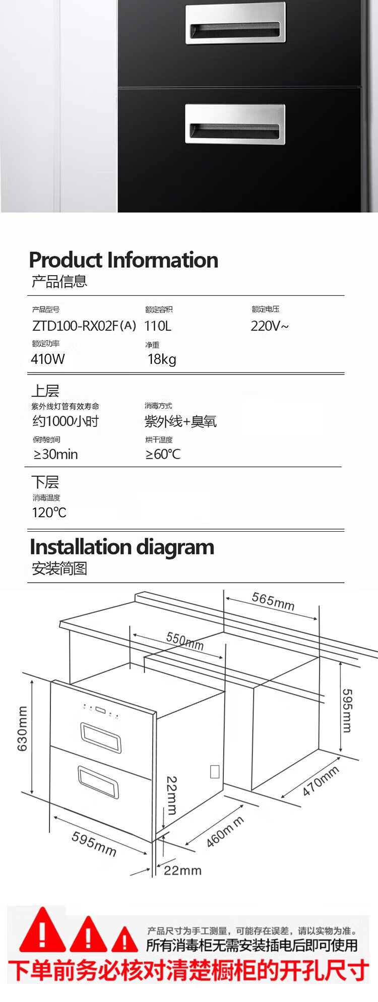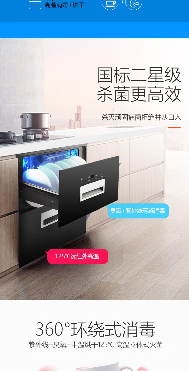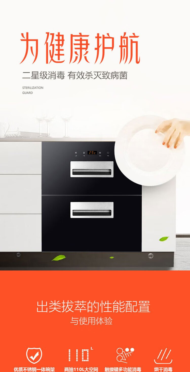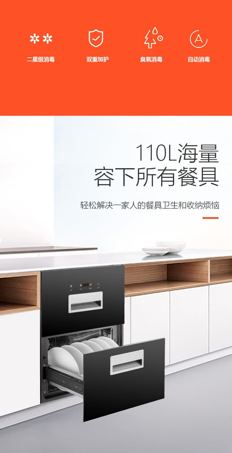 Rongsheng Disinfection Cabinet Embedded Home Kitchen Disinfection Cupboard High Temperature UV Disinfection Cabinet 110L Large Capacity National Subsidy RX02F(A)